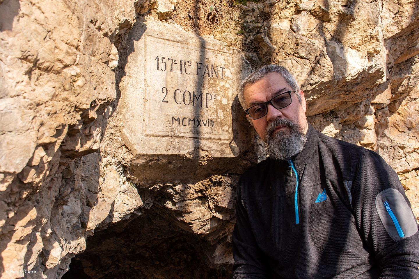 Spinto dal desiderio di conoscere e documentare ciò che resta della memoria bellica sul territorio, intraprende, insieme agli amici Valter, Luca e Sergio, un’attenta attività di ricognizione che porta alla scoperta e alla catalogazione di numerosi graffiti ed epigrafi incisi dai soldati lungo le linee del fronte nelle province di Trento e Vicenza.