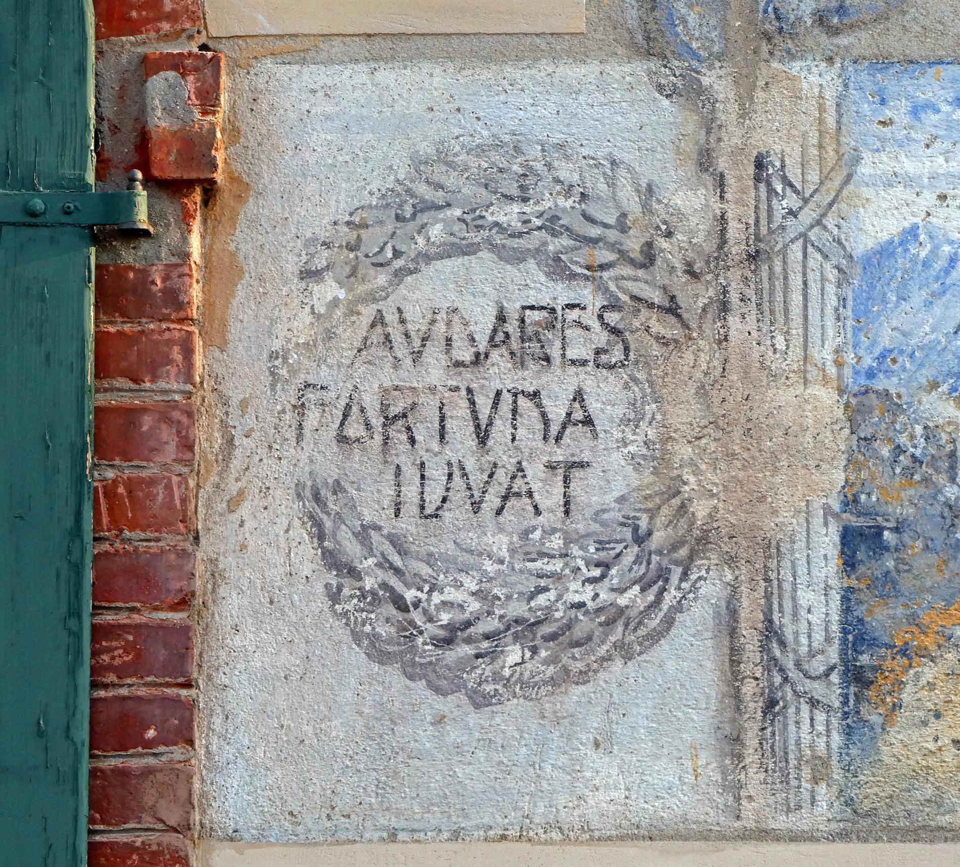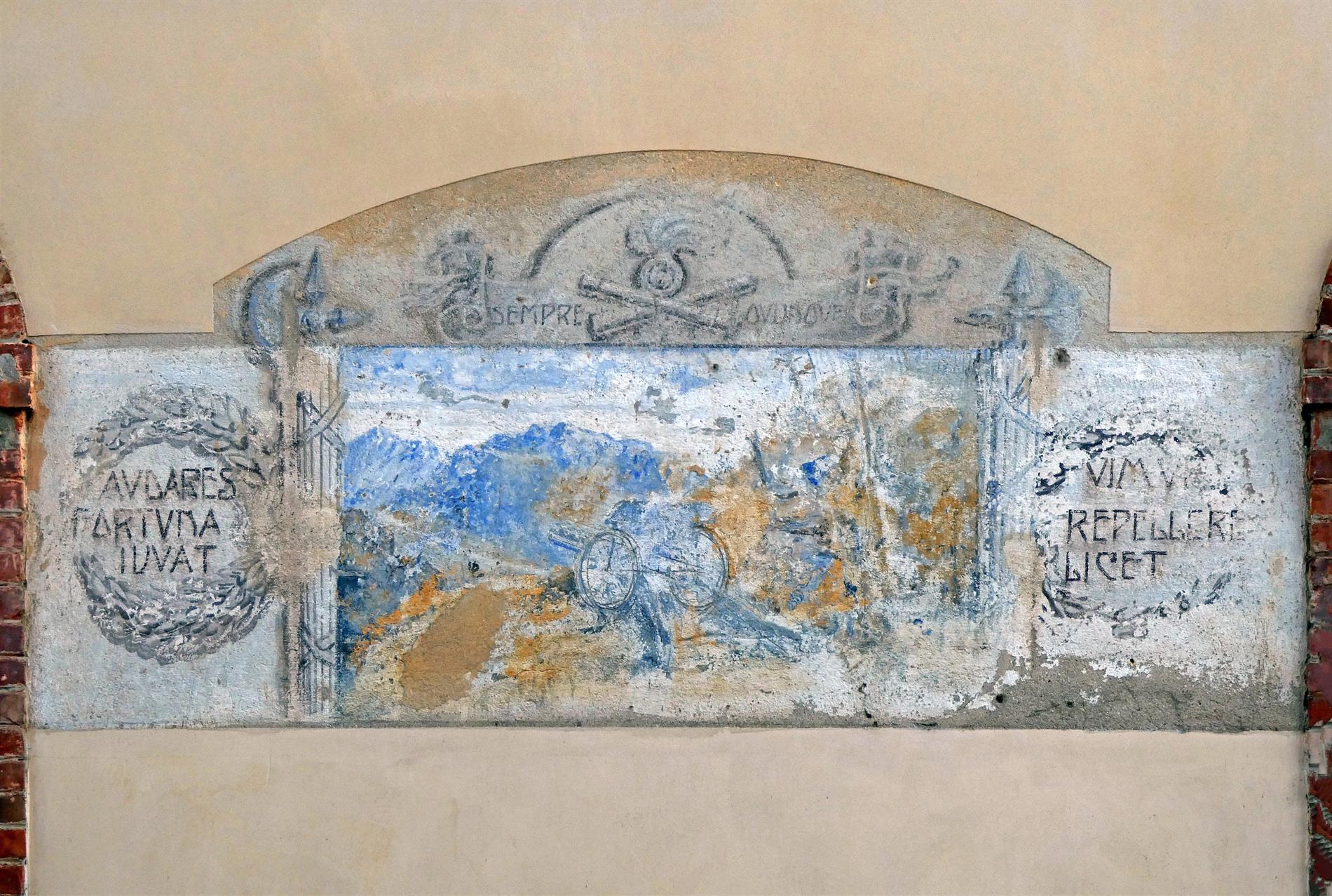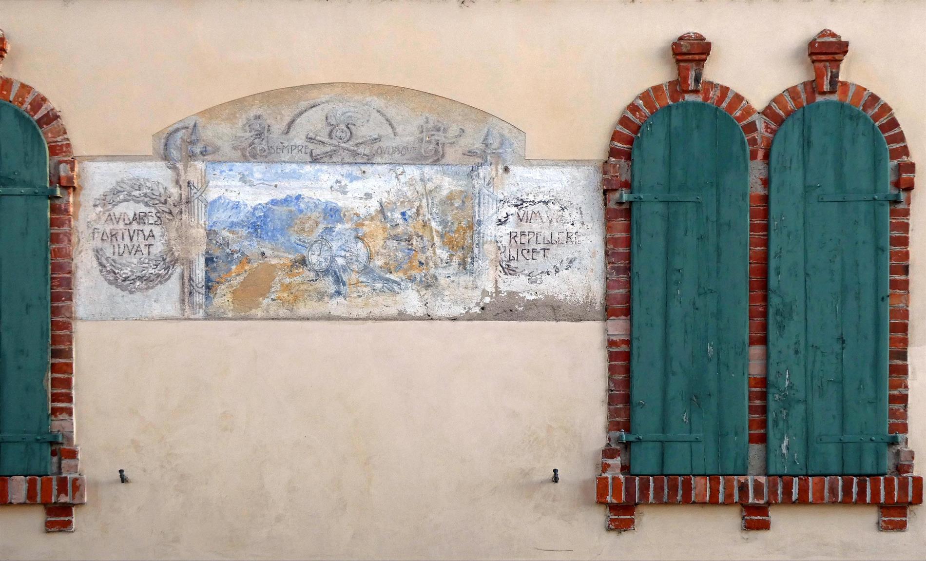 Facciata nord: 7° Reggimento Artiglieria da Campagna Sempre e Ovunque Audaces Fortuna Iuvat