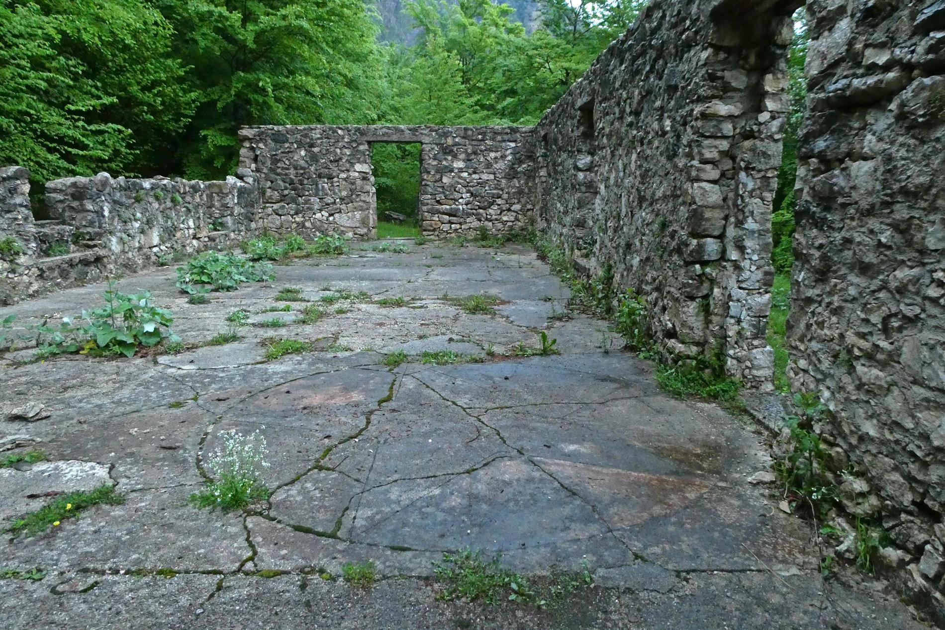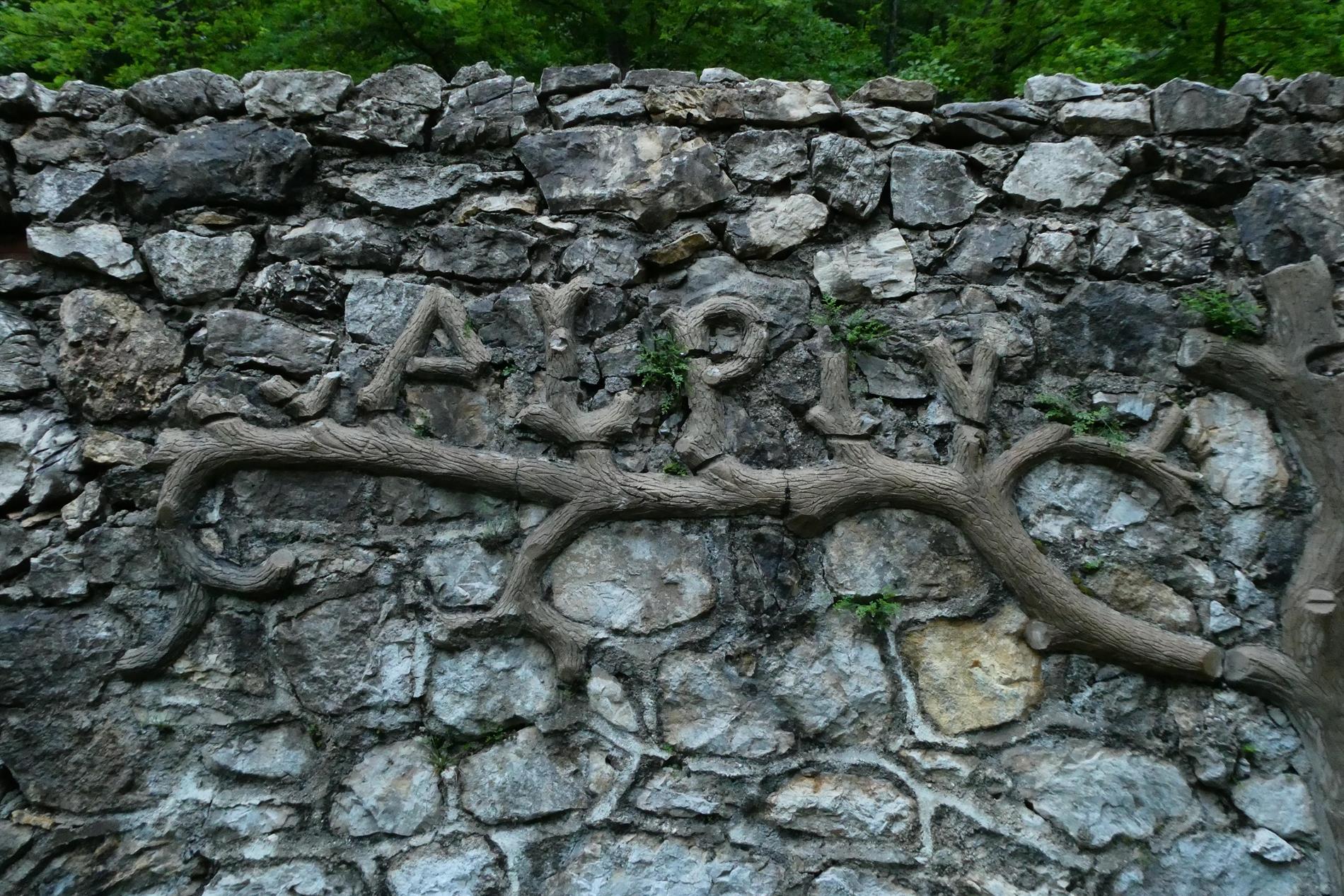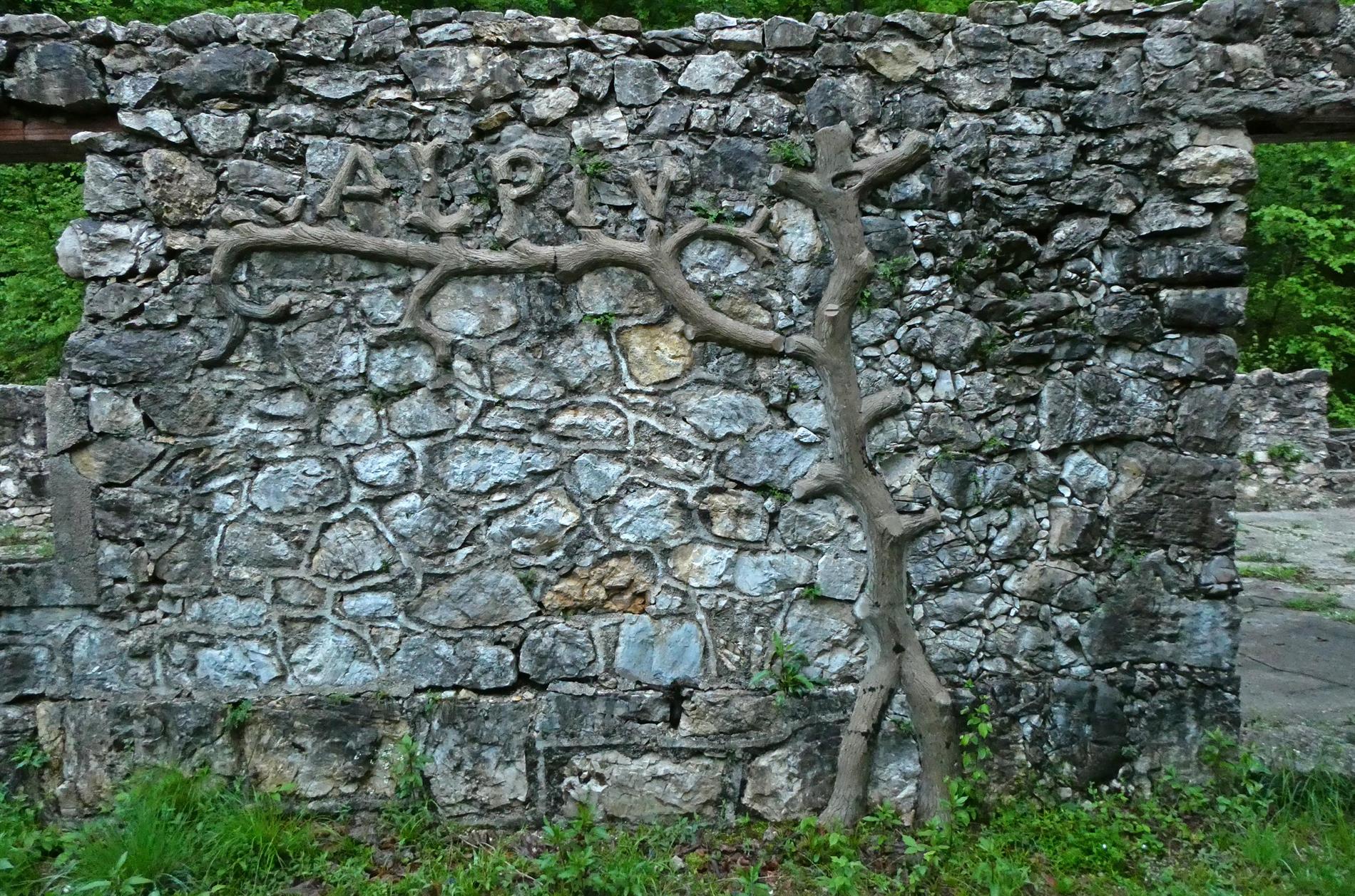 Il pregevole altorilievo realizzato dal Battaglione Alpini Aosta, impreziosito da motivi vegetali, adorna l'ingresso di un vasto edificio adibito a caserma poco sopra la rotabile che collega Ponte Verde al Passo Xomo.