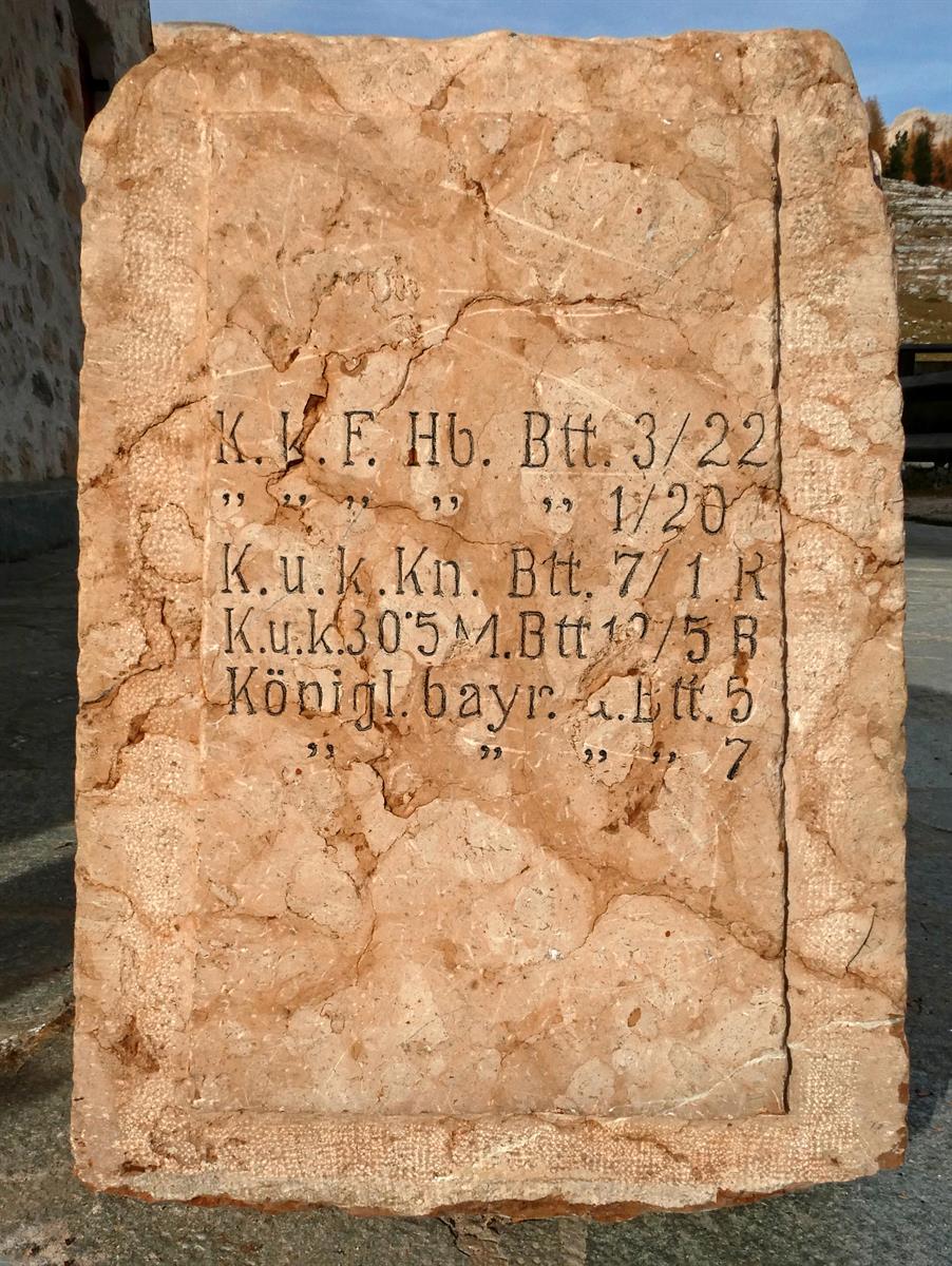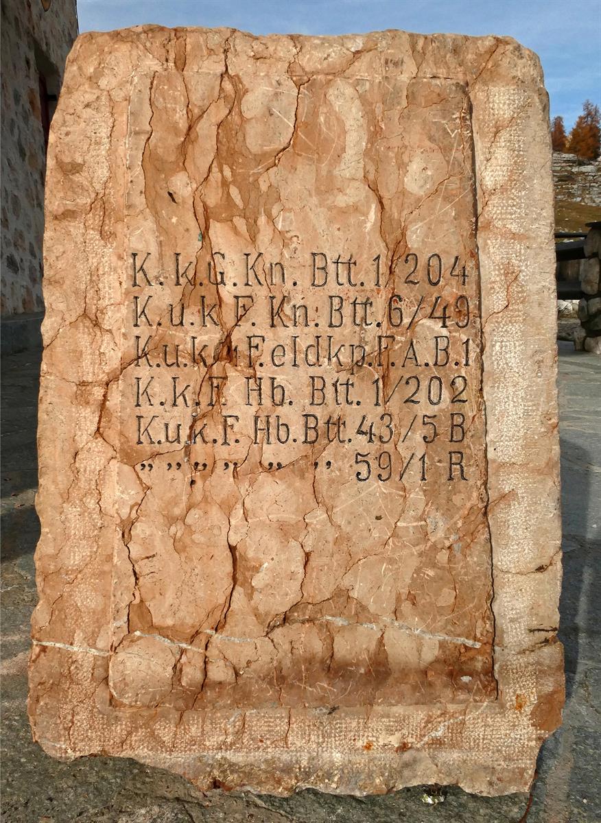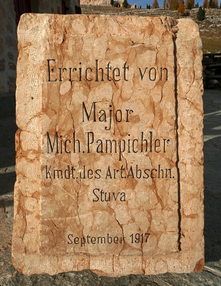 Cippo dell'Artillerie Abschnitt "Stuva" al comando del Major Michael Pampichler - Alpe di Fanes Piccola