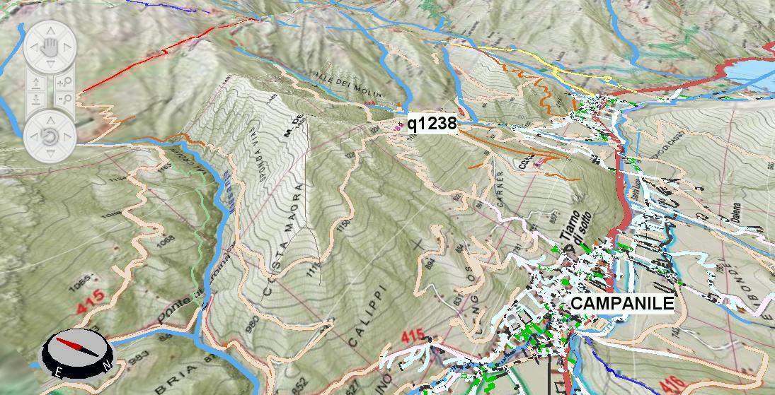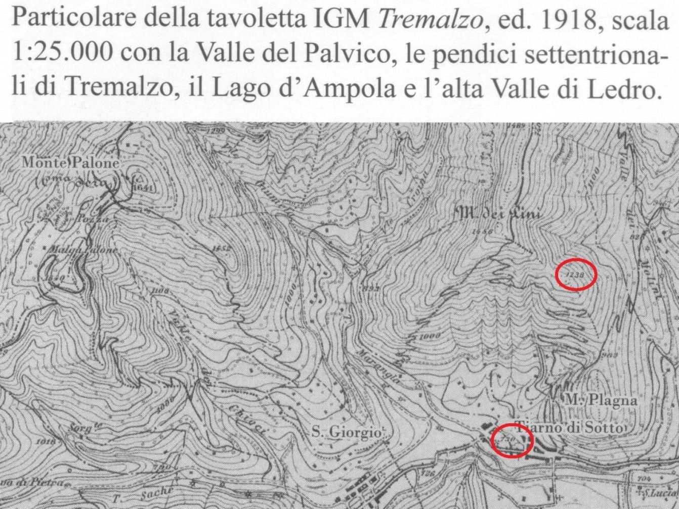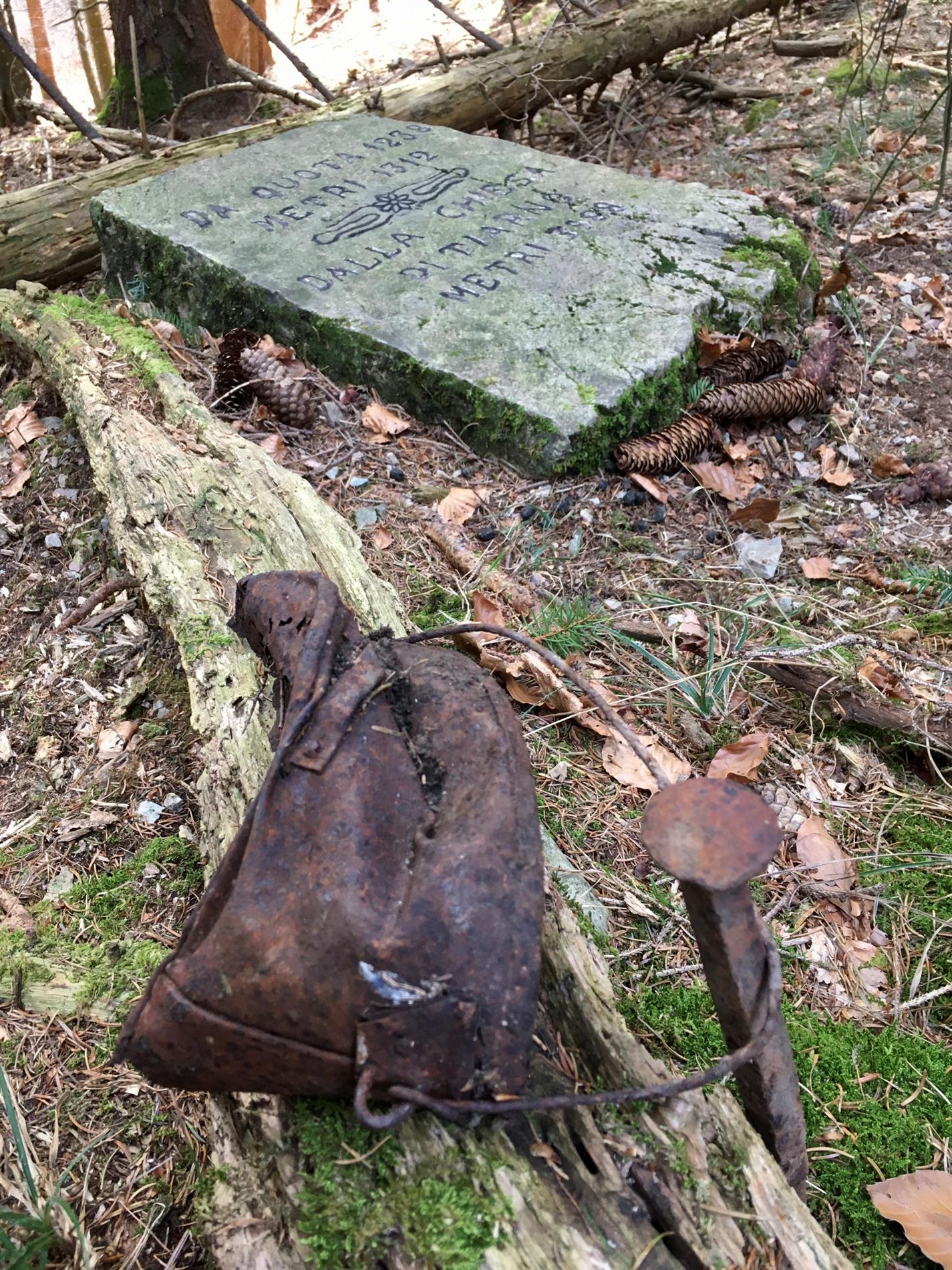 Queste ipotesi sono state poi testate con l’utilizzo di programmi cartografici 3D-GIS e rilievi GPS, per verificarne la corrispondenza con dati riportati sul cippo. Le prime due ipotesi sono state scartate, atteso che i punti ottenuti (tramite l’intersezione di raggi pari alle distanze indicate con cerchi sul piano orizzontale o con sfere nello spazio 3D) presentano tra loro una differenza di parecchie centinaia di metri, evidentemente eccessiva per giustificare il dato metrico inciso. L’ipotesi che ha fornito dati compatibili con quelli riportati dal cippo è quella delle distanze di percorrenza sui sentieri e mulattiere di collegamento: la zona dove si è intuitivamente ipotizzato fosse in origine collocata la pietra - la testata del vallone - si trova infatti a 1301 metri di percorrenza da Quota 1238 ed a 3984 metri partendo dal campanile di Tiarno di Sotto, seguendo i tragitti militari ancor oggi riconoscibili, con uno scarto nell'ordine di 10 metri circa.