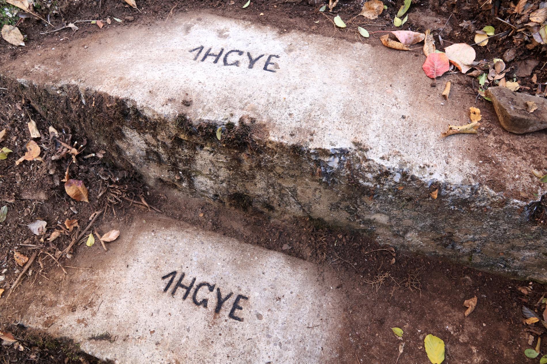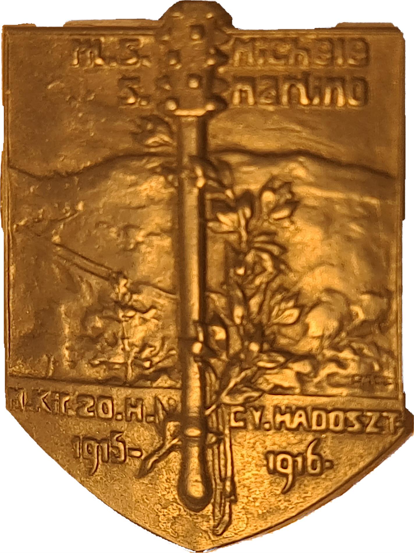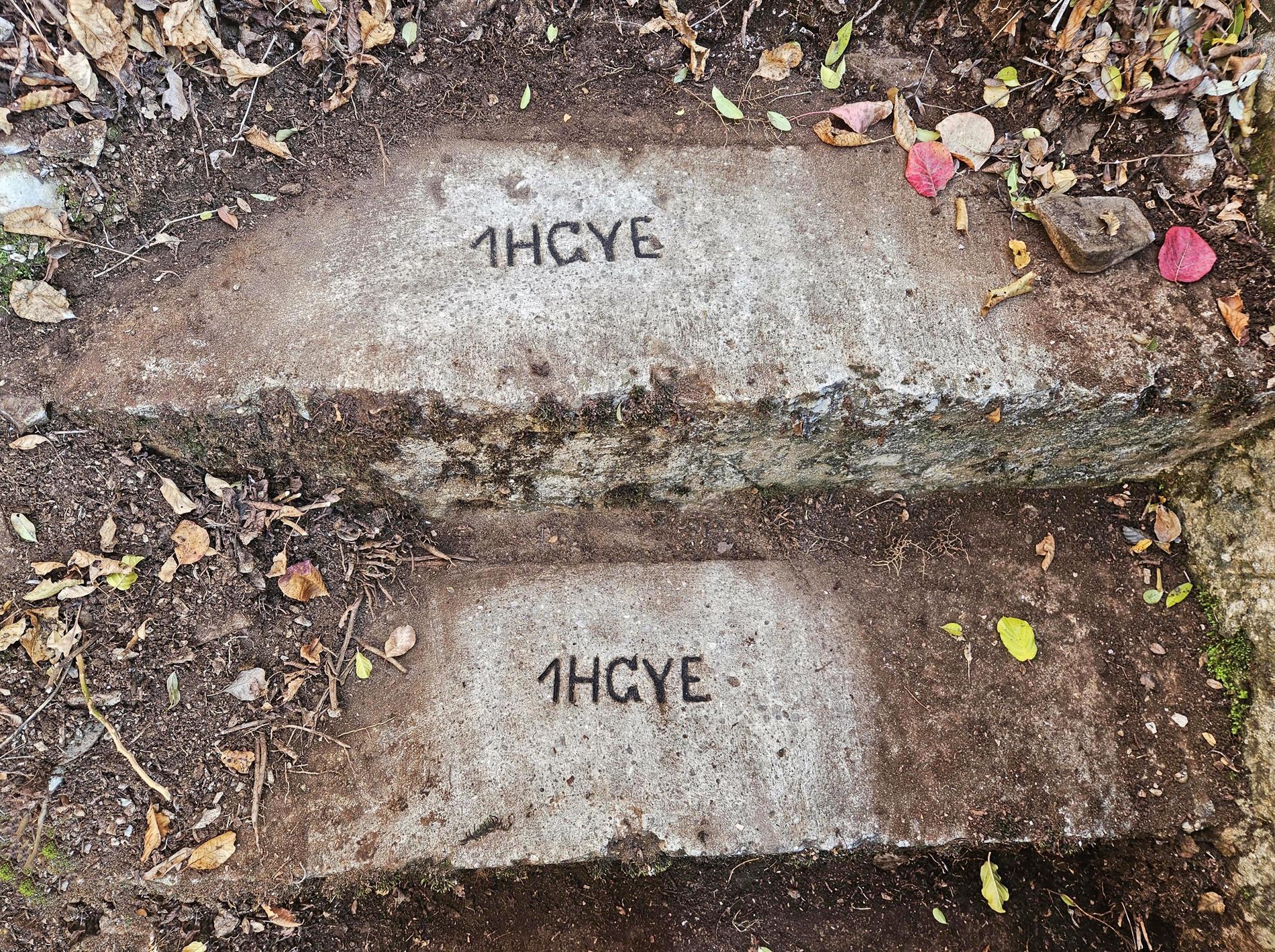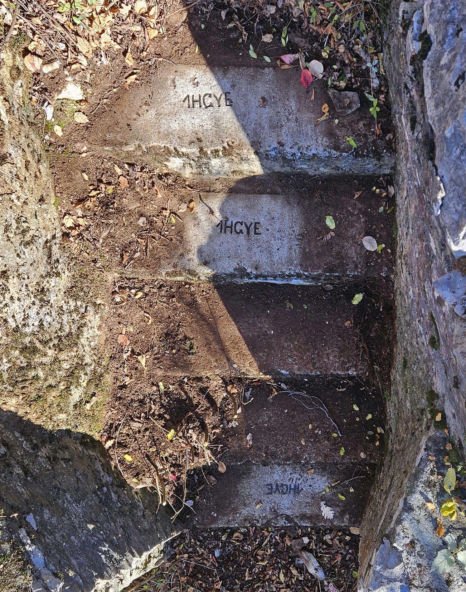 Le iscrizioni, identiche fra loro e stampigliate sul cemento fresco, riportano l'acronimo del Regio Ungherese Reggimento di Fanteria dell'Esercito Nazionale Ungherese n° 1 di Budapest (M.K. Budapesti 1. Honvéd Gyalogezred / K.U. Budapester Landwehr Infanterie Regiment Nr. 1). In tempo di pace, questo reggimento della Honvédség aveva stanza (sede di guarnigione del comando e dei battaglioni, nel 1914) presso Budapest, città a cui deve la sua denominazione. Durante la Prima Guerra Mondiale fu impiegato sanguinosamente su numerosi fronti tenuti dalle forze austro-ungariche, dove dimostrò tenacia e valore.