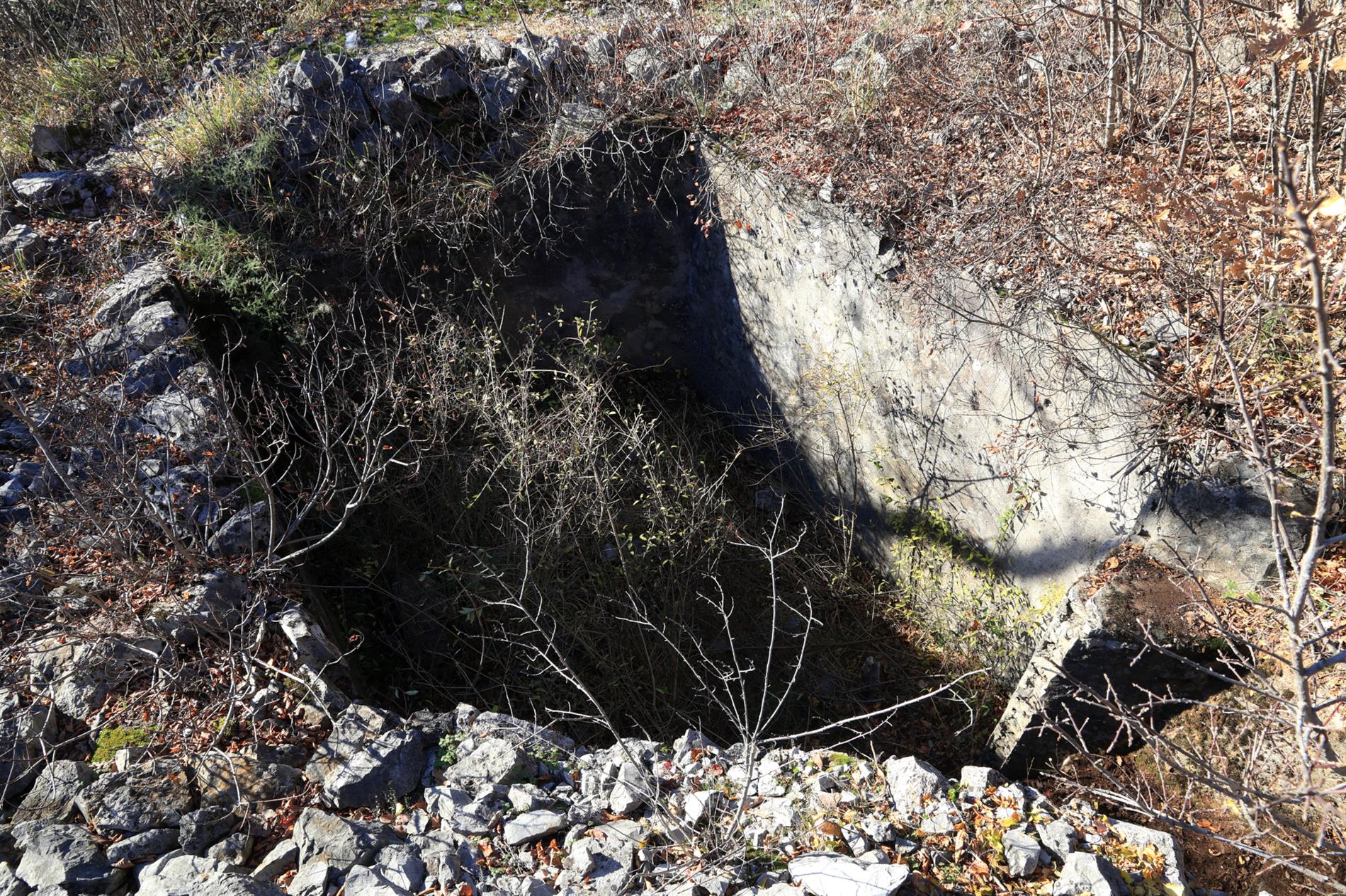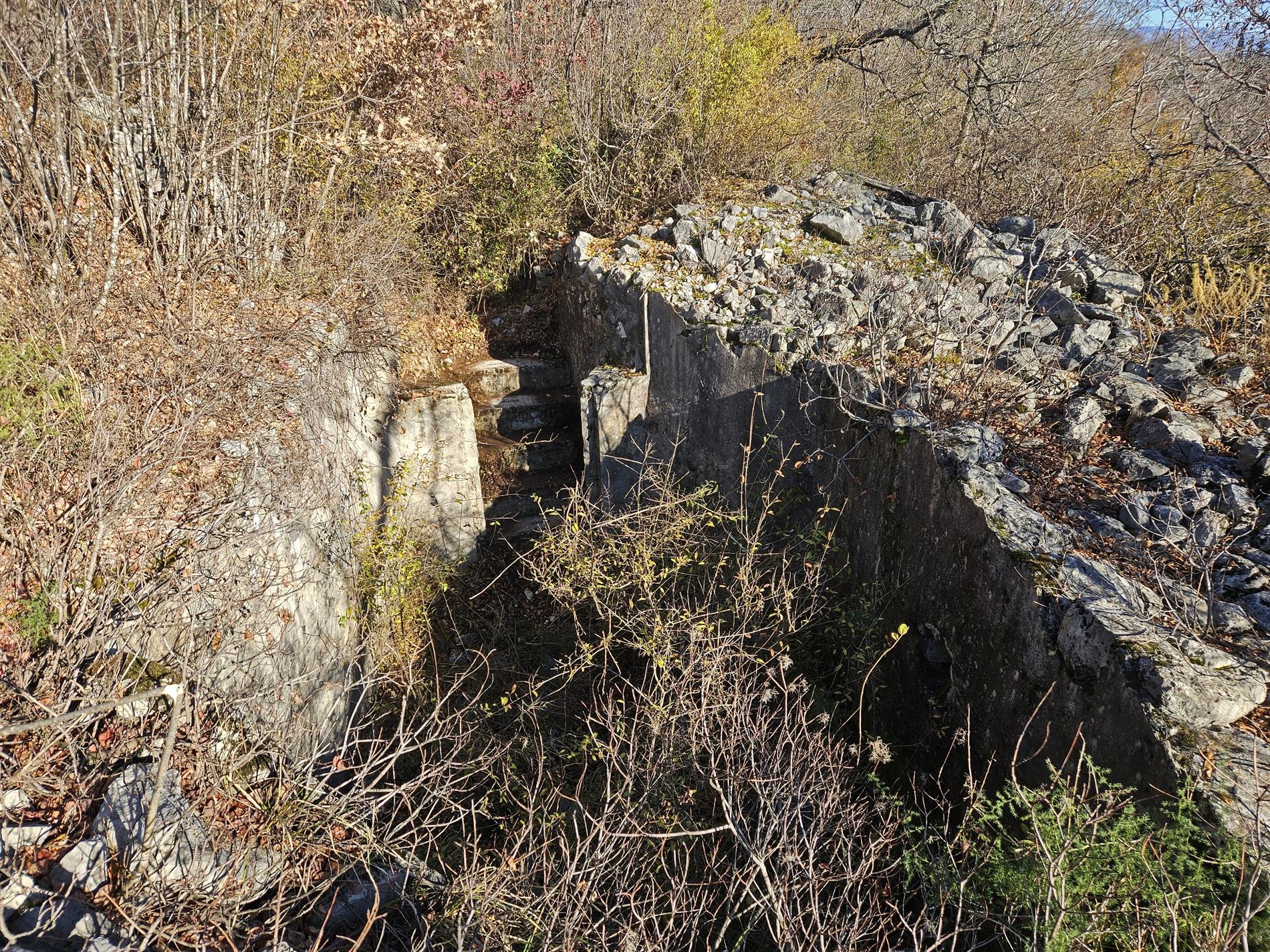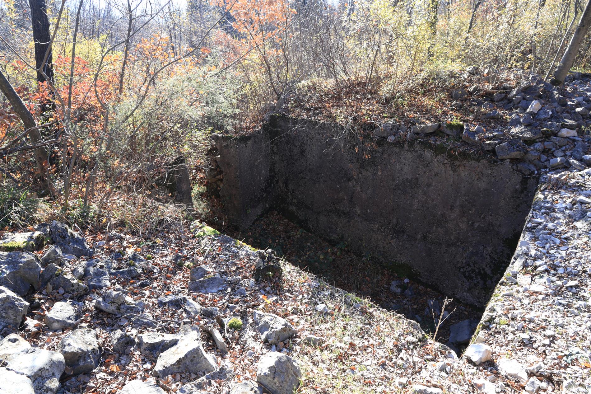 Le tre incisioni che sostanziano il complesso epigrafico spiccano su altrettanti elementi in cemento situati entro i resti di una casamatta austro-ungarica organizzata su due vani blindati e fra loro collegati da uno stretto corridoio scalinato, verosimilmente adibita a comando tattico di compagnia (così lascia intendere la Tavola 13 del Volume III, Tomo 3° ter della Relazione Ufficiale Italiana), dotata di feritoia di osservazione verso il Costone dell'Albero Isolato e la direzione di San Martino del Carso (sud-ovest).