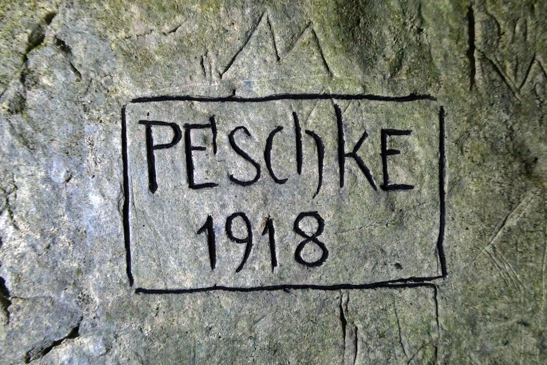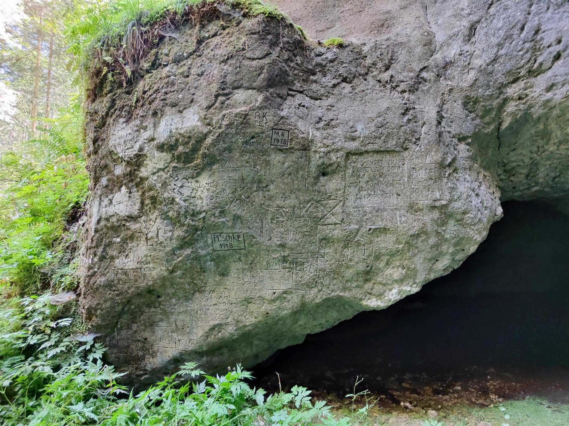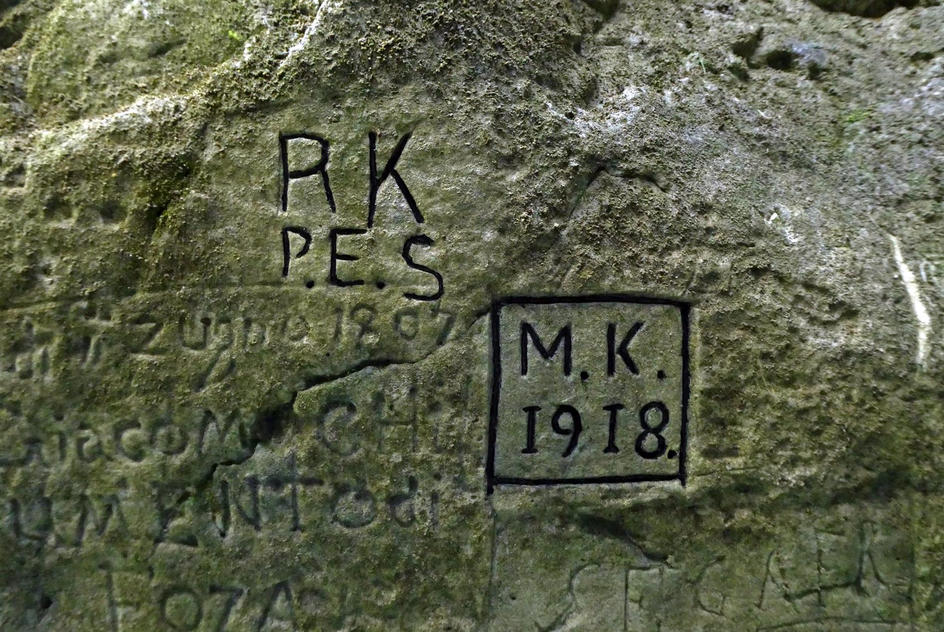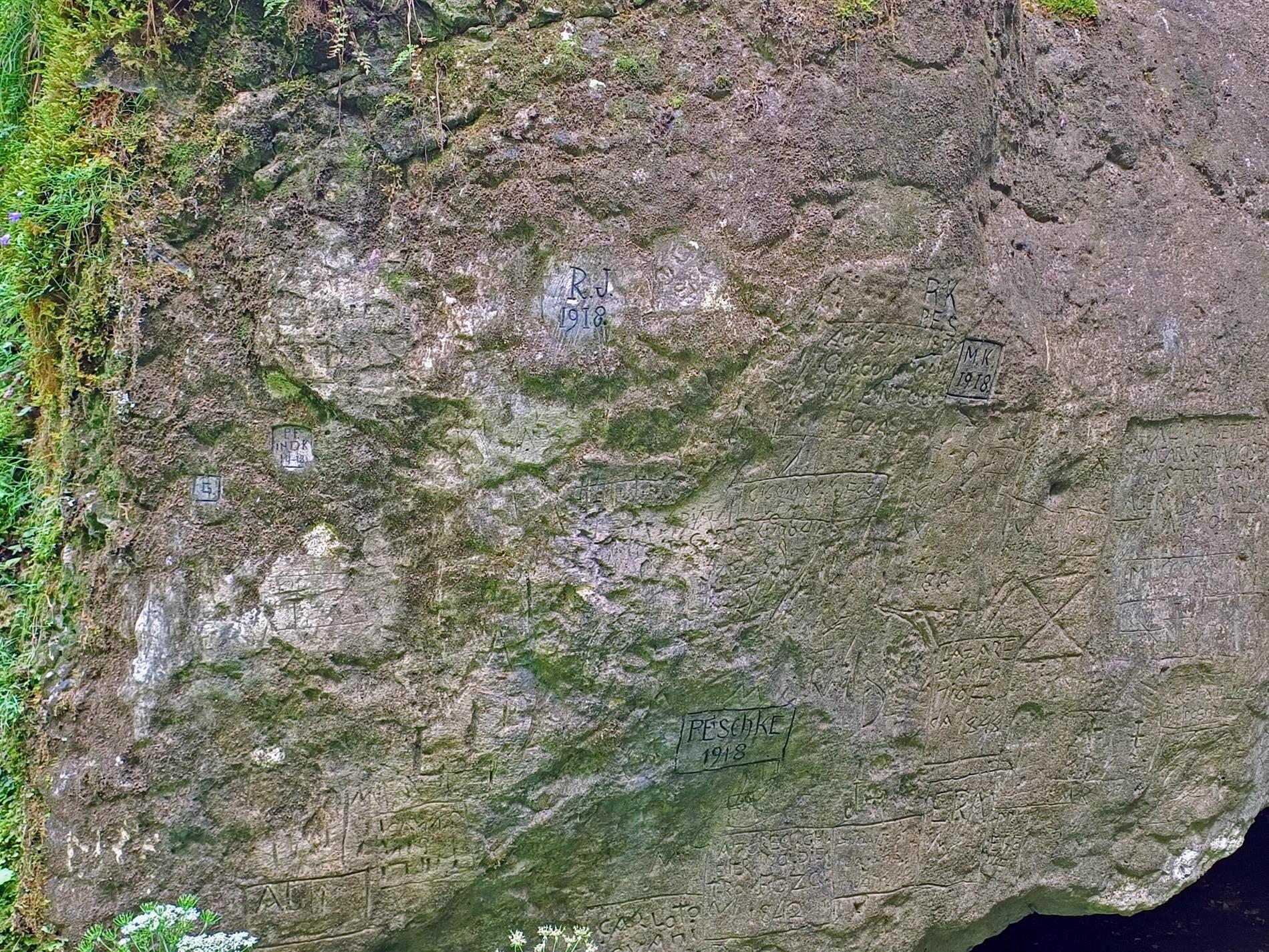 Tra le molte iscrizioni presenti, se ne possono far risalire almeno sei al periodo del primo conflitto mondiale. (Museo delle scienze. La rete dei musei della scienza in Trentino)