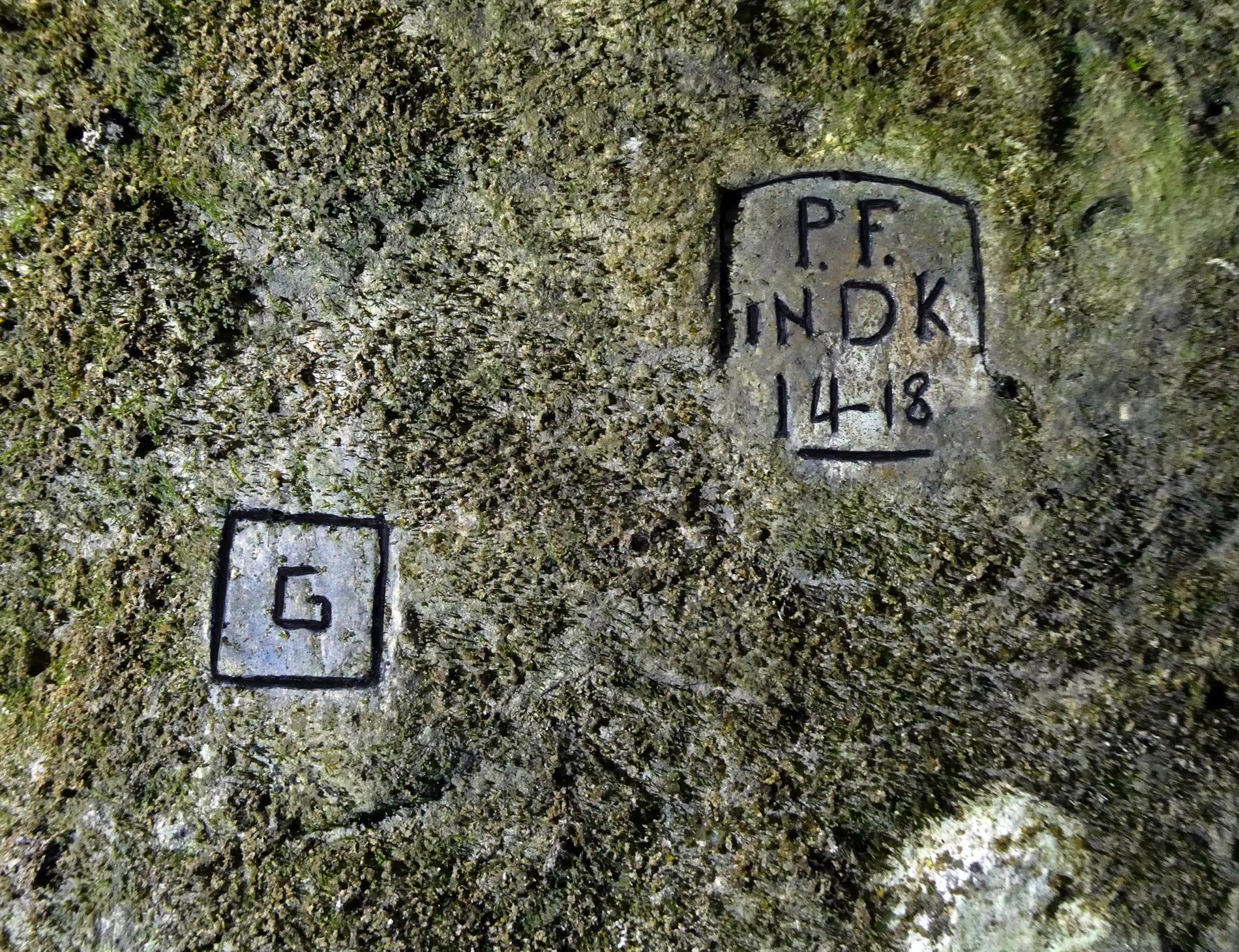 Tra le iscrizioni, legate a particolari vicende storiche local, si trovano alcune rappresentazioni figurative medioevali, diversi simboli "cruciformi" e anche segni lineari che potrebbero addirittura risalire alla preistoria.