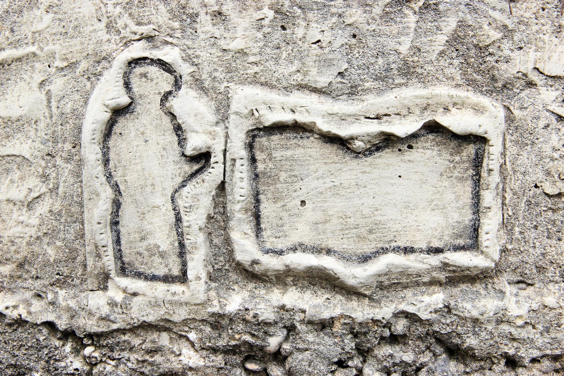 Complesso di raffigurazioni in rilievo che rappresenta, nei suoi rispettivi elementi, un atto di omaggio e/o di preghiera all'altare, la natività, i profili di tre non meglio definiti personaggi maschili.