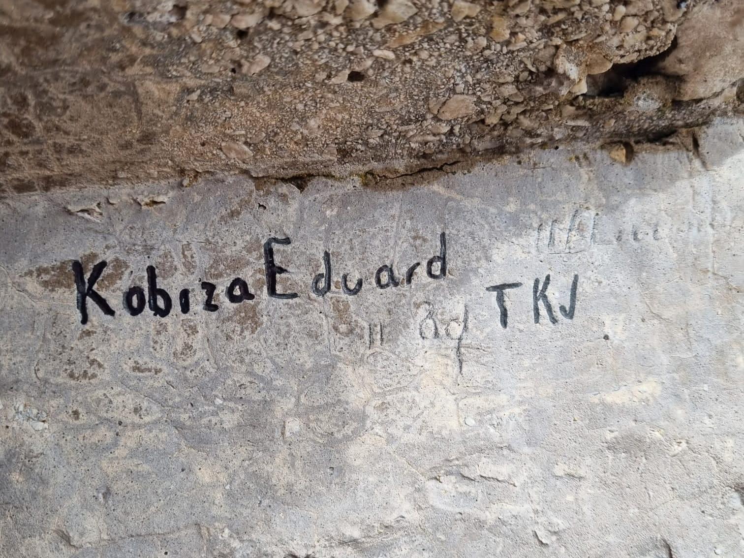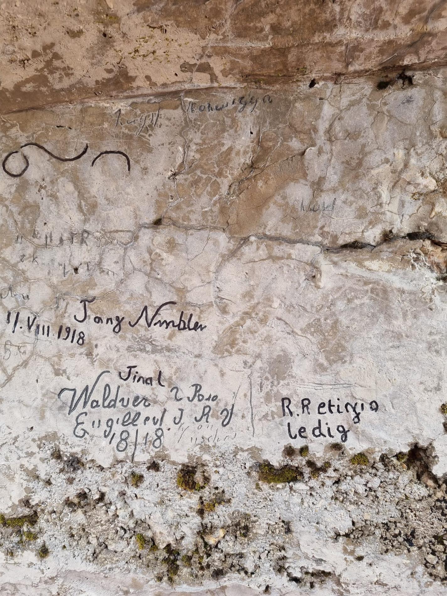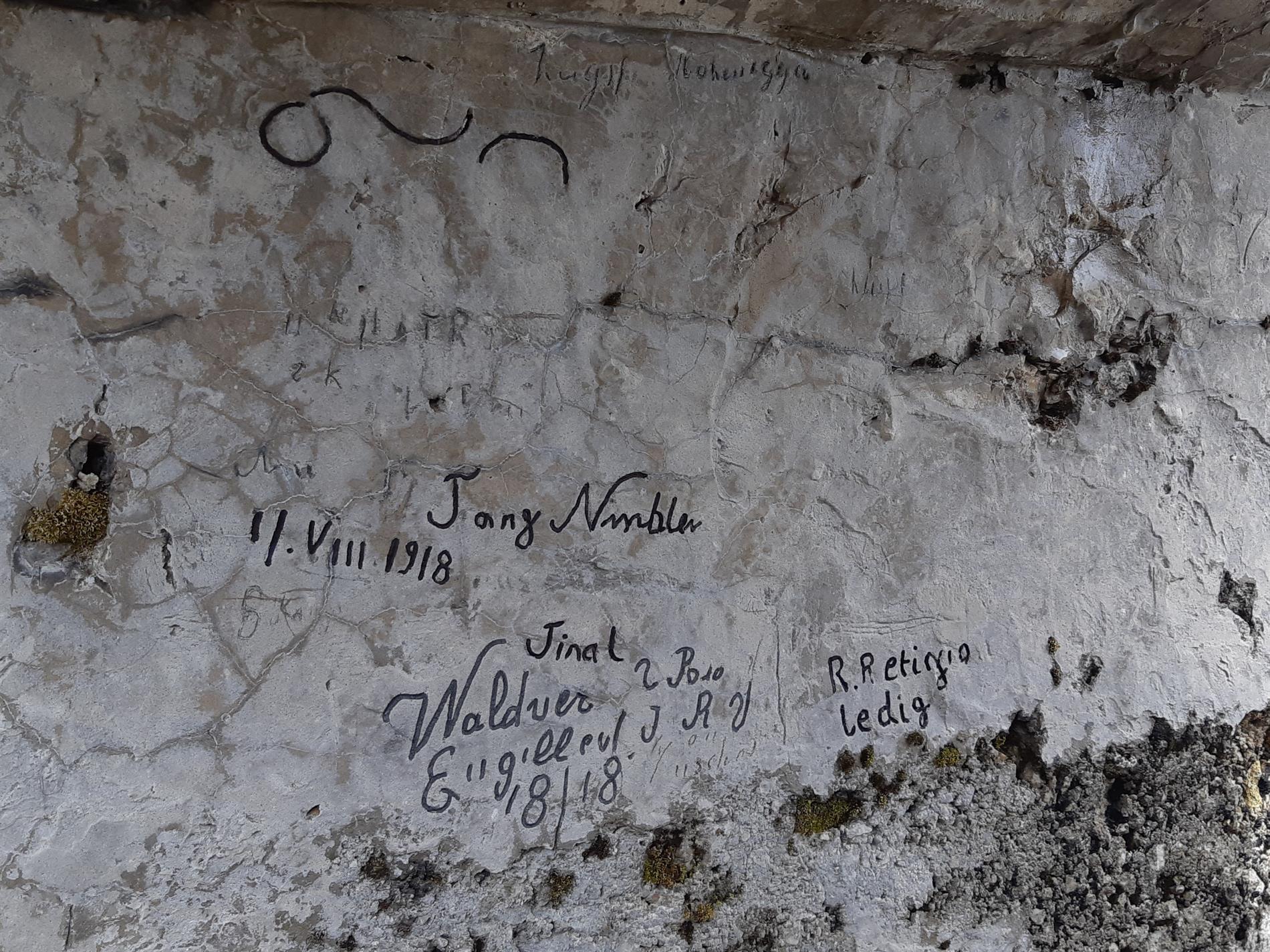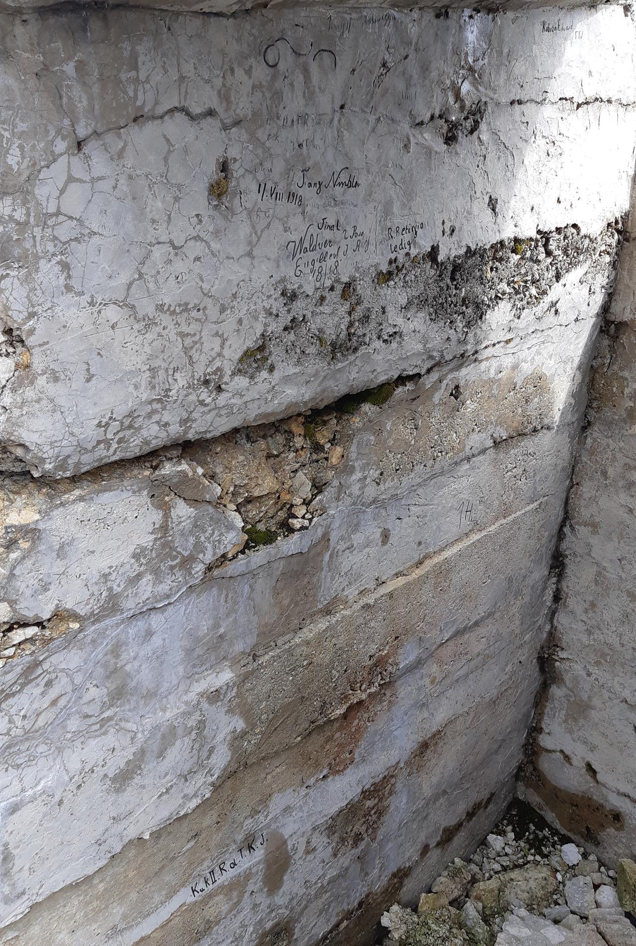 a. Il complesso epigrafico di date e firme di soldati austro-ungarici in una postazione per fuciliere
