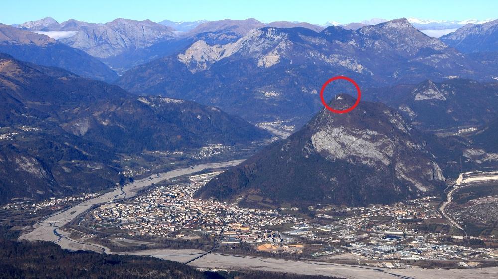 f. Il Monte Strabut sovrastante Tolmezzo; evidenziata l'ubicazione della sezione antiaerea