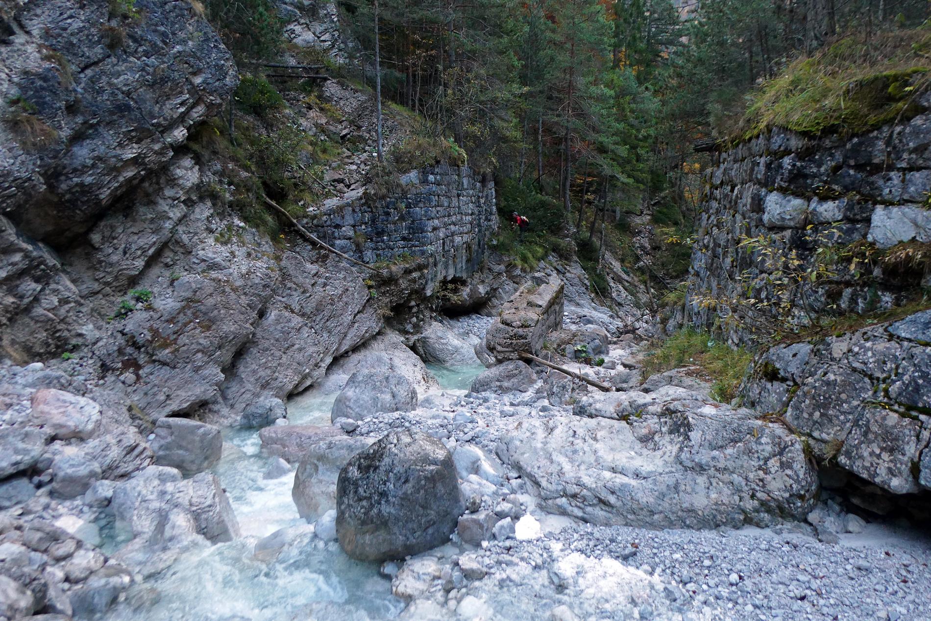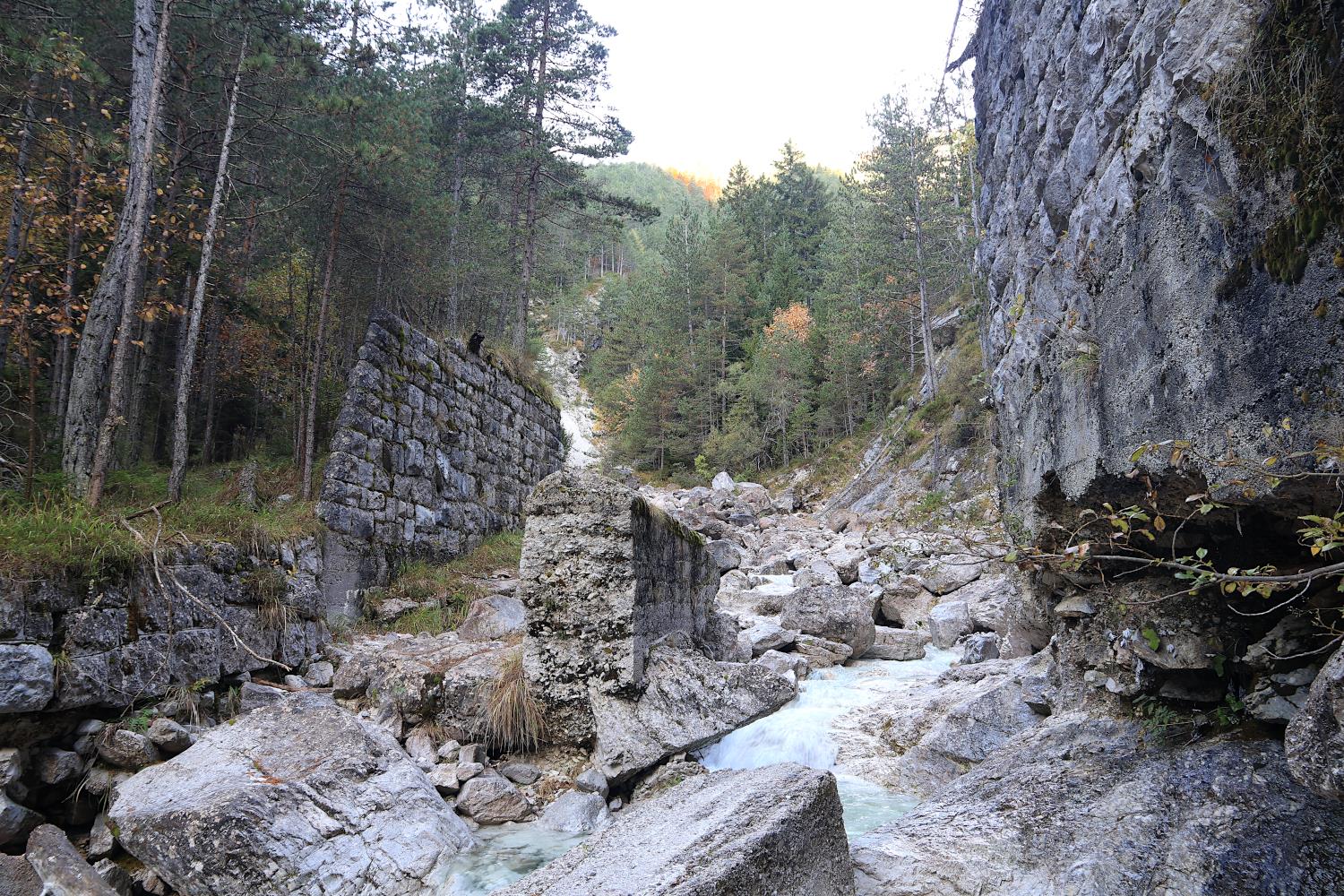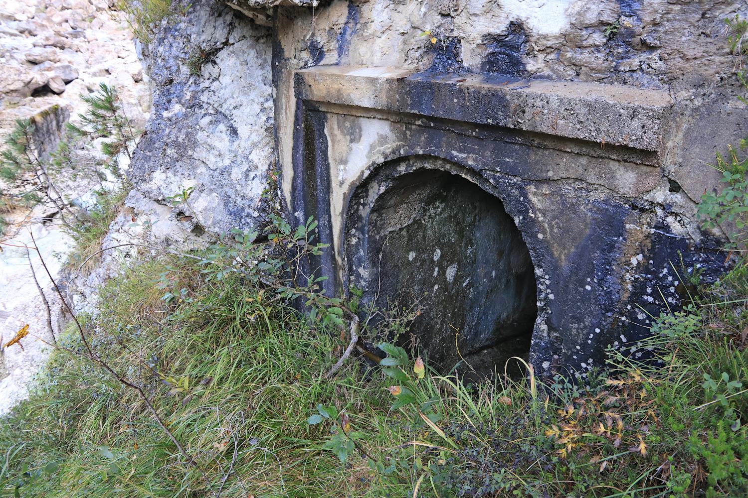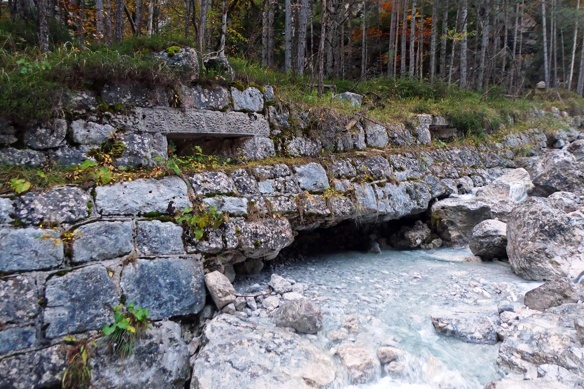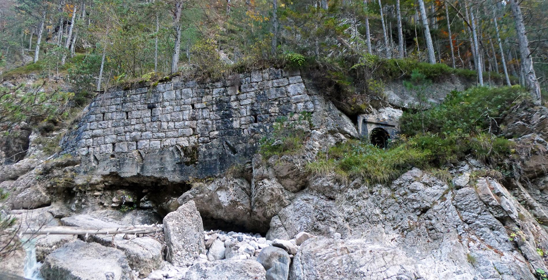 Atteso che il fornello di mina incavernato è ancora in essere, evidentemente l'interruzione non fu attivata come previsto durante i giorni della ritirata di Caporetto (la Val Dogna fu abbandonata dalle truppe italiane il 28 ottobre 1917). Tuttavia, si reputa plausibile che, nel contesto del ripiegamento, la carreggiata lignea del ponte sul Rio Bianco sia stata incendiata.