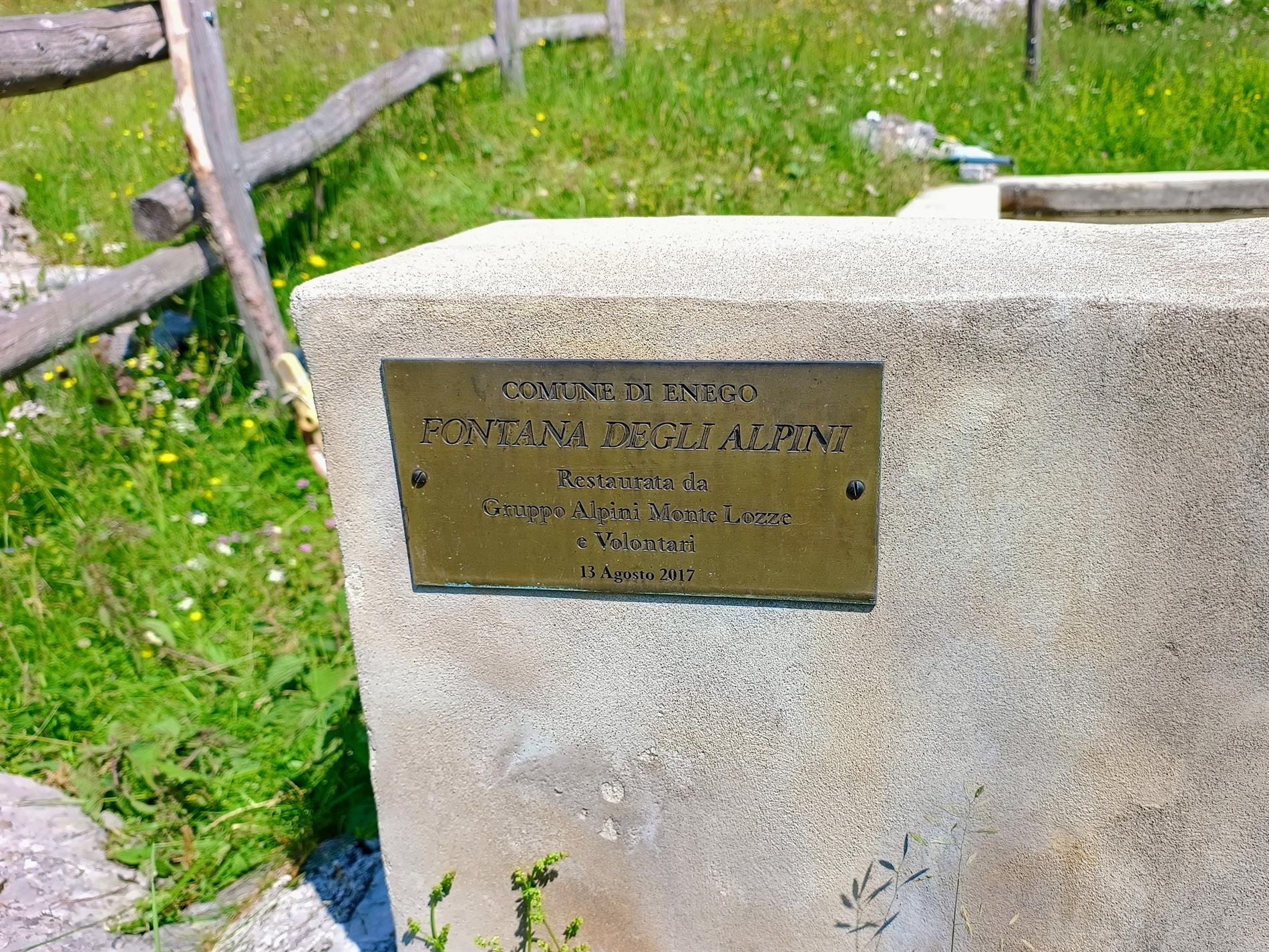 Il fregio degli alpini risulta purtroppo molto rovinato. La fontana è stata restaurata dal Gruppo Alpini Monte Lozze e volontari il 13 agosto 2017.