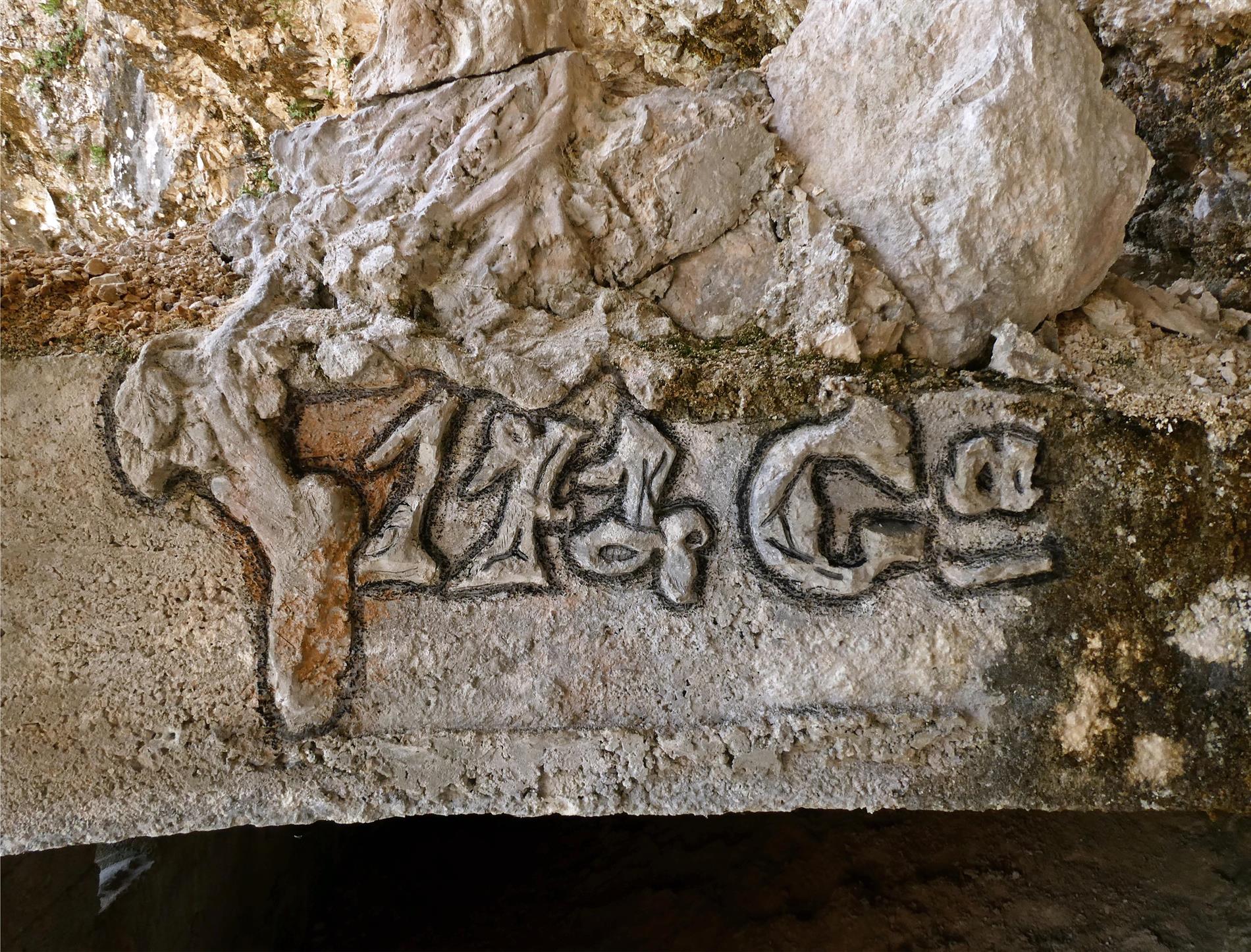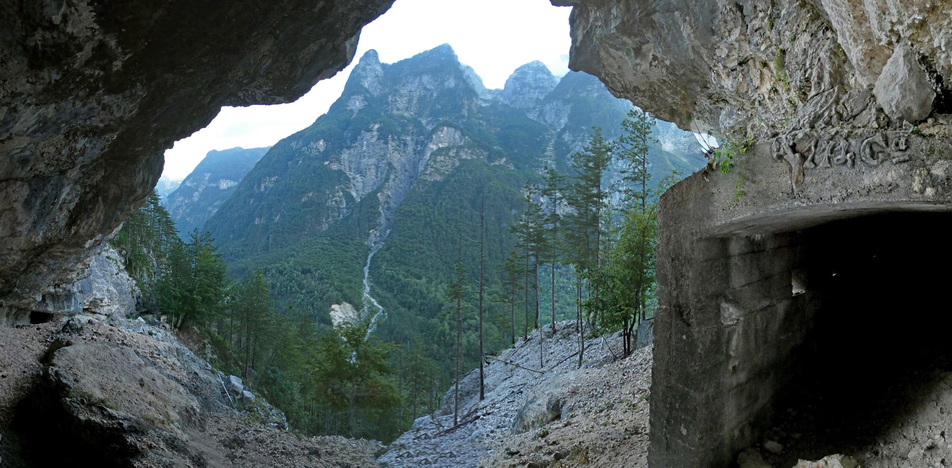 L'epigrafe in oggetto - impreziosita da decorazioni vegetali, purtroppo in gran parte deteriorate - emerge all'ingresso di una fuciliera in cemento e testimonia l'opera della 174ª Compagnia nei lavori di realizzazione di un ardito sistema difensivo ricavato nella parete di roccia del lato orografico destro (nord) della Val Raccolana, sfruttando con sapienza un sistema di cenge, collegate da varie rampe di scale.