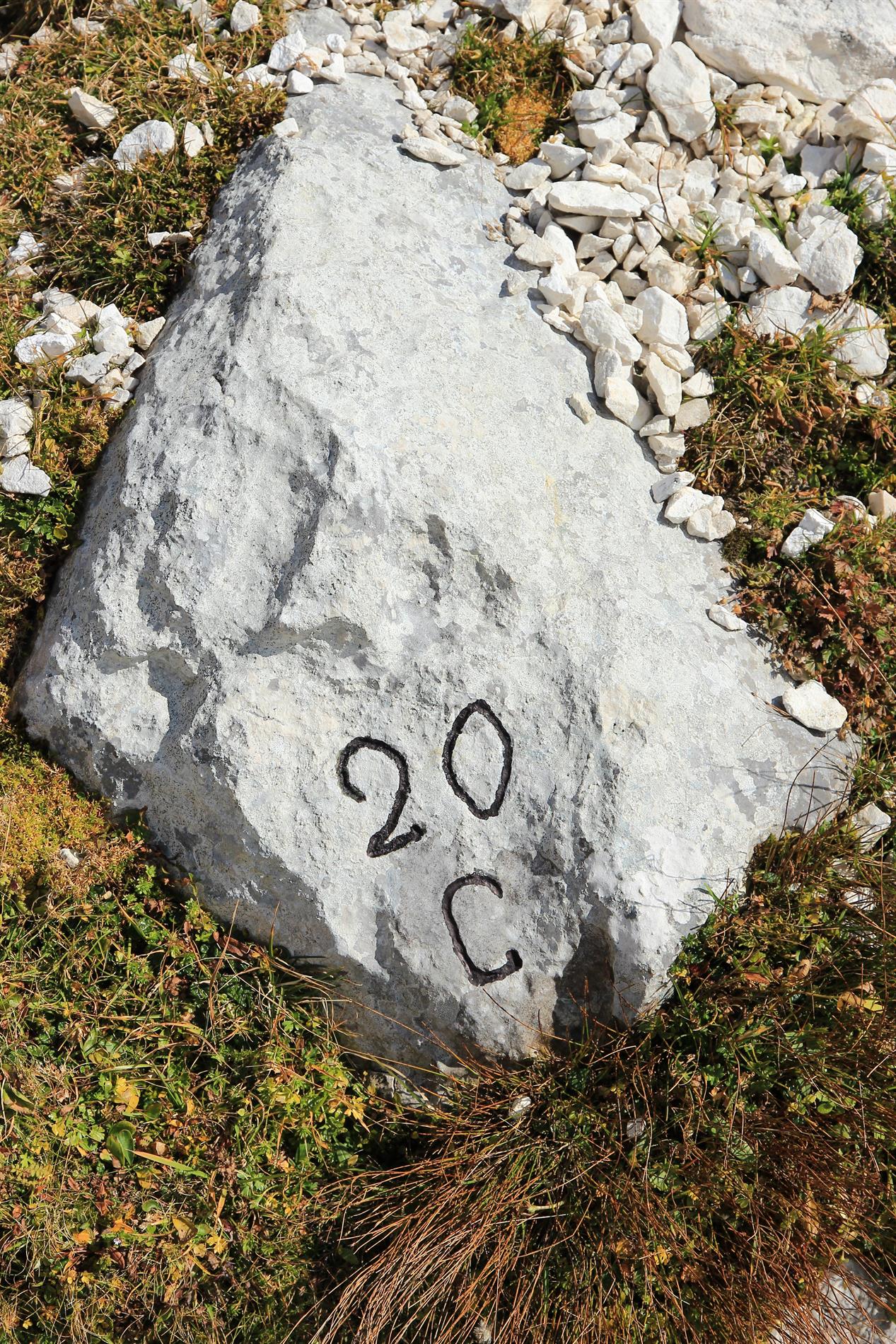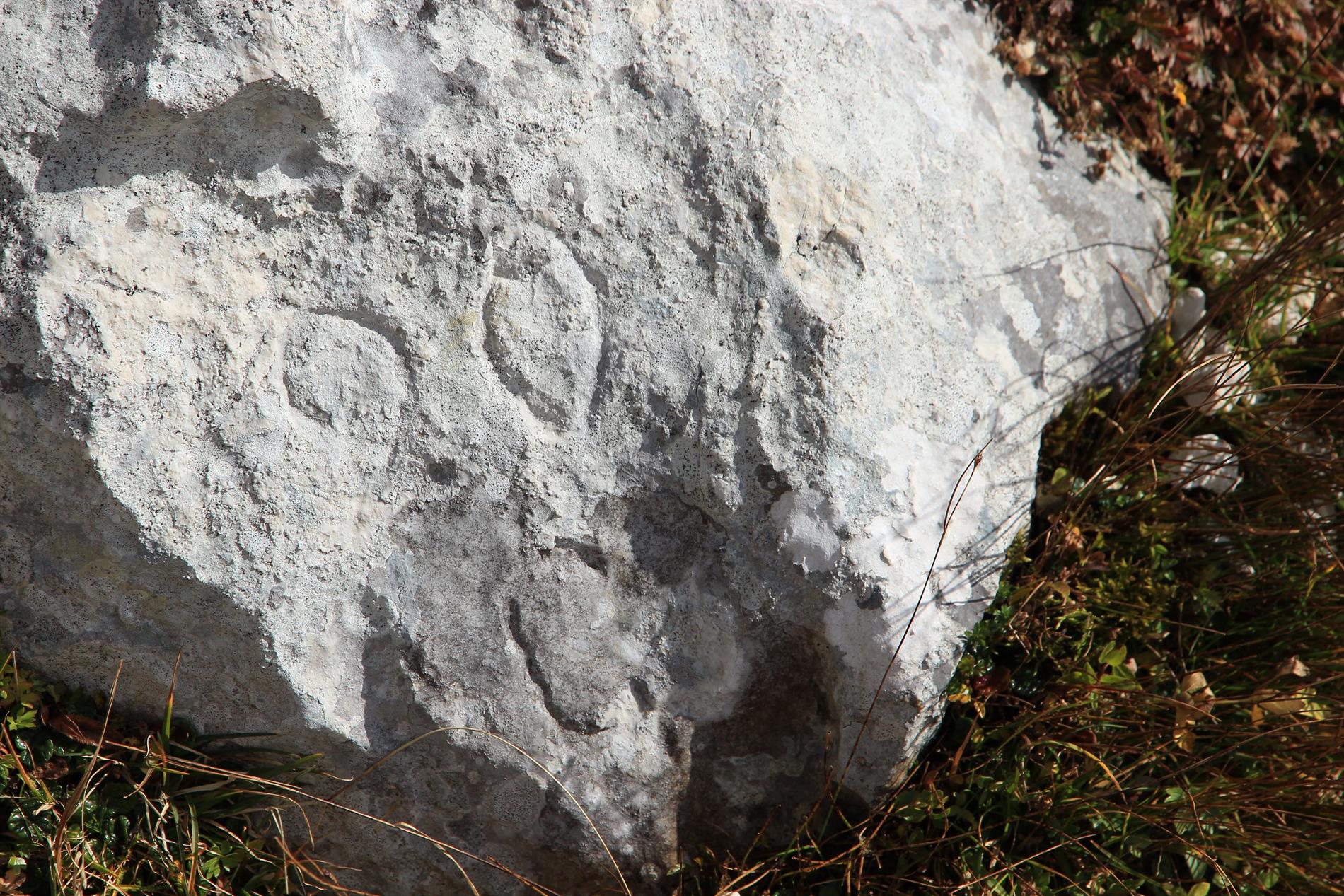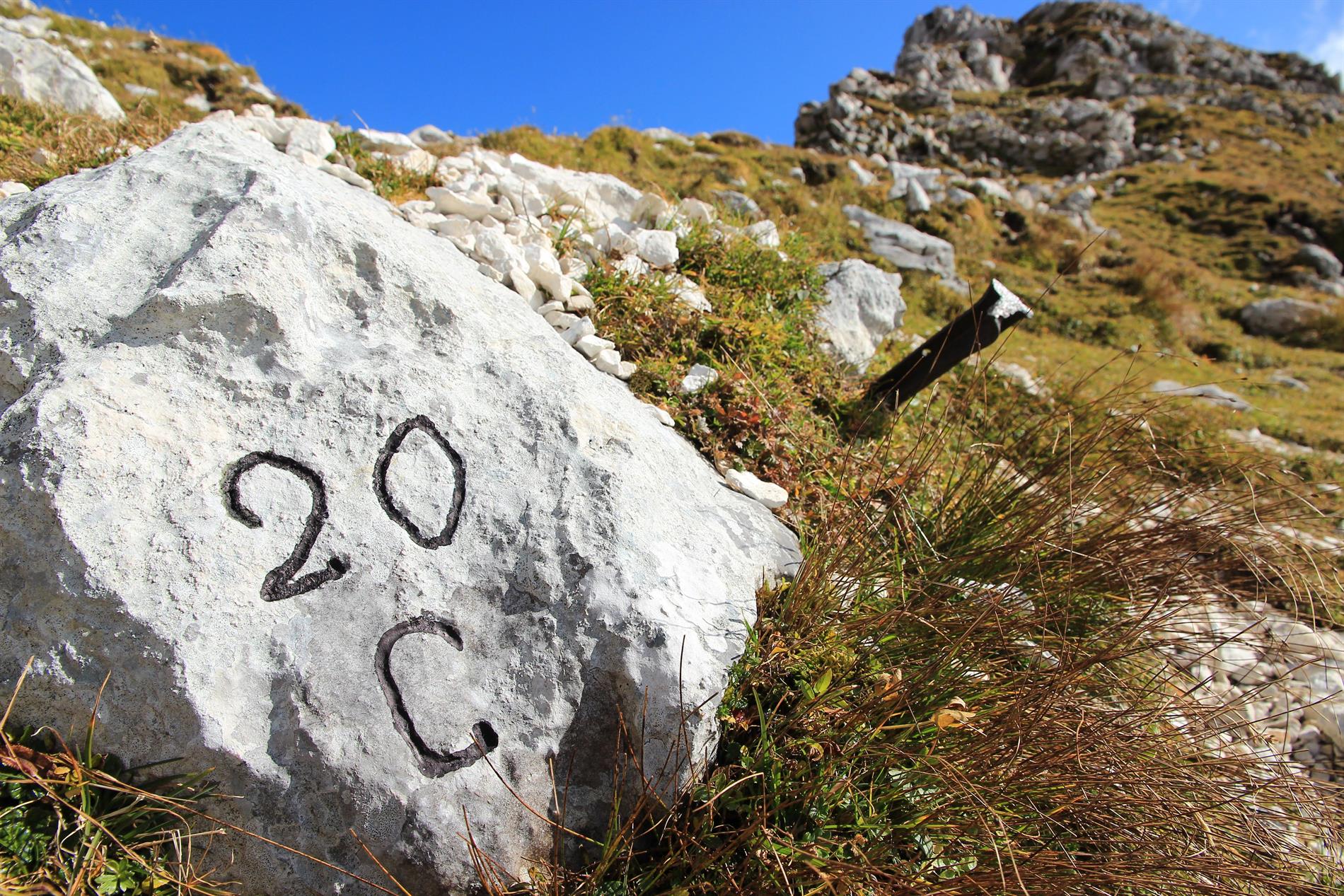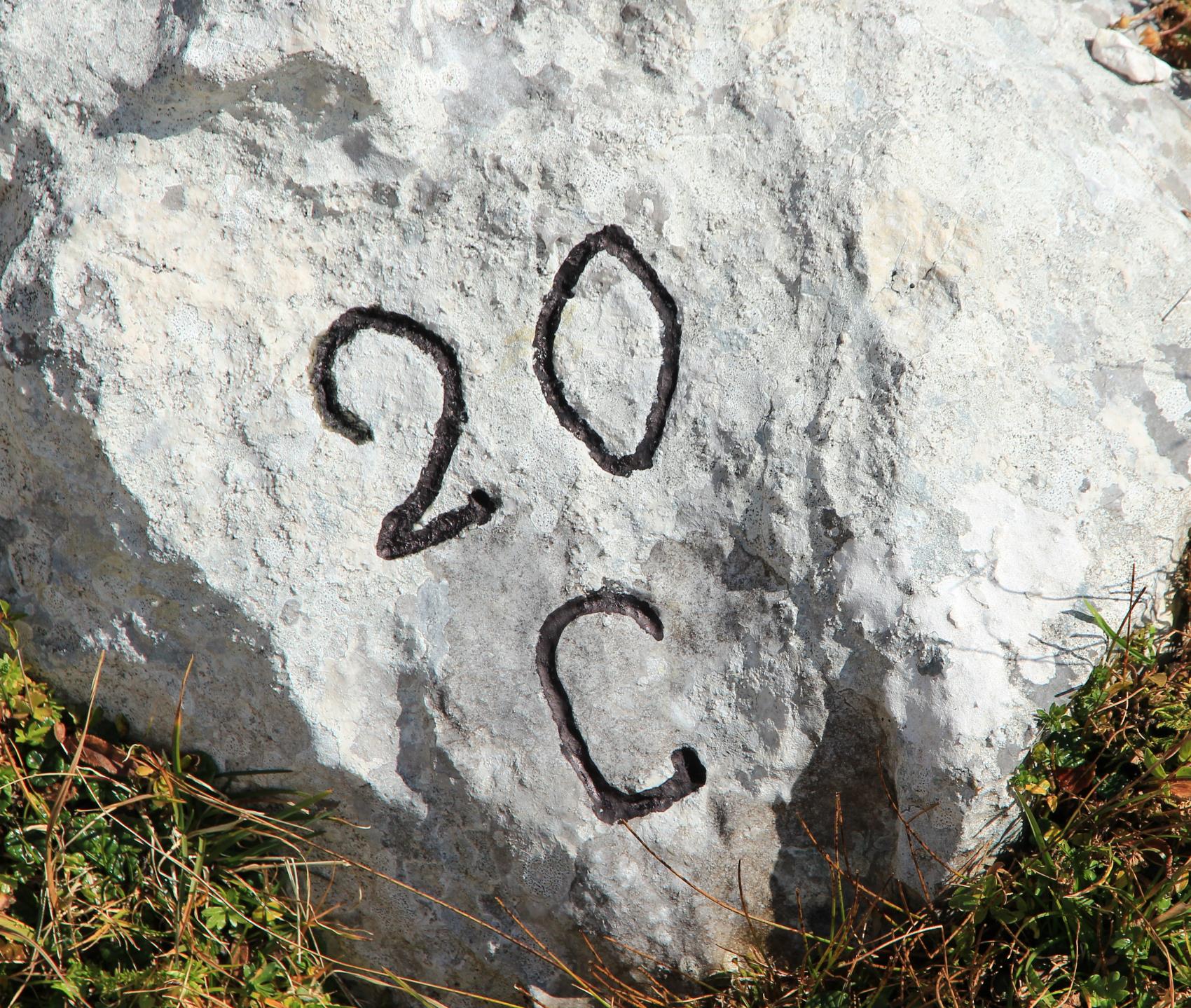Iscrizione di significato non ancora compreso, situata lungo il sentiero di guerra realizzato dalle truppe italiane per accedere alle postazioni di prima linea allestite sulla Cima di Terrarossa e presso la vicina omonima Forca.