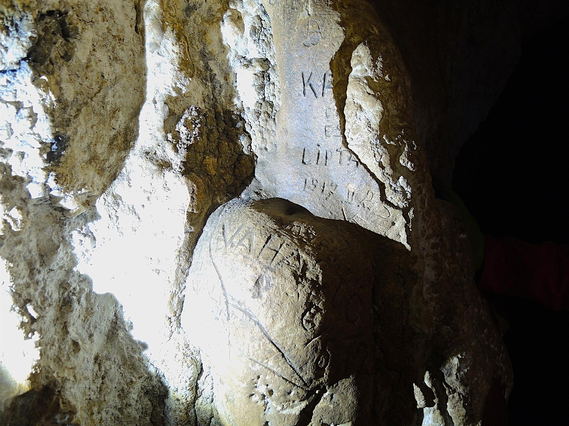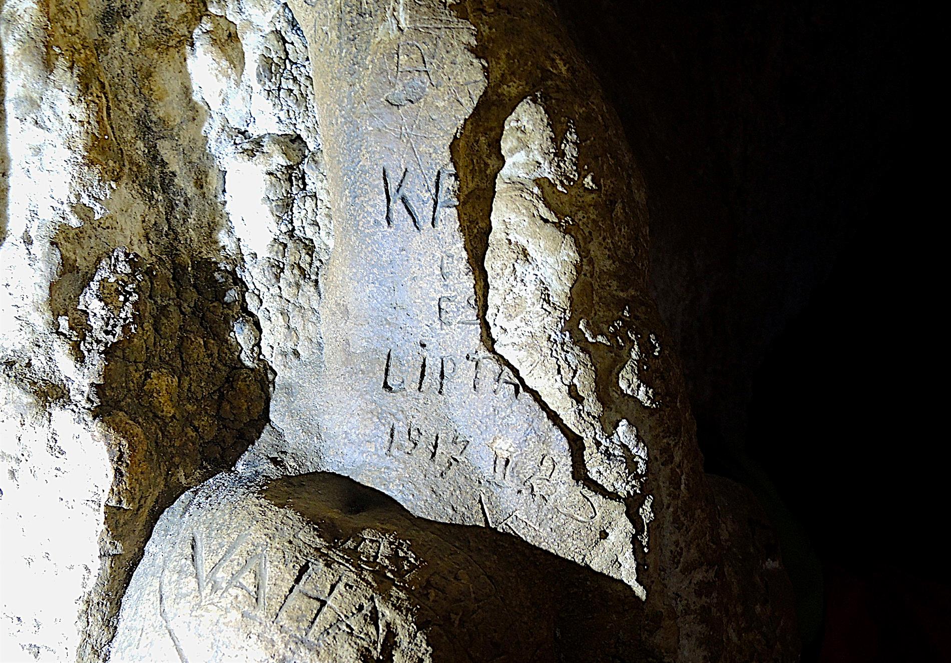 L'iscrizione riporta il nominativo di un militare austro-ungarico di verosimile provenienza slovacca, Karl Lipták (il nome Karl, o Karol, è da stimarsi probabile ma non certo; il cognome Lipták, di matrice slovacca ma diffuso in varie zone dell'Europa centro-orientale, può essere desunto con ragionevole certezza), affiancato dall'indicazione di data afferente al 23 febbraio 1917. Appena sotto emerge un ulteriore graffito di matrice prebellica, lasciato da un visitatore, probabilmente sloveno, nel 1912.