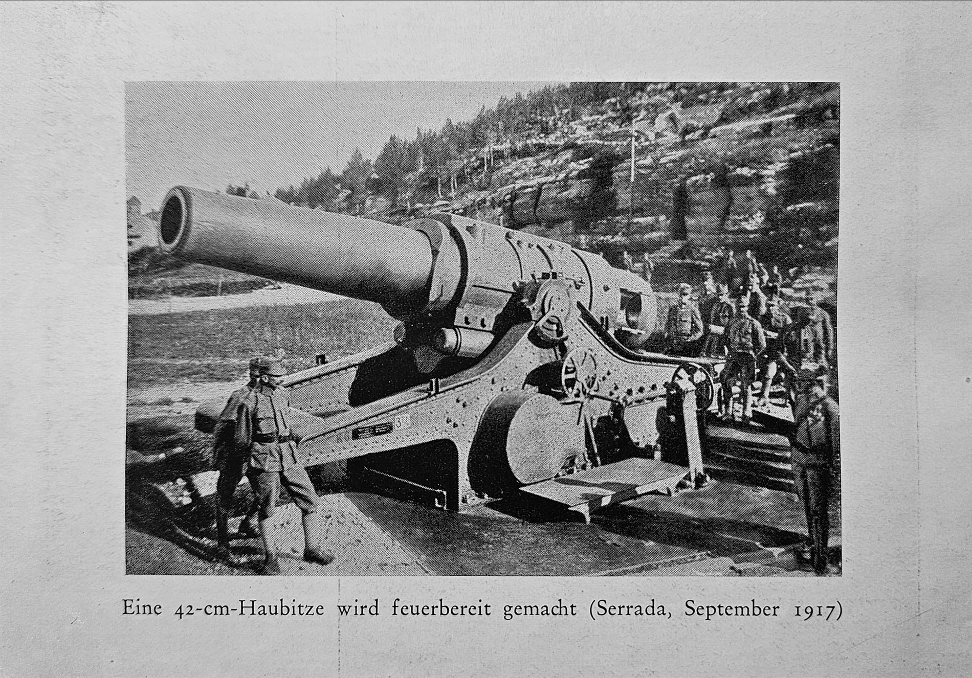 Ebbene, in base all'Ordine di Battaglia dell'1 novembre 1917 del Gruppo Armate Conrad relativo alla "Battaglia di arresto sull'Altipiano dei Sette Comuni" (10 novembre-25 dicembre), contenuto nella Relazione Ufficiale austro-ungarica, si rileva che vi furono impegnate due Batterie Obici da 42 cm, entrambe organiche alla 56. Feldartillerie Brigade (Oberst Ziller) della 56. Schützen Division (Feldmarschall-Leutnant Joseph Edler von Kroupa): la 4ª Batteria del K.u.K. Festungsartillerie Regiment Nr. 6 e la 8ª Batteria (autonoma o comunque senza indicazione del reggimento di appartenenza).