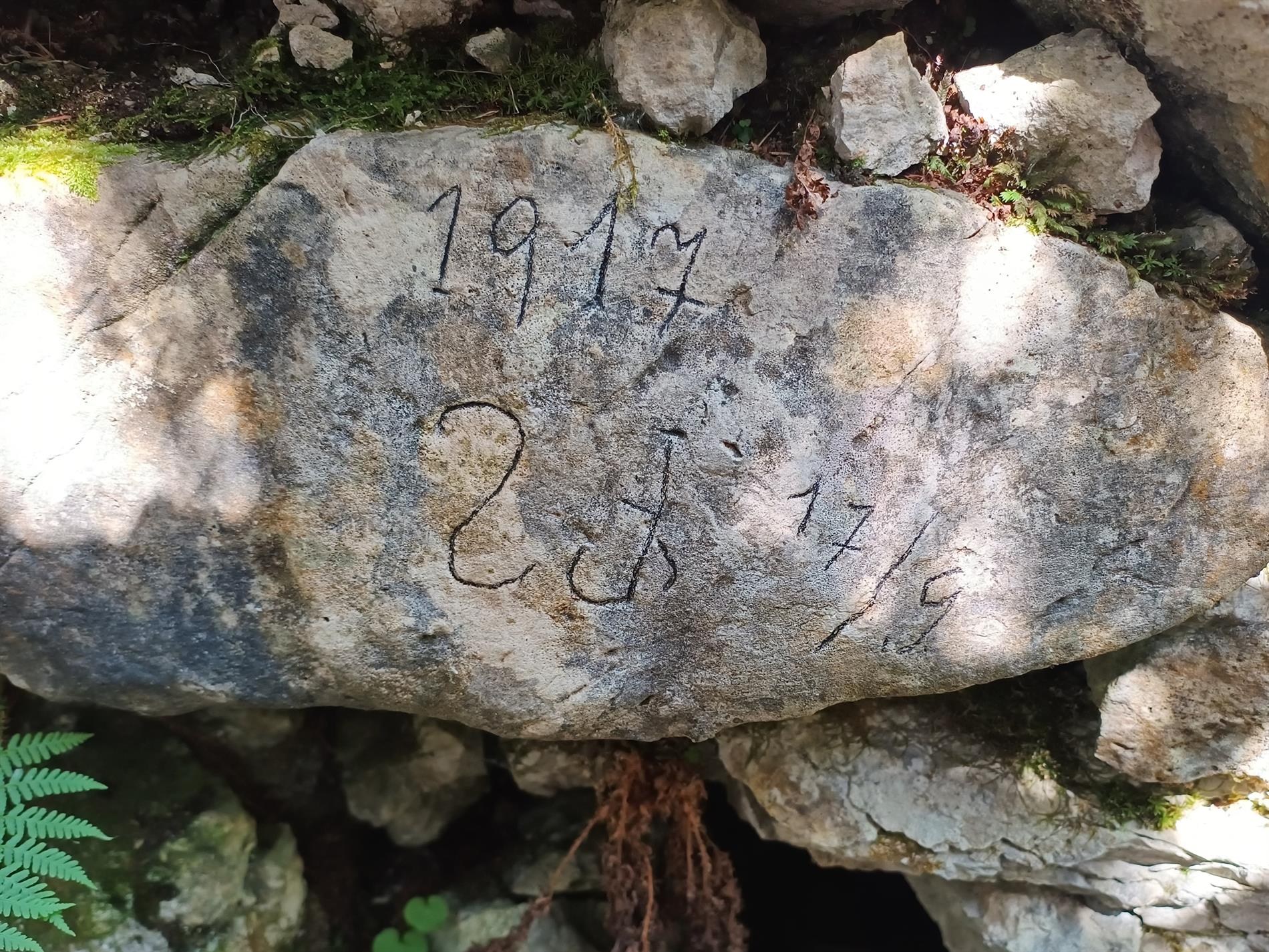 Iscrizione con data in una trincea di prima linea - Monte Cucco di Pozze