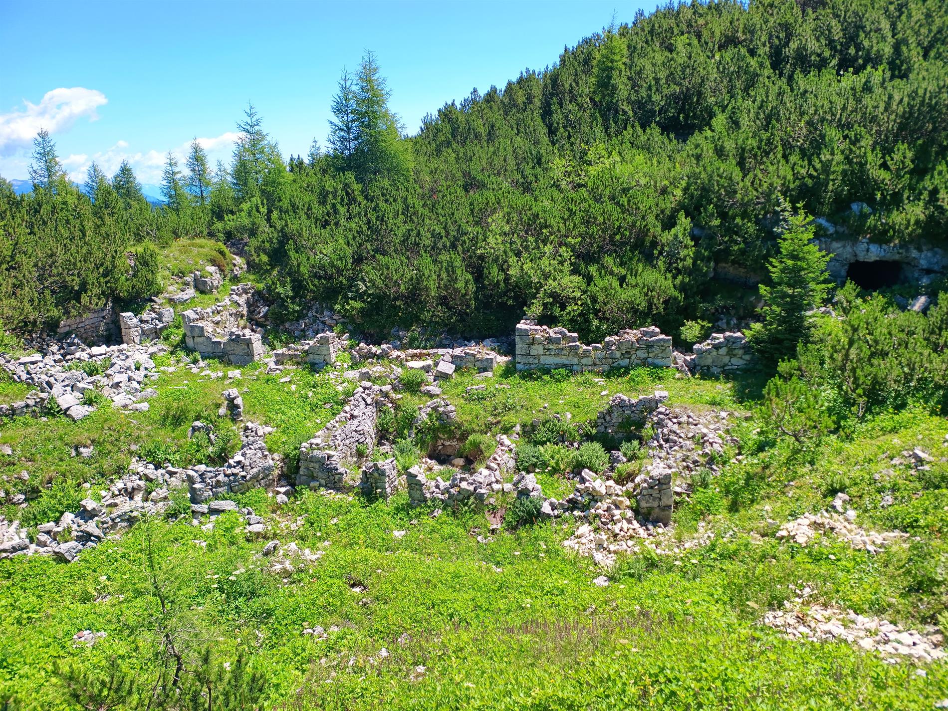 d. I resti del piccolo villaggio austro-ungarico di prima linea sul rovescio del Monte Cucco di Pozze