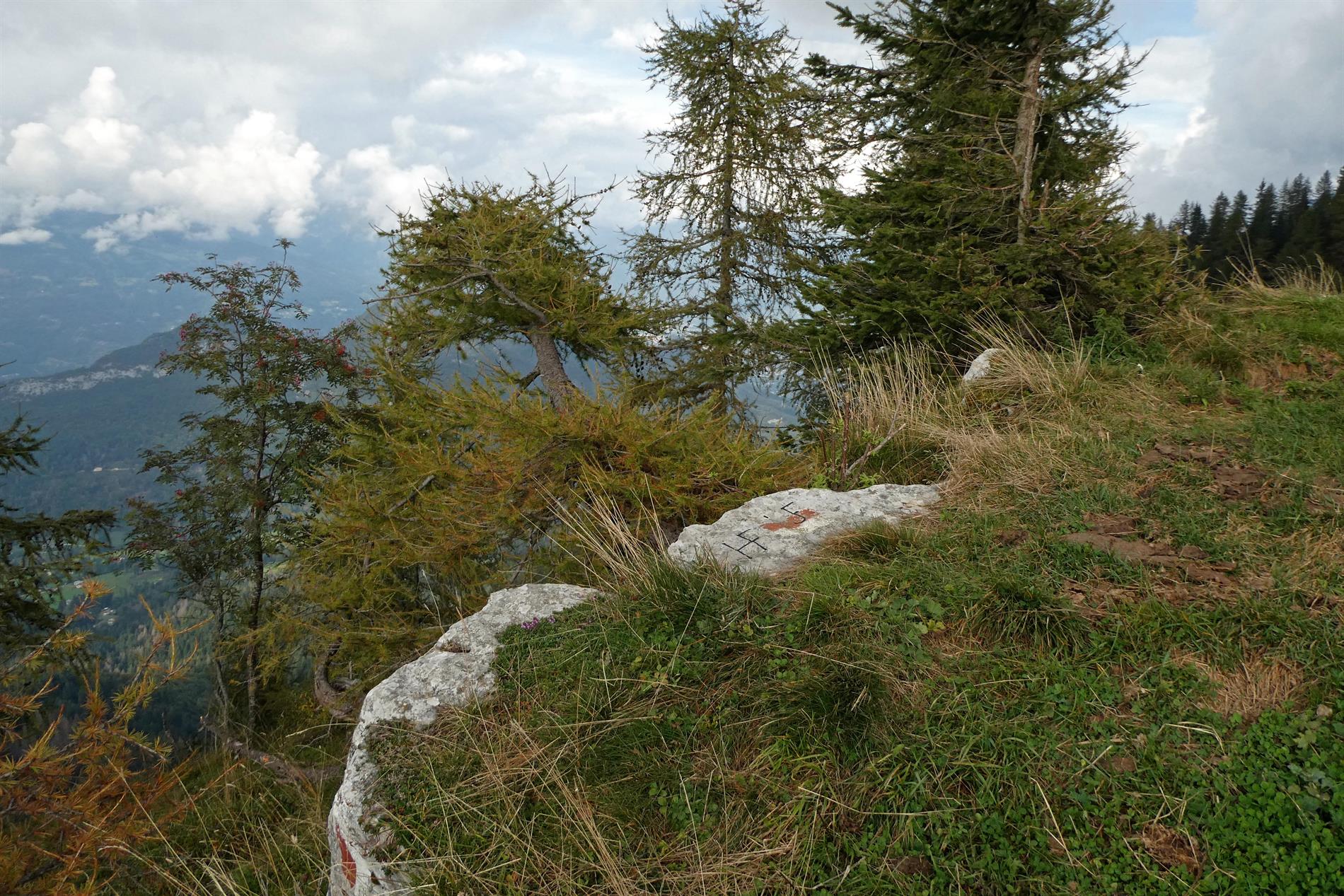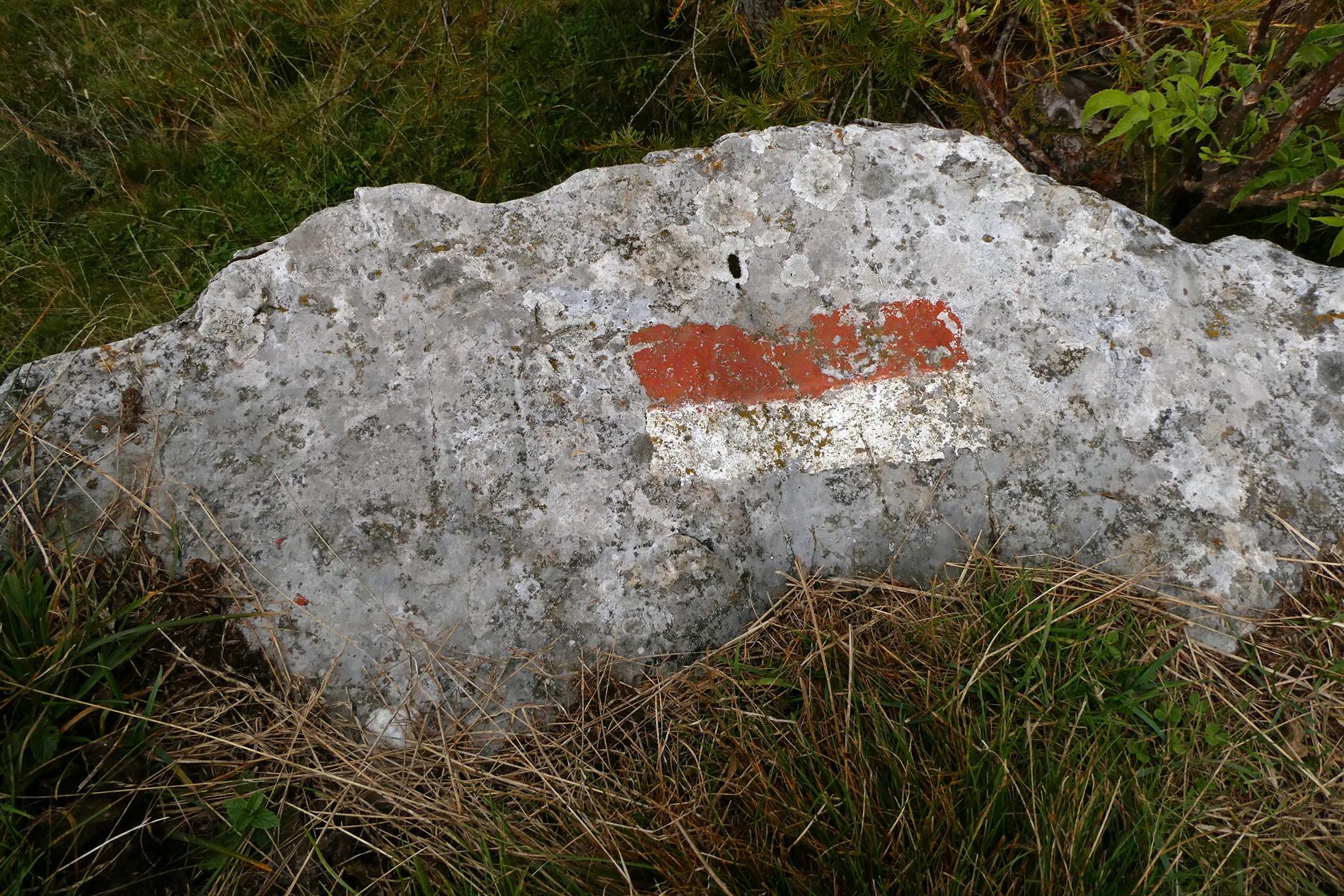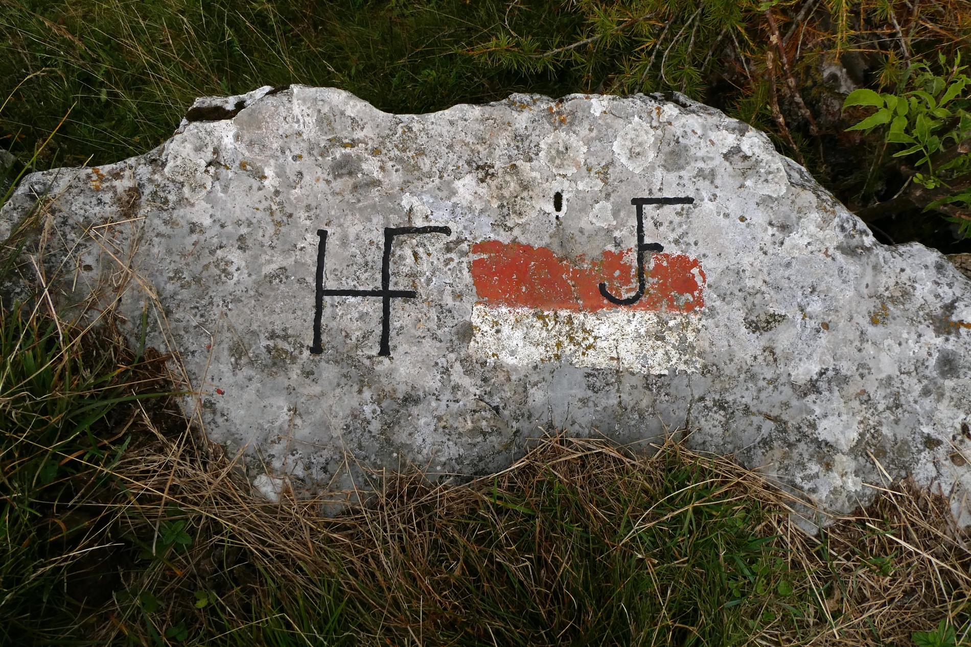 b. L'iscrizione su un masso al suolo