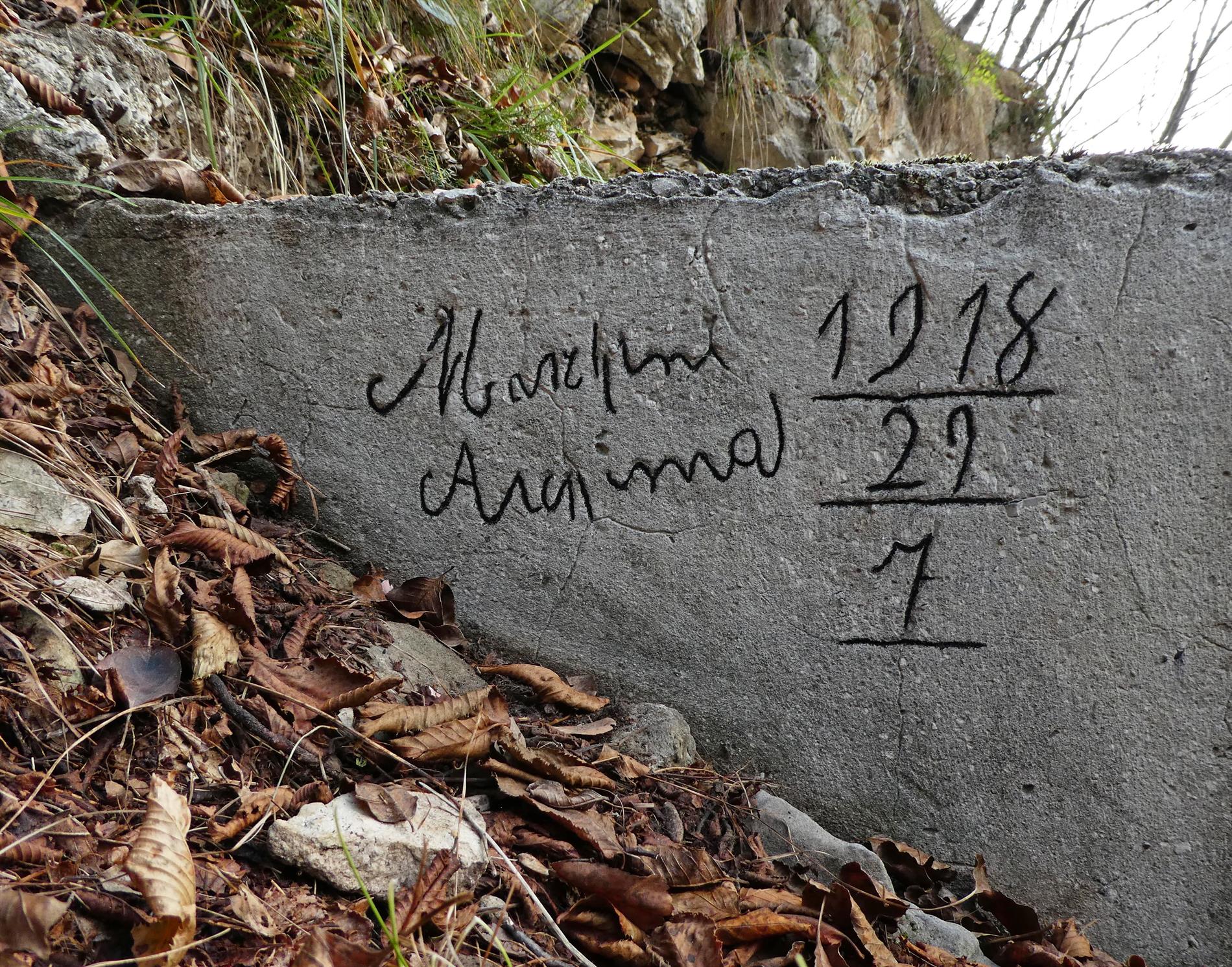 L'iscrizione, vergata da un militare il cui nominativo risulta di difficile interpretazione, riporta la data del 29 luglio 1918.
