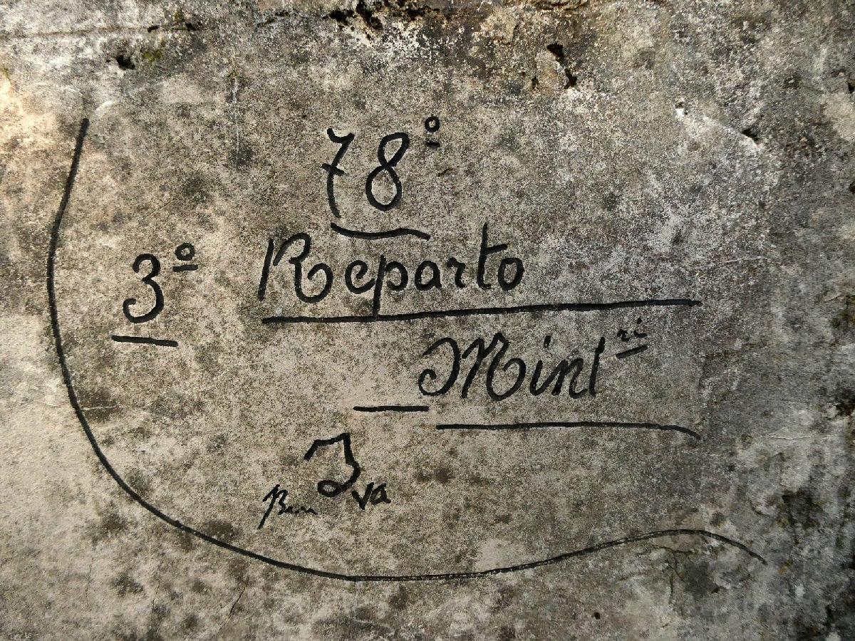 Il graffito ricorda il 3° Reparto Minatori, aggregato al 78° Reggimento Fanteria. I Reparti minatori sorti in seno ai reggimenti di fanteria, molto meno numerosi dei Reparti Zappatori, avevano il compito di scavare caverne, gallerie, ricoveri, ma anche di costruire strade e collaborare nella costruzione di camminamenti e trincee particolarmente impegnative. Il 78° Reggimento Fanteria della Brigata Toscana compì alcuni turni di trincea nei primi mesi del 1917 nel settore sottostante quota 85, in preparazione all'avanzata di primavera (12 maggio-8 giugno). Inviato a rincalzo della Brigata Arezzo che operava a nord e ad est del Lisert, fra il 23 ed il 28 maggio conquistò alcune posizioni nemiche fra Quota 77 e le gallerie di Quota 43 e Quota 40, catturando un migliaio di prigionieri.