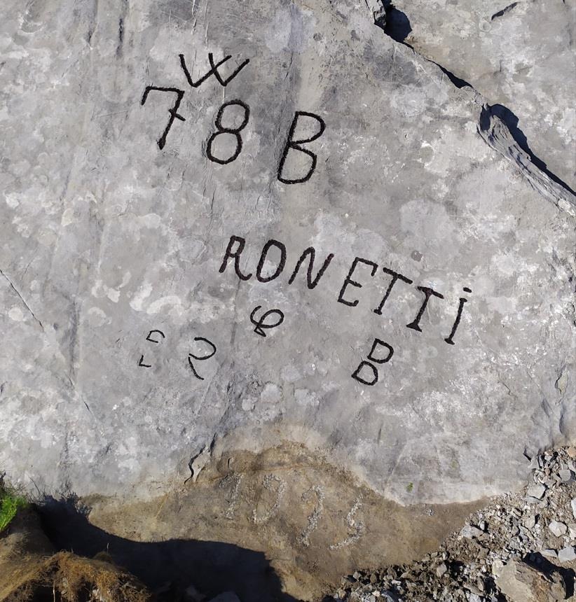 L'iscrizione, riconducibile ad un militare di cognome Ronetti, risulta interessante in quanto effettuata nel 1915. Infatti, le epigrafi del primo anno di guerra sono meno numerose di quelle degli anni successivi, probabilmente anche per l'idea diffusa di un conflitto rapido, che portava a pensarvi in maniera poco stabile e stanziale.