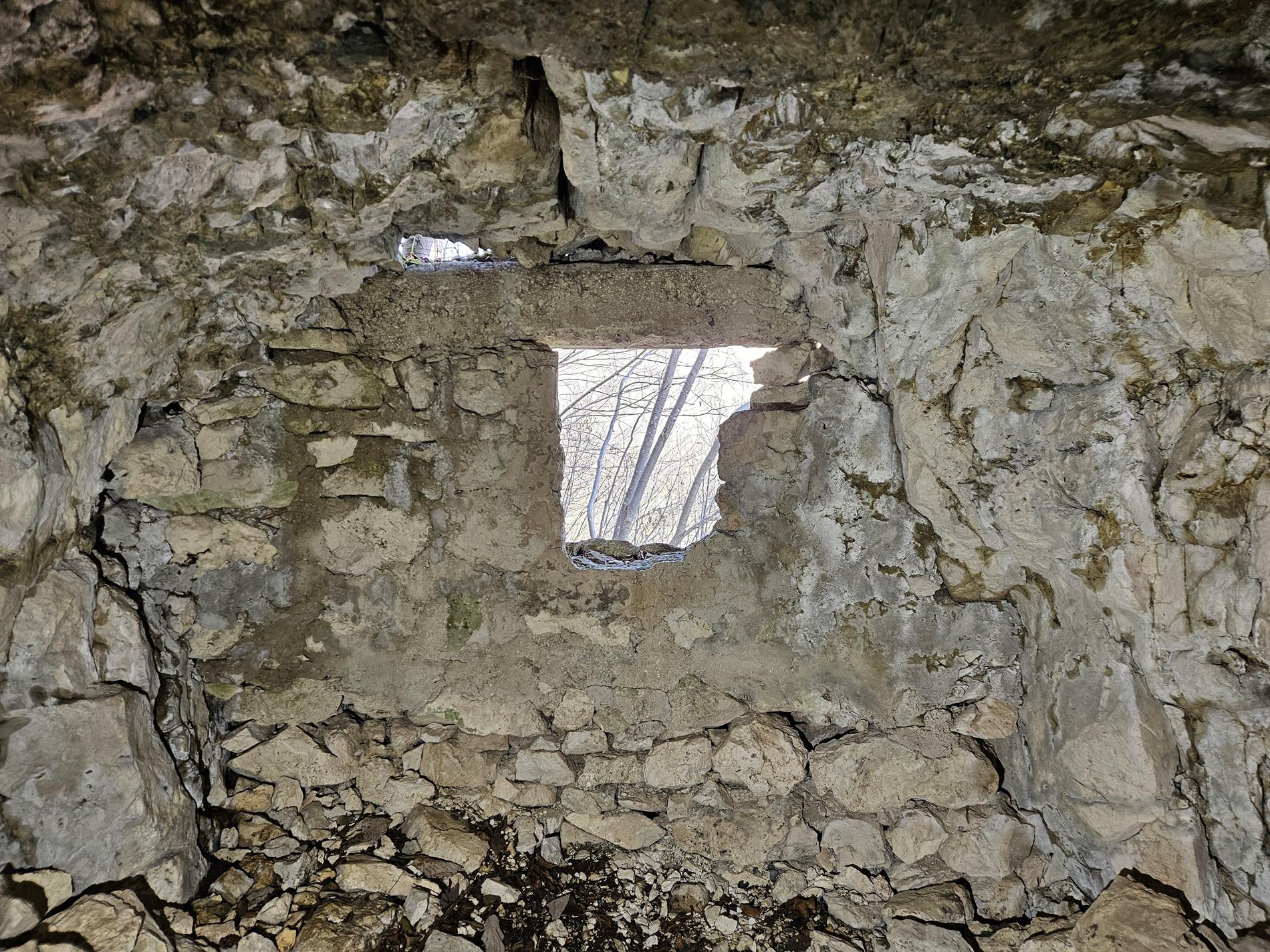 f. L'esterno del roccione con la postazione per mitragliatrice