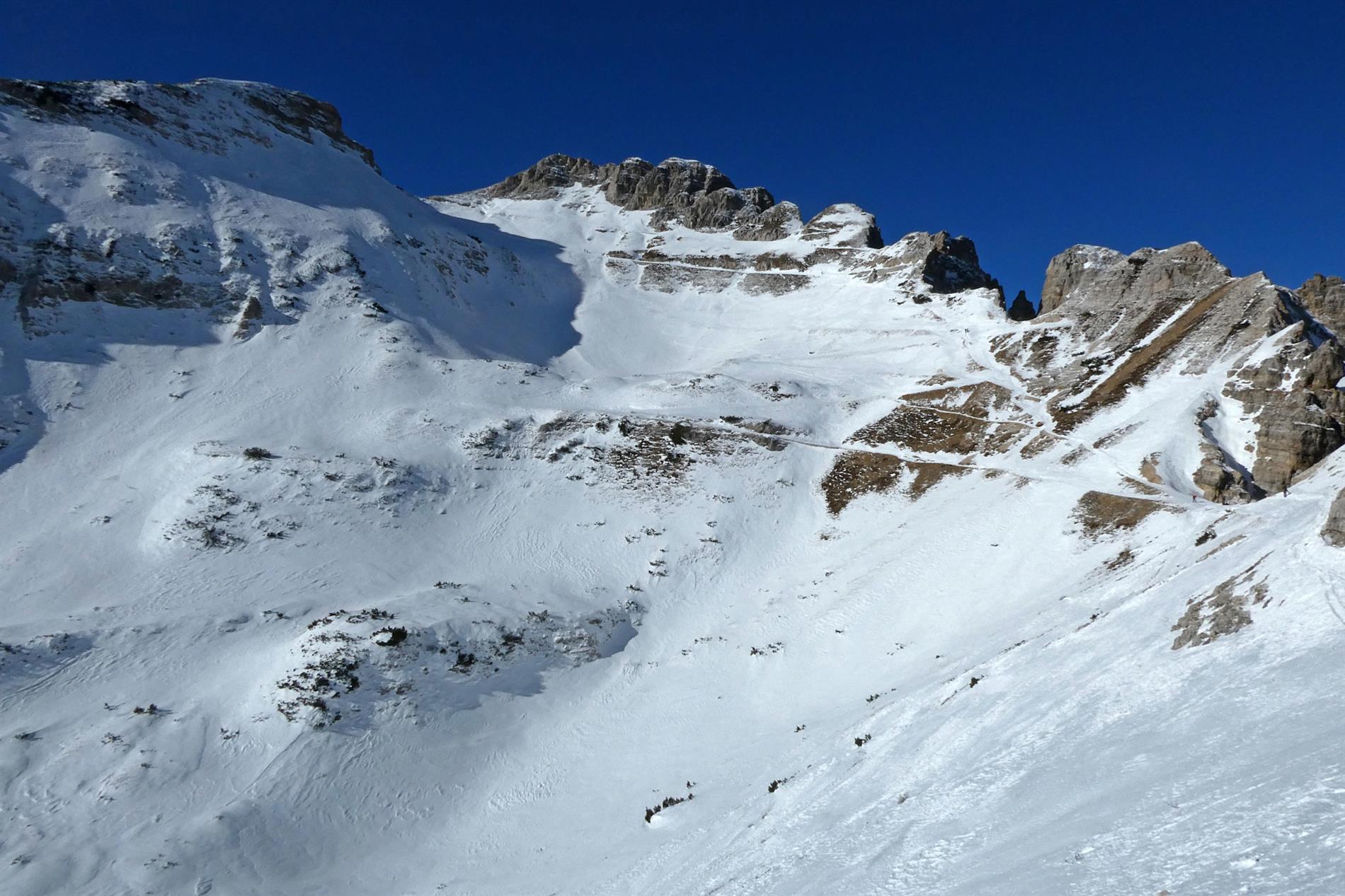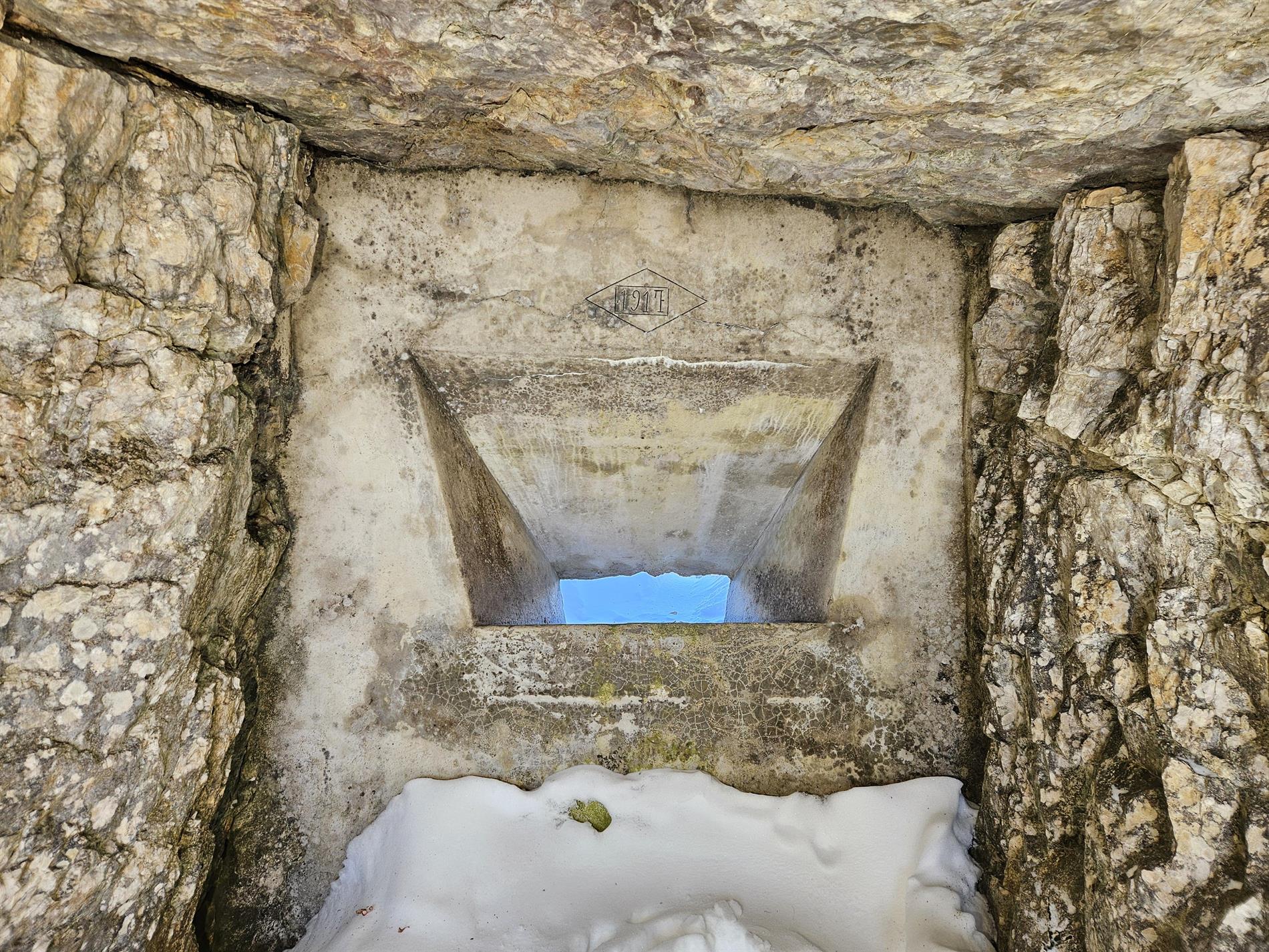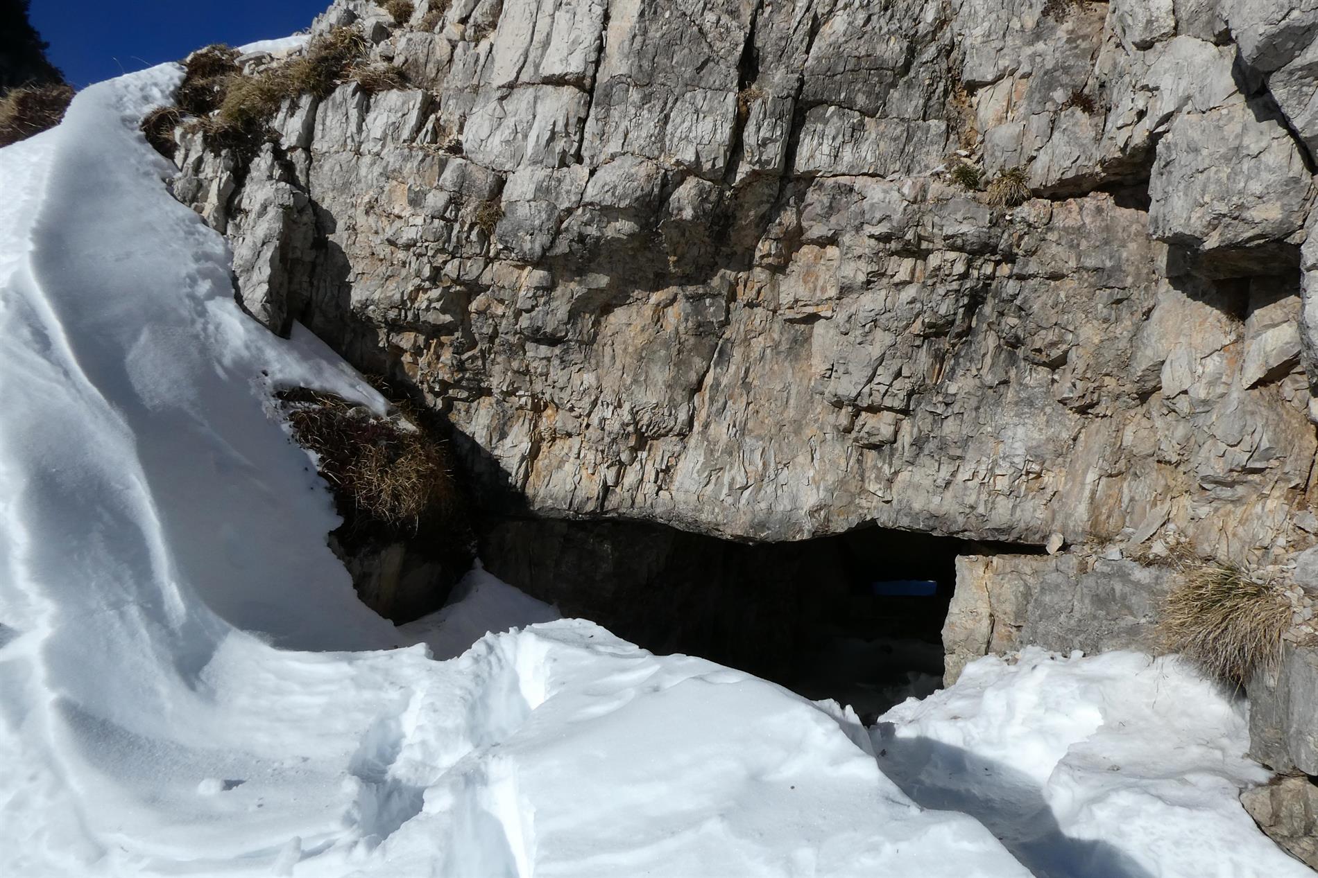 Per quanto attiene specificamente alla porzione sud-orientale della dorsale, la linea di massima resistenza venne realizzata tra Cima Levante e Cima Posta, presso la testata della Val del Gatto. Tenuto conto della difficoltà del terreno, il tratto a meridione di Cima Levante (Cima Posta, Cima Carega, Monte Obante) fu organizzato mediante elementi di difesa sulla dorsale (di tale organizzazione fa parte la postazione per mitragliatrice in cui compare l'iscrizione in oggetto) e trincee in roccia a sbarramento delle vallette trasversali, anche a presidio del Passo di Campogrosso.
