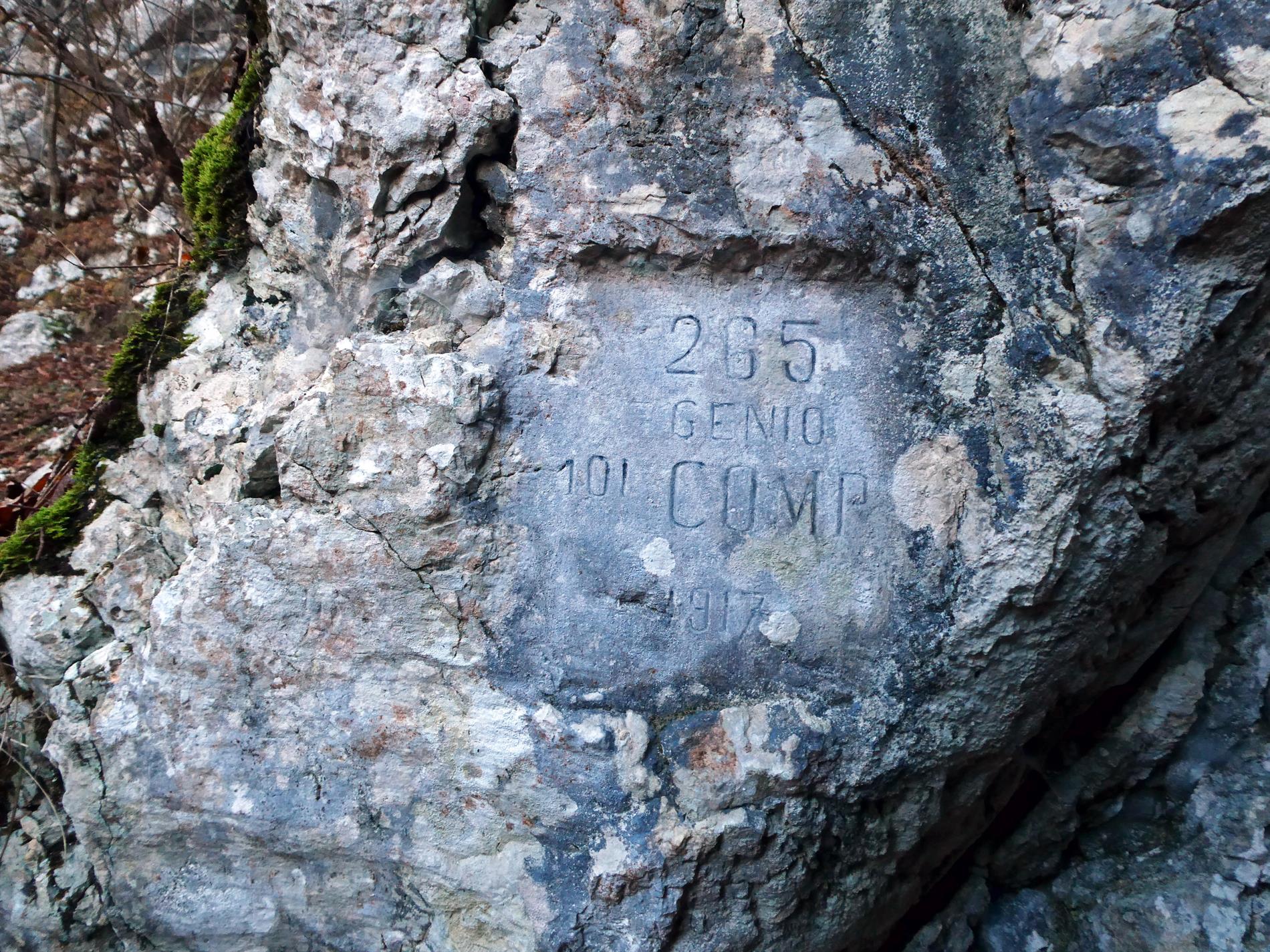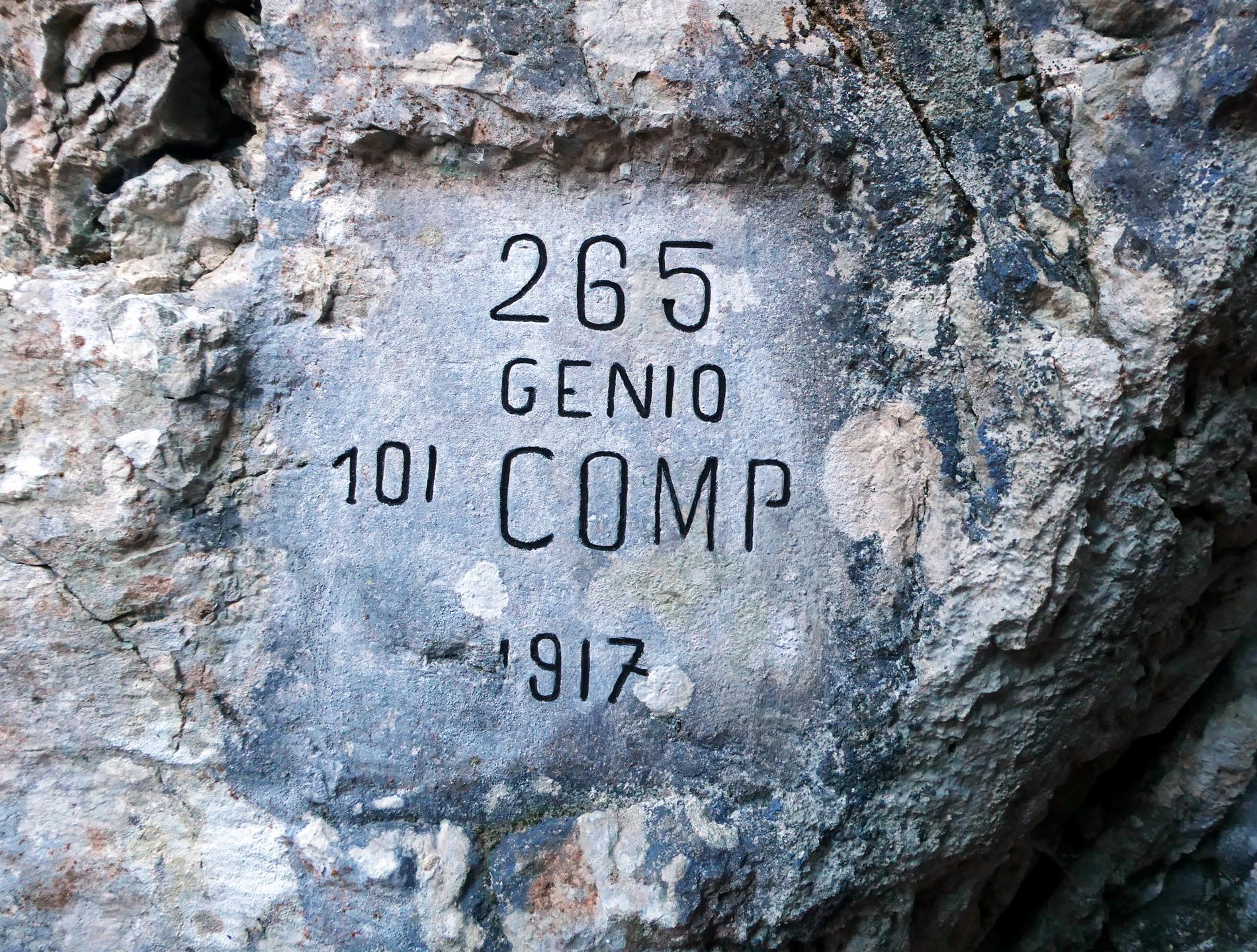Iscrizione della 101ª Compagnia del 2° Reggimento Genio Zappatori all'esterno della caverna n. 265 - Monte Lefre