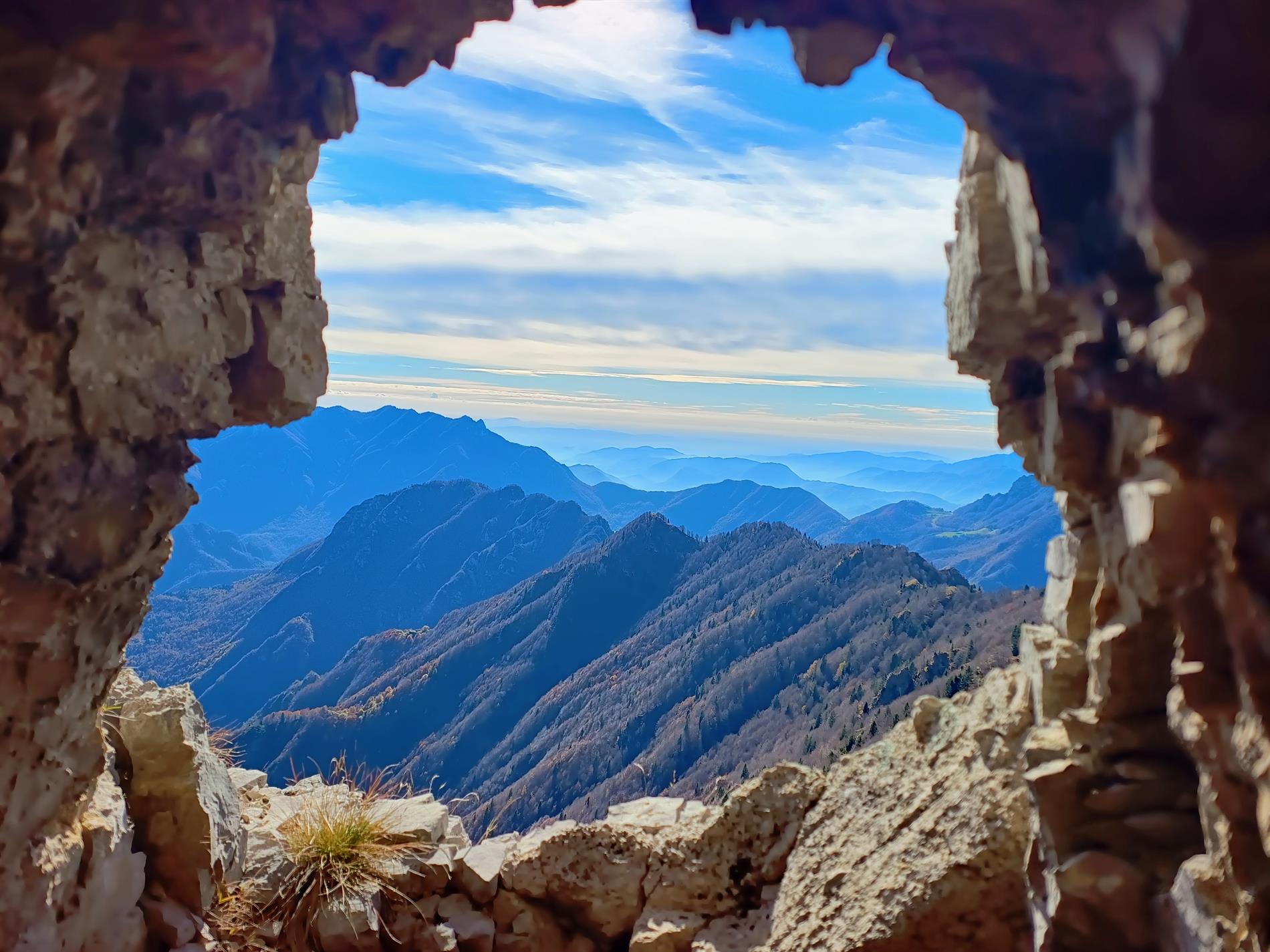 f. La vista dalla seconda apertura verso sud ovest della postazione sulle creste culminanti con il Monte Majo