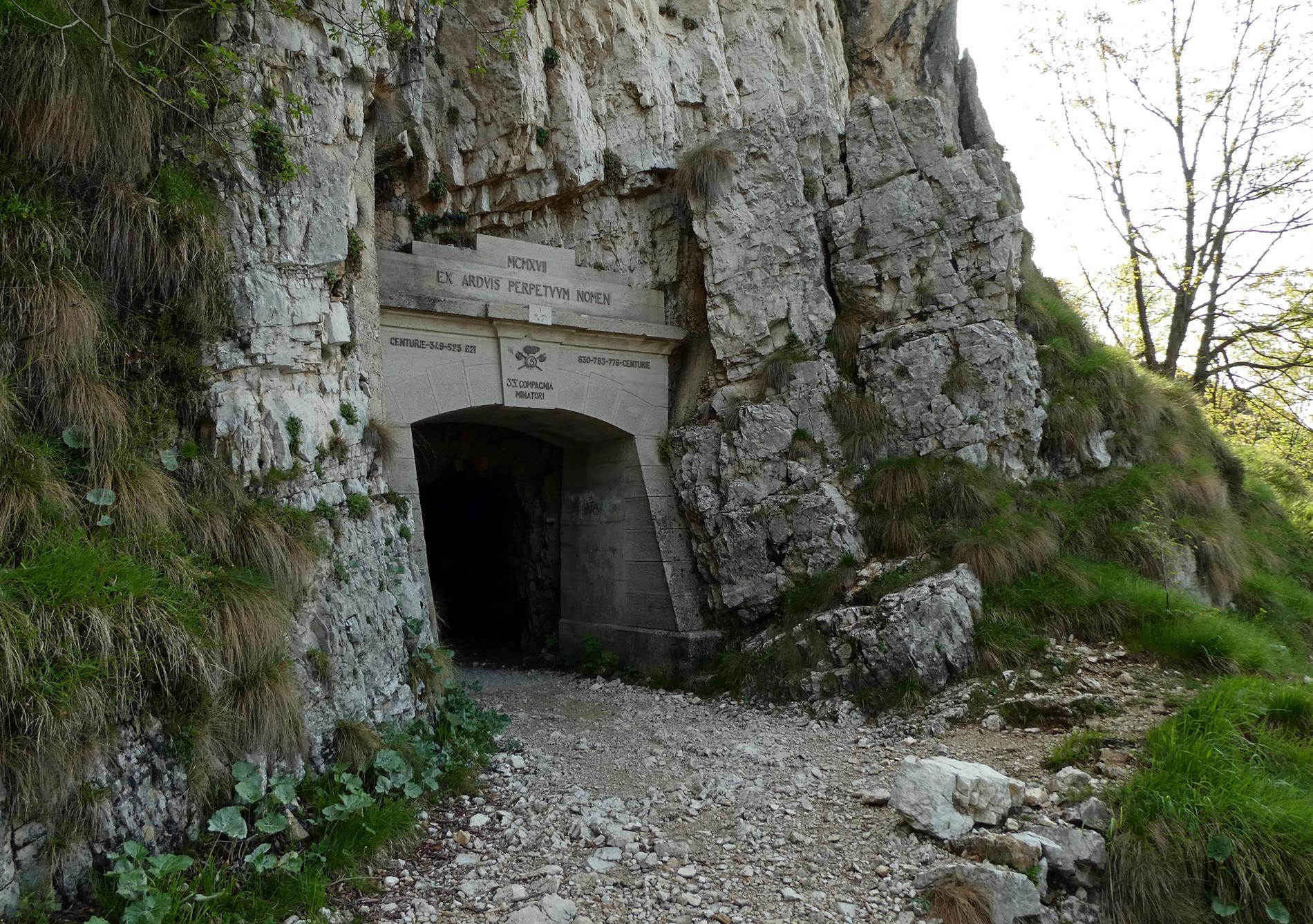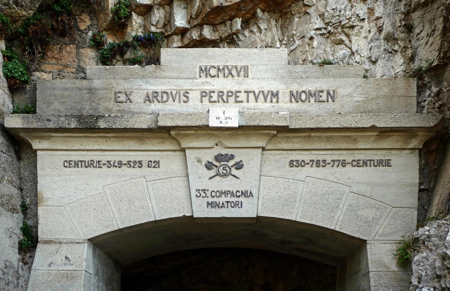a. L'iscrizione della 33ª Compagnia Minatori e delle Centurie Lavoratori sul portale monumentale della Strada delle 52 Gallerie