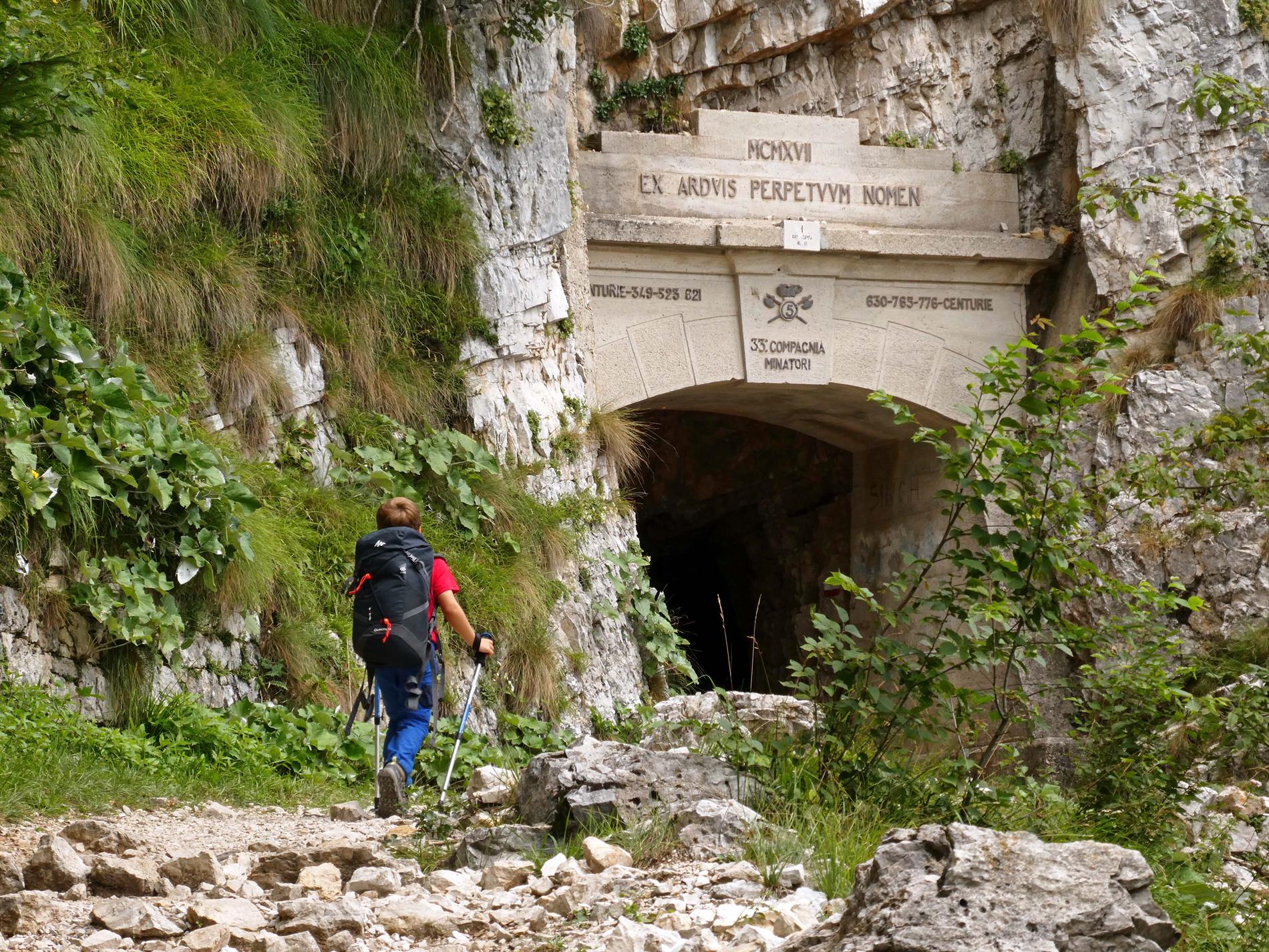 Iscrizione della 33ª Compagnia Minatori e delle Centurie Lavoratori sul portale monumentale della Strada delle 52 Gallerie - Bocchetta Campiglia