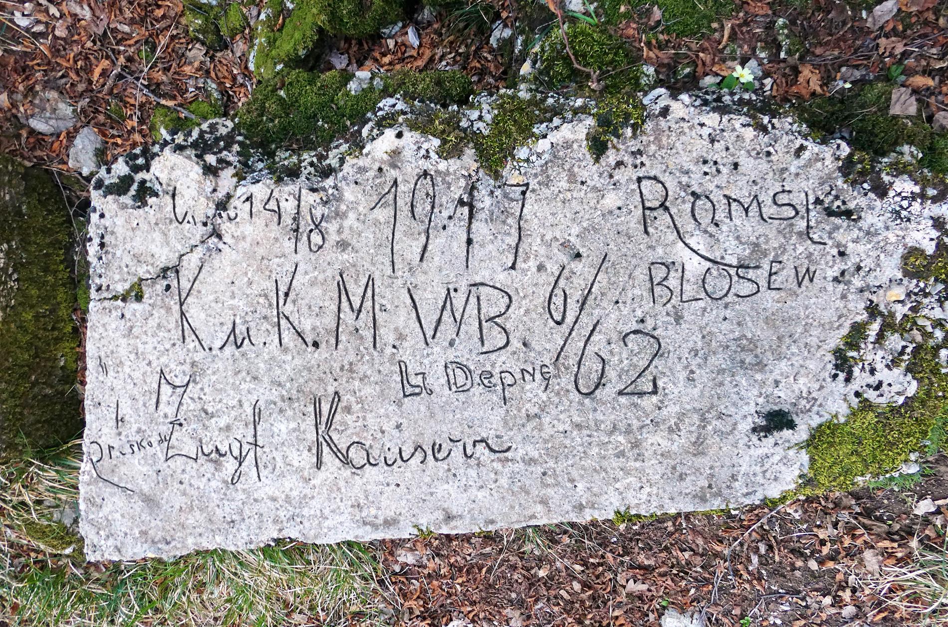Iscrizione della 6. Minenwerfer Batterie con nominativi di soldati - Vodice