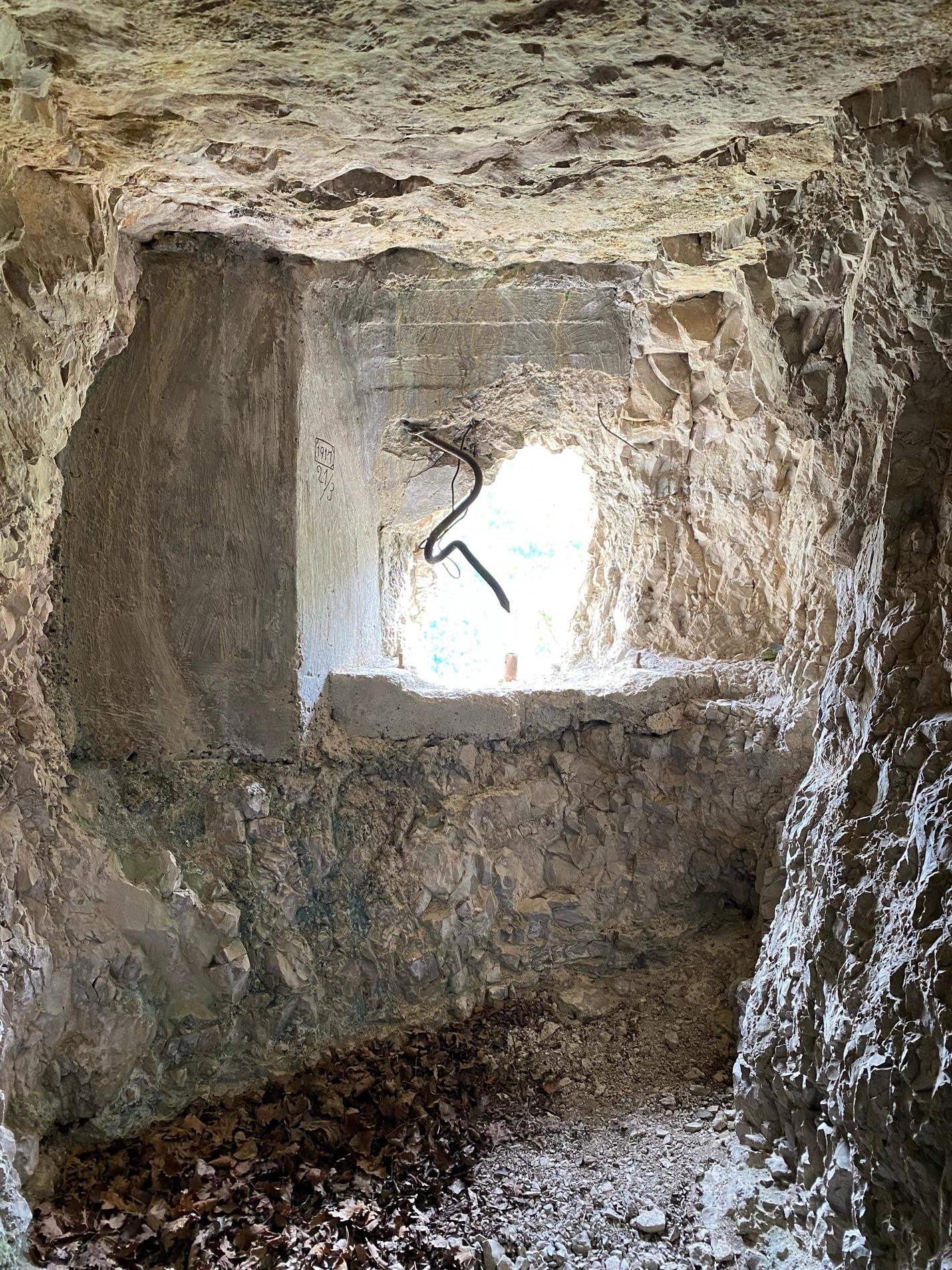 La data del 21 marzo 1917 venne impressa nel cemento da un militare austro-ungarico; la postazione si trova infatti leggermente più a nord del Forte Pozzacchio, o Werk Valmorbia, il quale era tornato in mano austro-ungarica dal maggio 1916 durante le operazioni militari della c.d. Strafexpedition e sul quale, al successivo arretramento tattico nelle posizioni della Winterstellung, passò poi la definitiva prima linea. Dalla feritoia si può tenere sotto tiro una buona porzione di quella che oggi è la SS46 della Vallarsa, posizione sicuramente importante in caso di sfondamento.