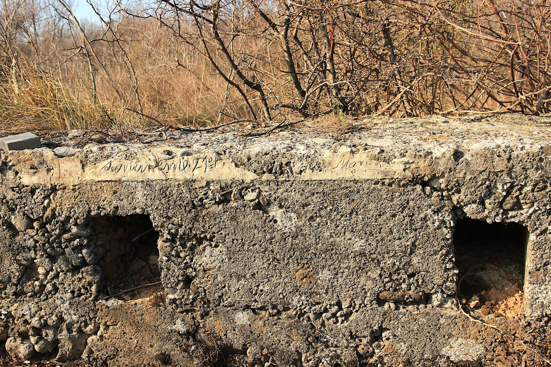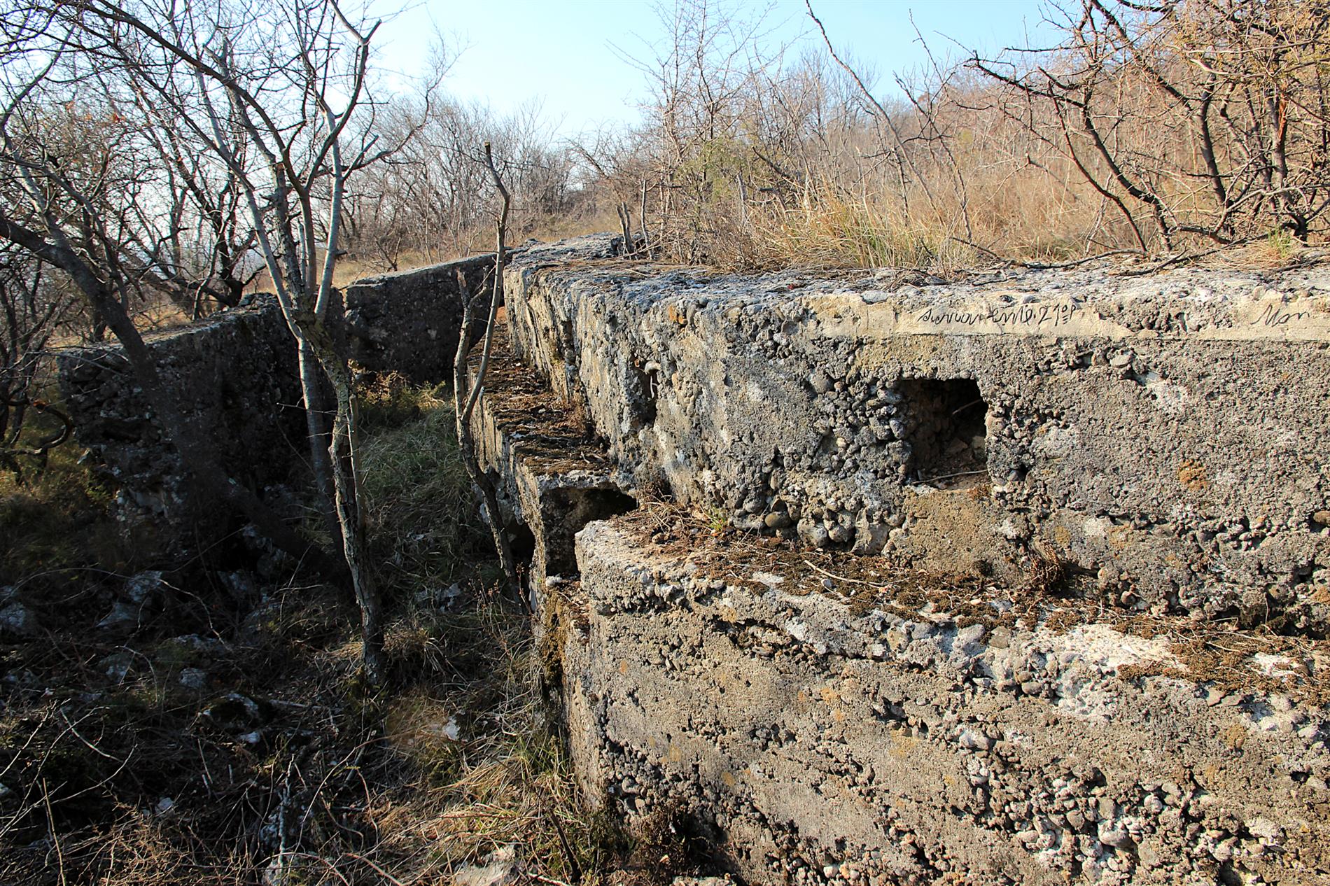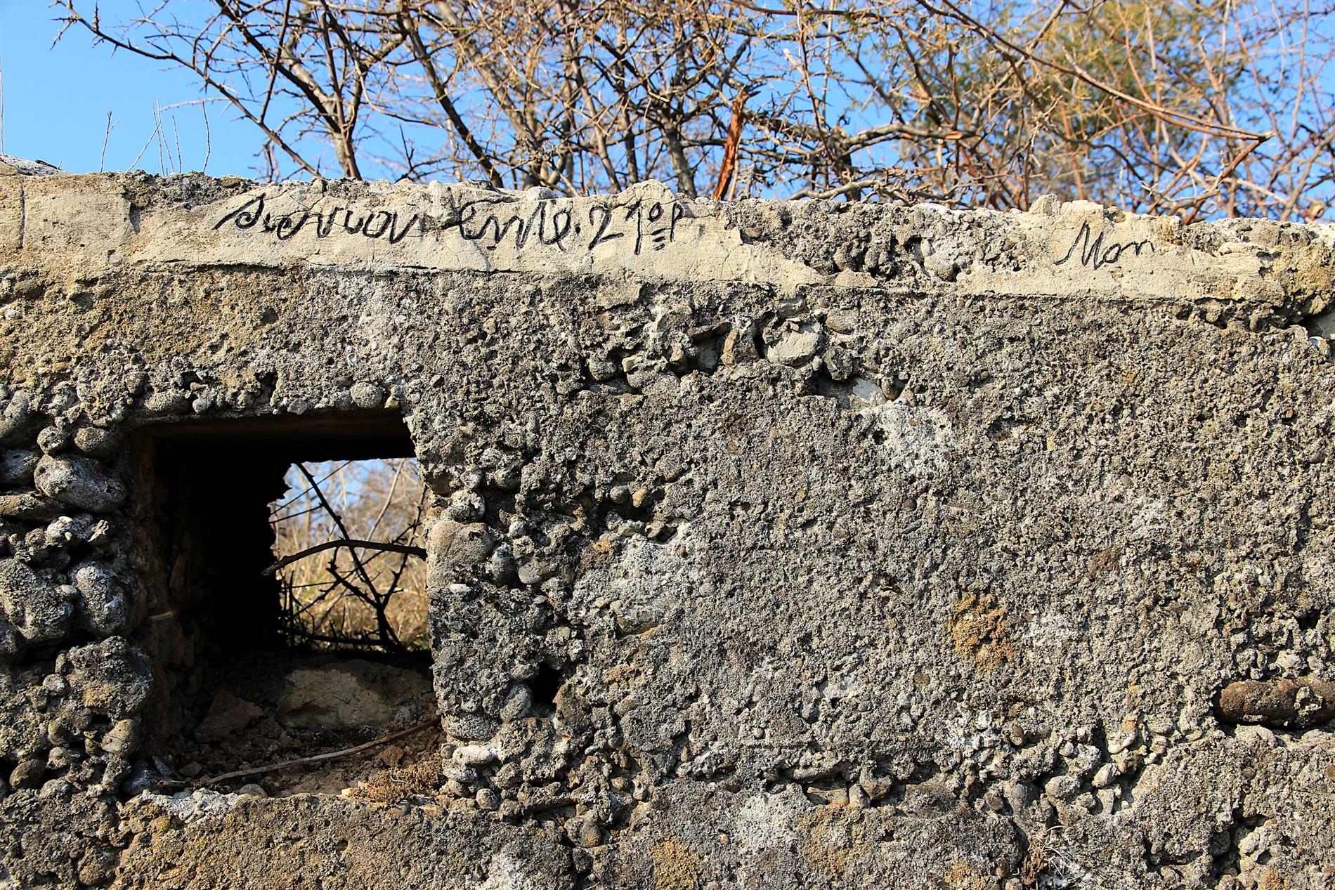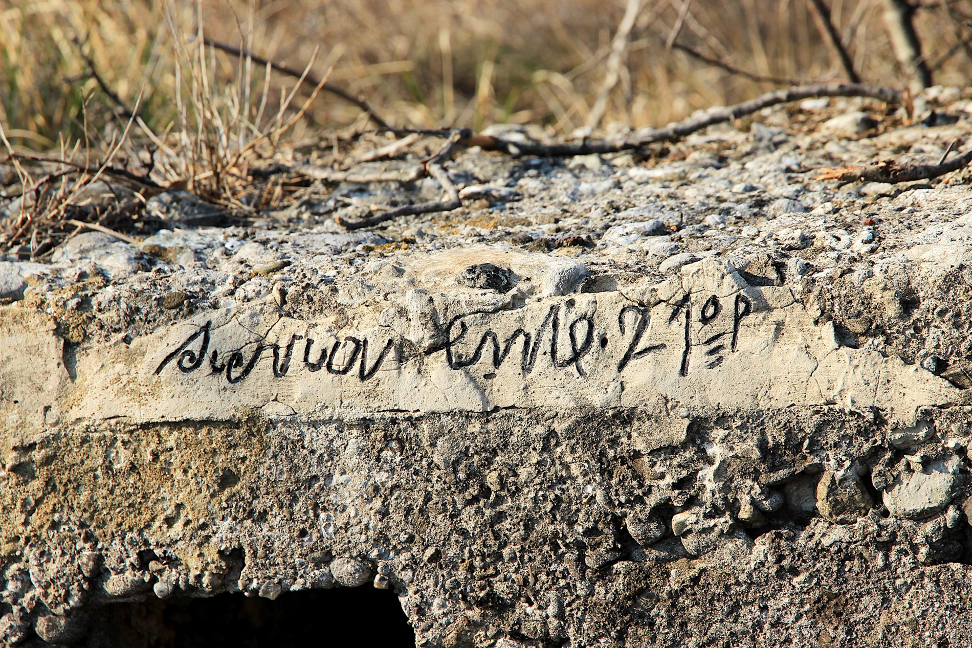 Iscrizione di dubbio significato, verosimilmente attribuibile al 21° Reggimento Fanteria della Brigata Cremona, incisa lungo la trincea rafforzata in cemento che, fra l'estate del 1915 e l'agosto 1916, costituiva l'asse fortificatorio principale del sistema difensivo italiano di prima linea fra il Monte Sei Busi e le Alture di Vermegliano.