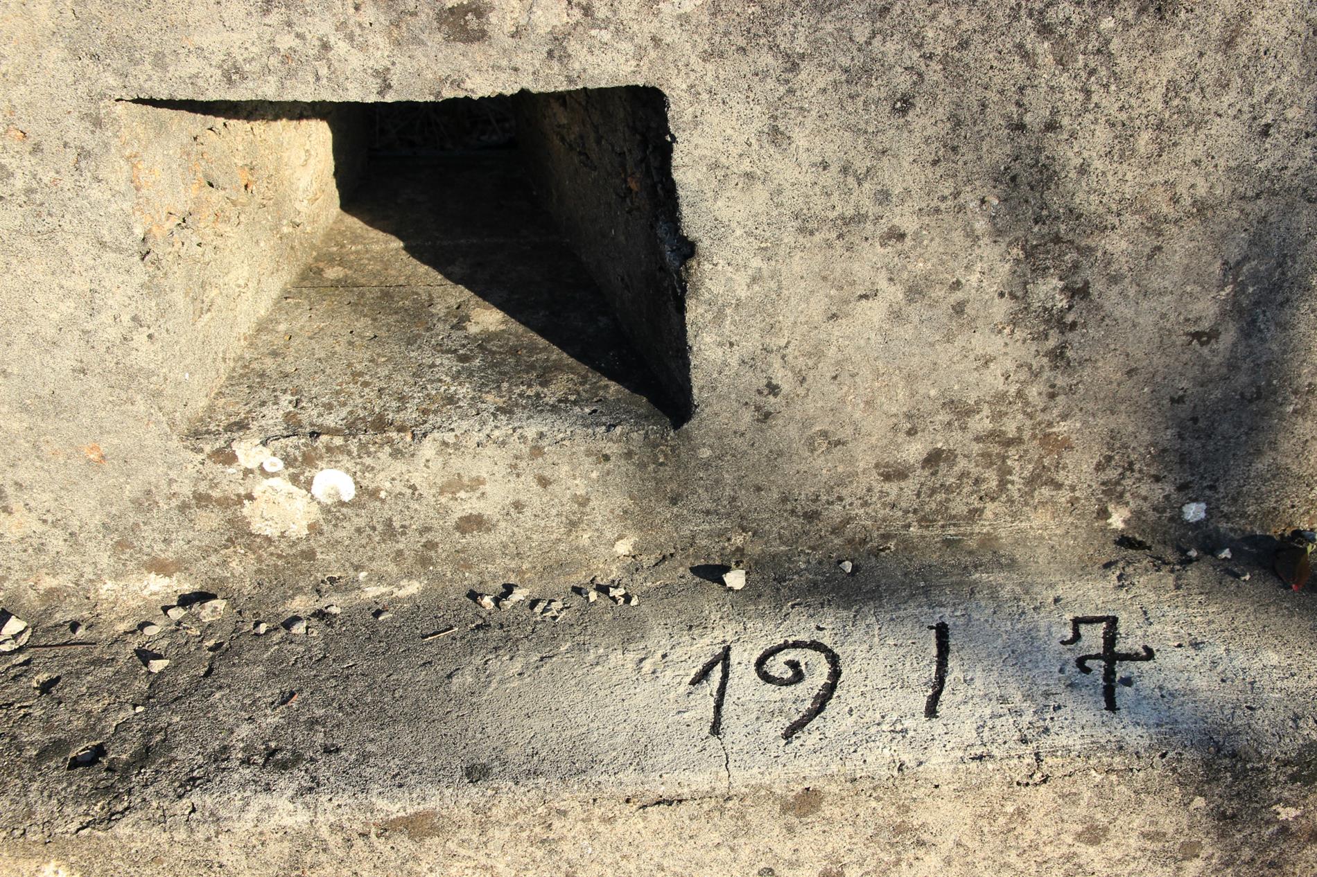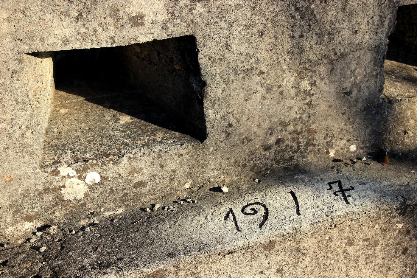 L'iscrizione testimonia l'epoca in cui buona parte dei trinceramenti costruiti dagli opposti eserciti sul Monte Sei Busi fra il 1915 e il 1916 (quali elementi delle rispettive prime linee o immediatamente adiacenti ad esse) venne riorganizzata dall'esercito italiano in contesto arretrato, onde costituire la "Linea di San Martino". Nel settembre del 1917, dunque fino alla ritirata di Caporetto, la Linea di San Martino rappresentava la settima fascia difensiva allestita dalla 3ª Armata sul Carso, mentre il fronte più avanzato correva diversi chilometri di distanza verso oriente, oltre il Vallone.