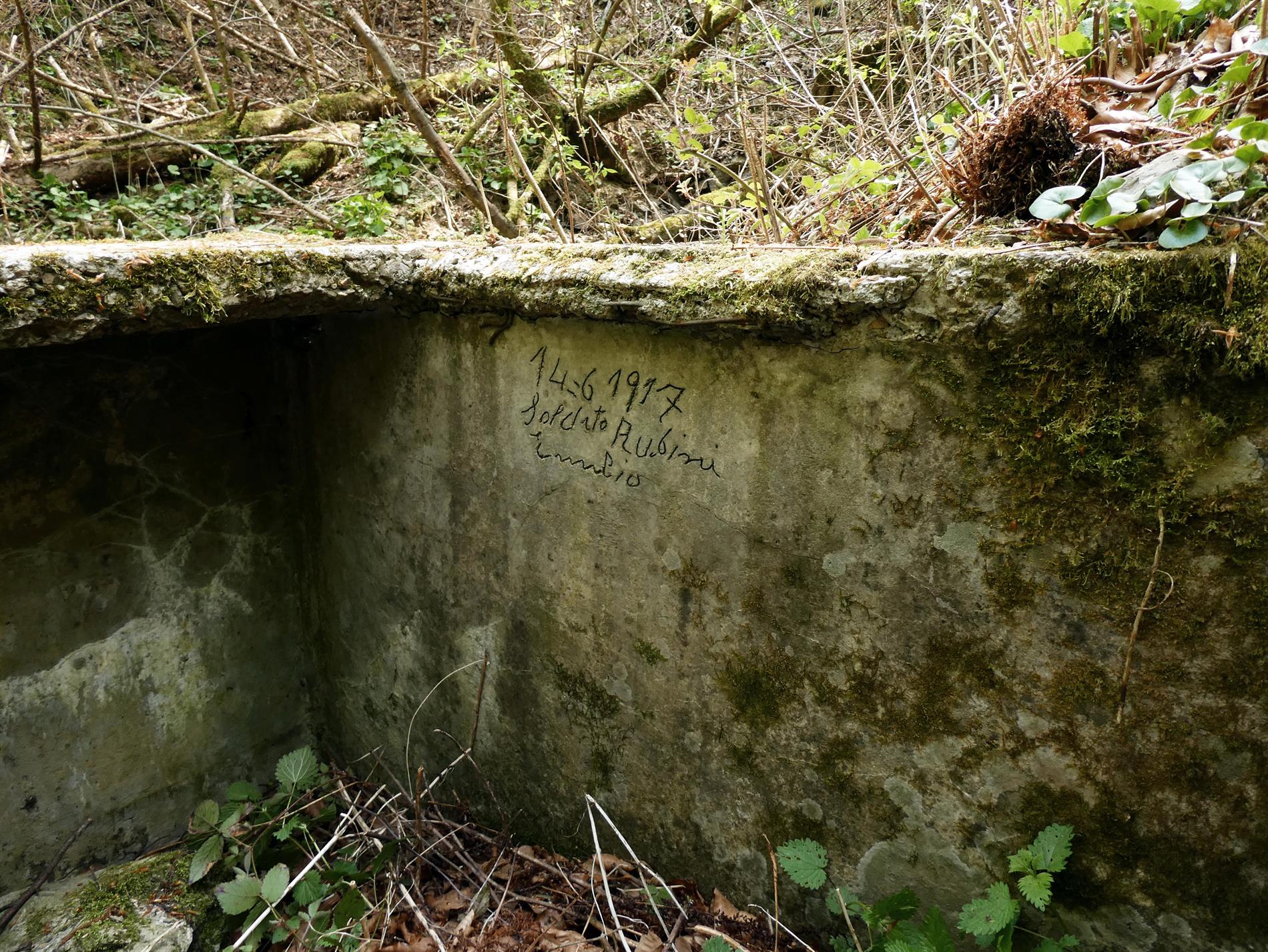 Le interessanti iscrizioni ricordano la 9ª Compagnia del III Battaglione del 126° Reggimento Fanteria della Brigata Spezia, unità che fu pesantemente coinvolta e quasi annientata proprio sullo Ježa dall'attacco germanico del 24 ottobre 1917 (Battaglia di Caporetto). Furono gli uomini di questo Reggimento, che presidiarono la zona dello Ježa e altre vicine posizioni di quella catena montuosa dominante la Piana di Tolmino, dal 18 novembre 1916 al 24 ottobre 1917.