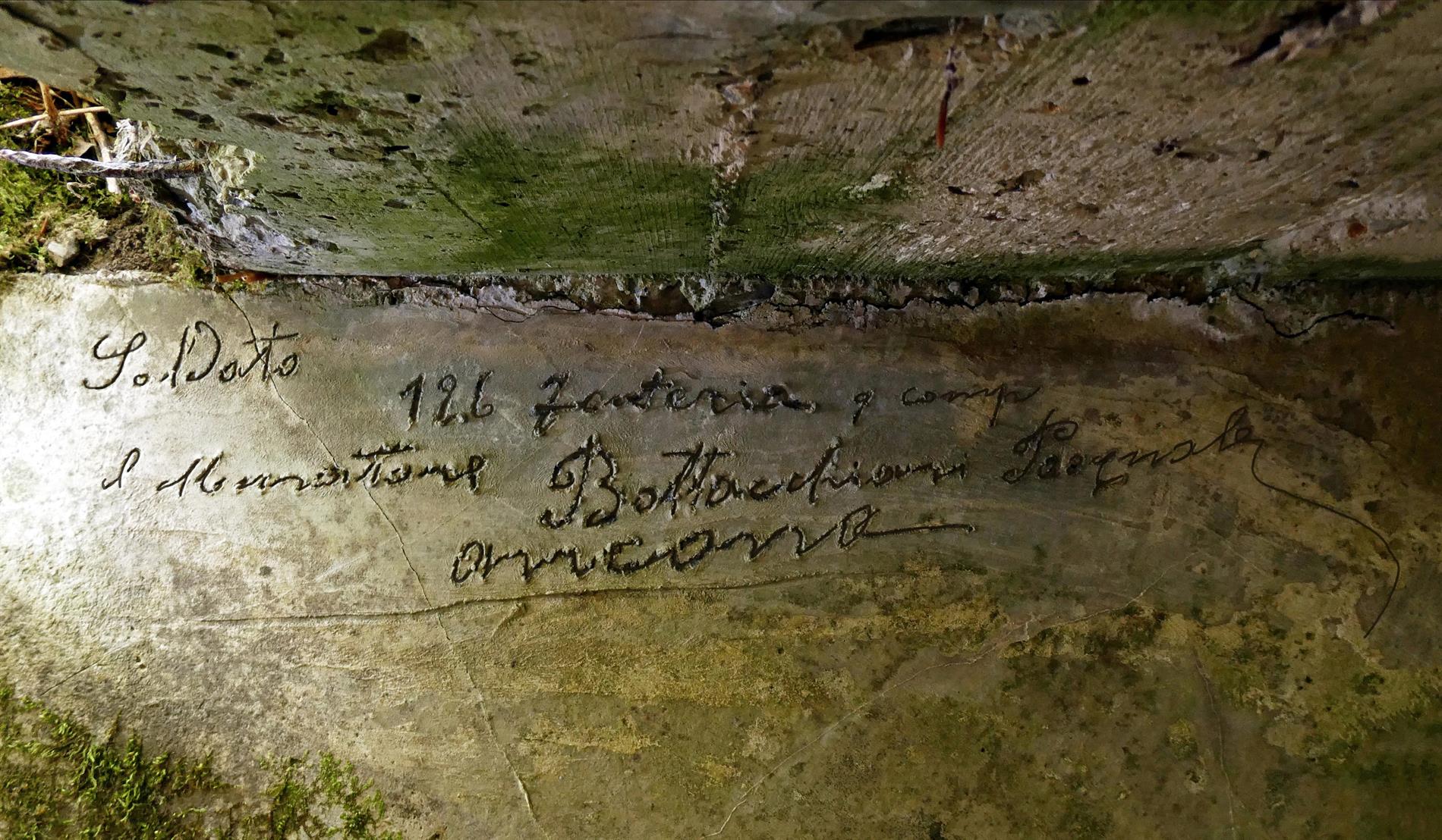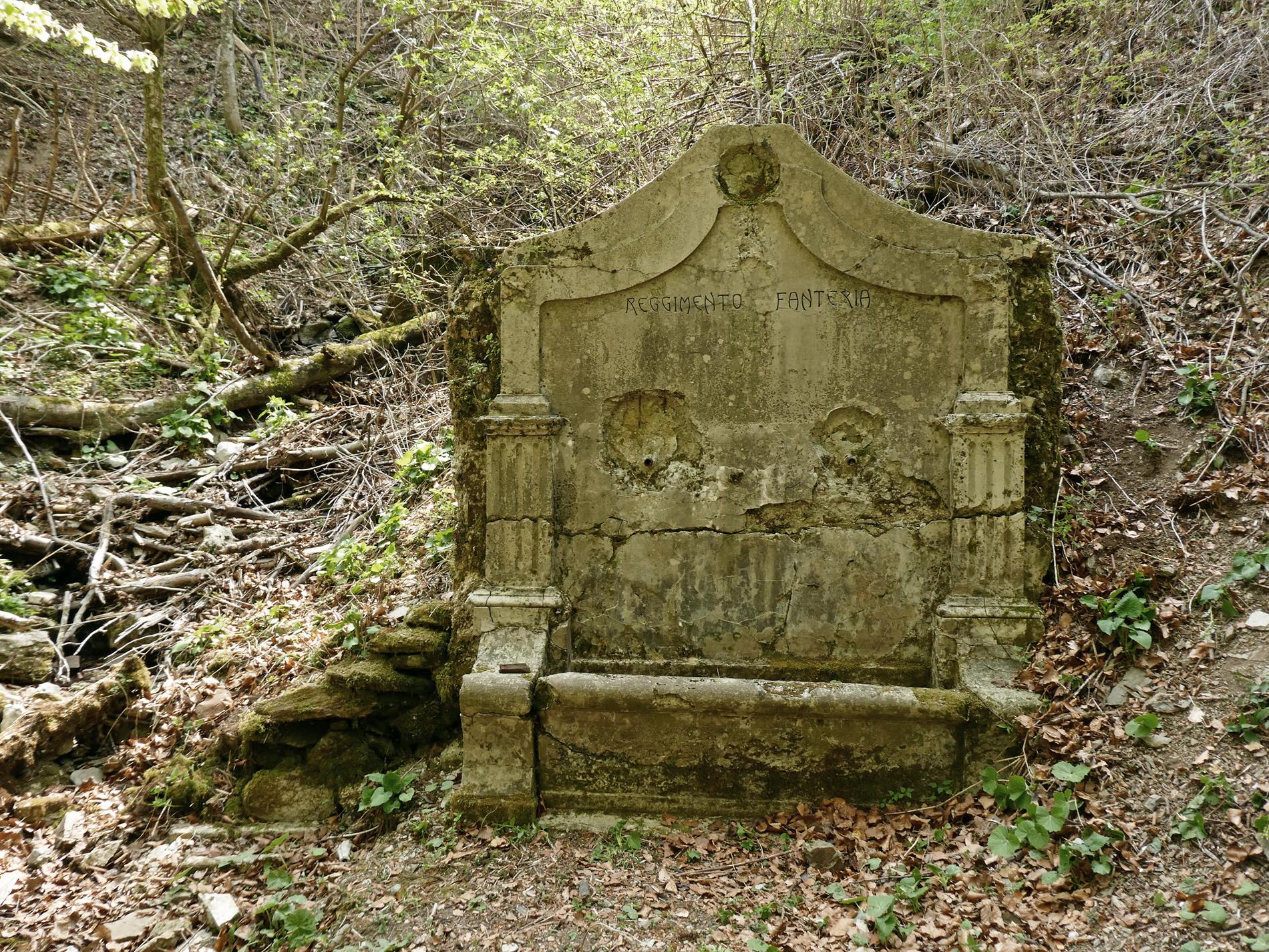 Le epigrafi all'interno della fontana riportano i nominativi di due soldati protagonisti del piccolo "cantiere" di costruzione di questa fontana: il Soldato Emilio Rubini e il Soldato muratore Pasquale Bottacchiari di Ancona.