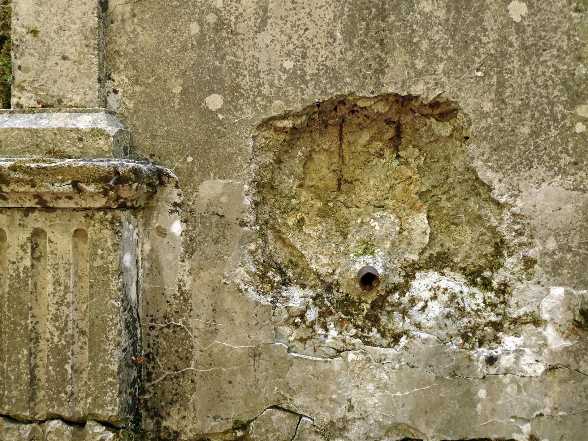 Il fregio in rilievo del reggimento e la targa riportante la data sono molto danneggiati; i due mascheroni, ancora visibili nella immagine allegata nel compendio fotografico, invece sono stati probabilmente asportati.
