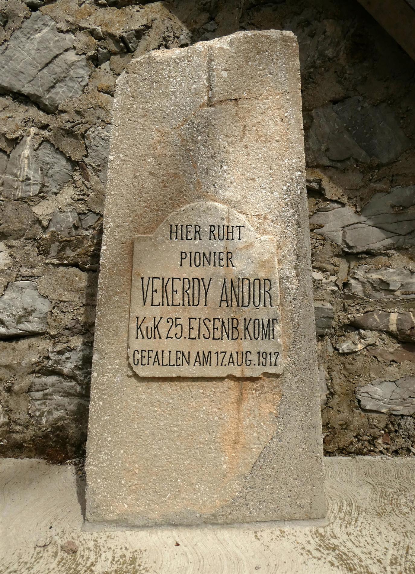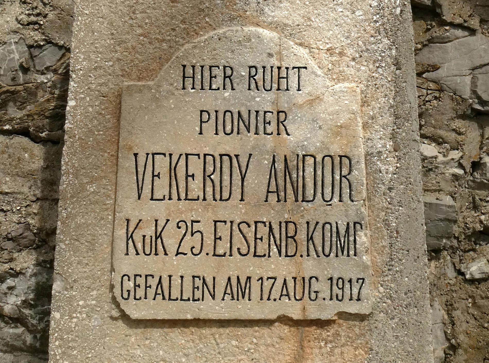 • a. La lapide del Pioniere Vekerdy Andor della K.u.K. 25. Eisenbahn Kompagnie
