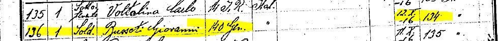 b. Estratto da elenco austriaco 1918. Soldato BUSSOTTI