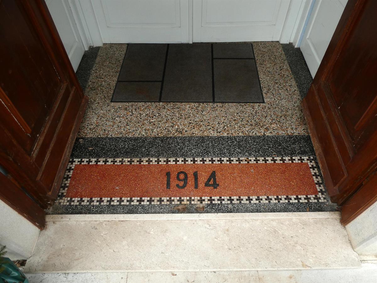 a. Il mosaico datato 1914 sul sagrato della chiesa di San Paolino Vescovo