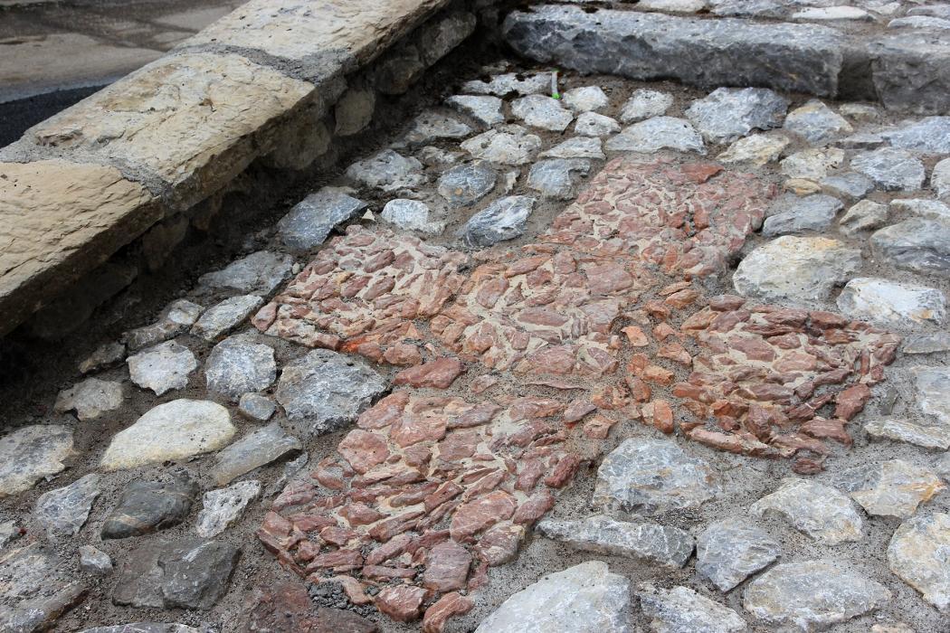 Il simbolo della Croce Rossa è stato ricostruito in anni recenti (2010-2011), assieme all'intero selciato su cui si trova, con le medesime dimensioni e caratteristiche dell'originale.