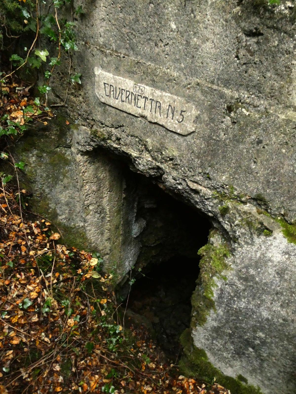 b. La targa "226°, Cavernetta N°5", all'interno della trincea