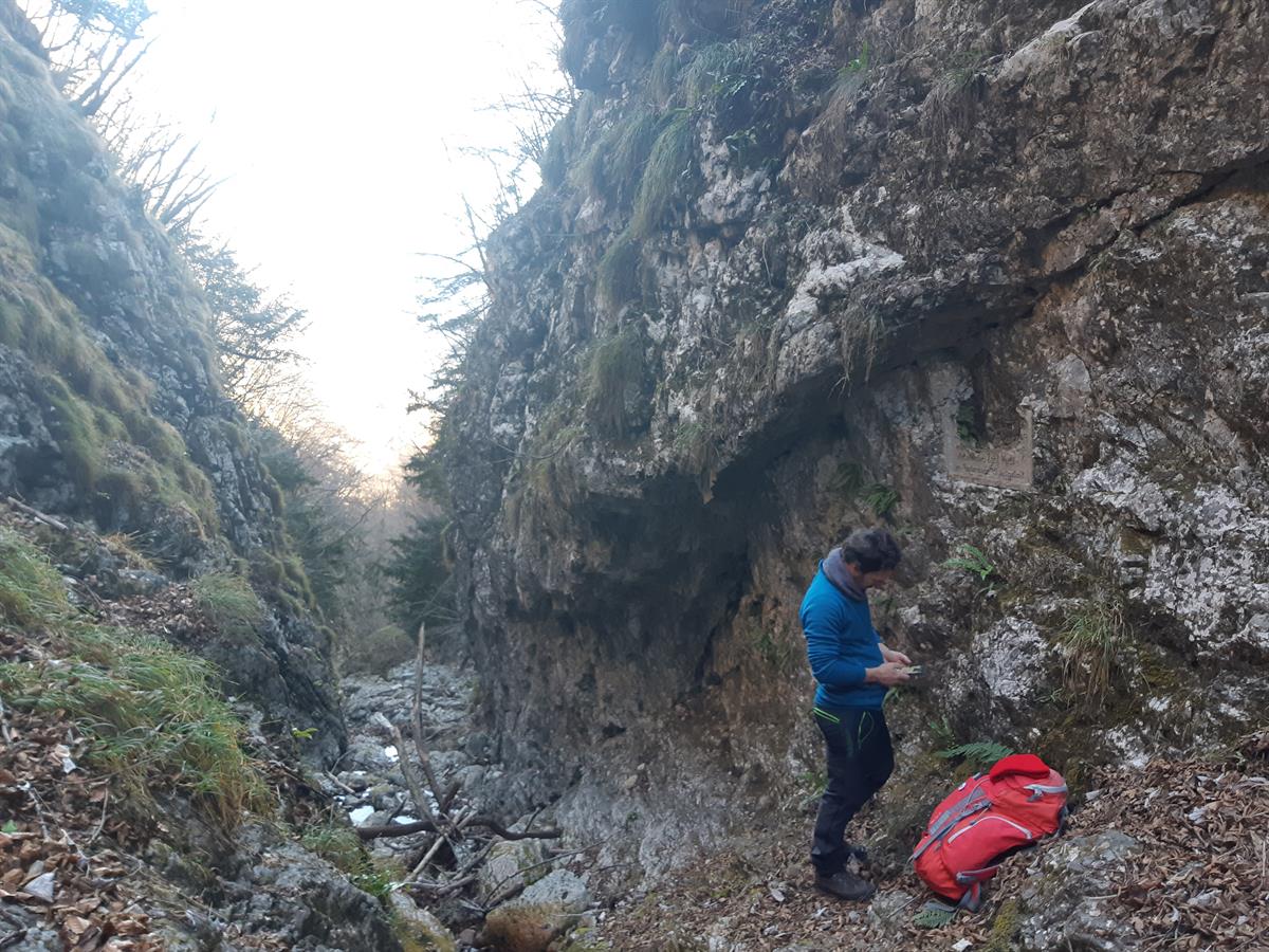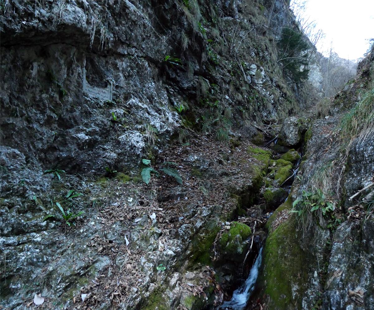 c. La targa nel punto più stretto della Val del Laghetto
