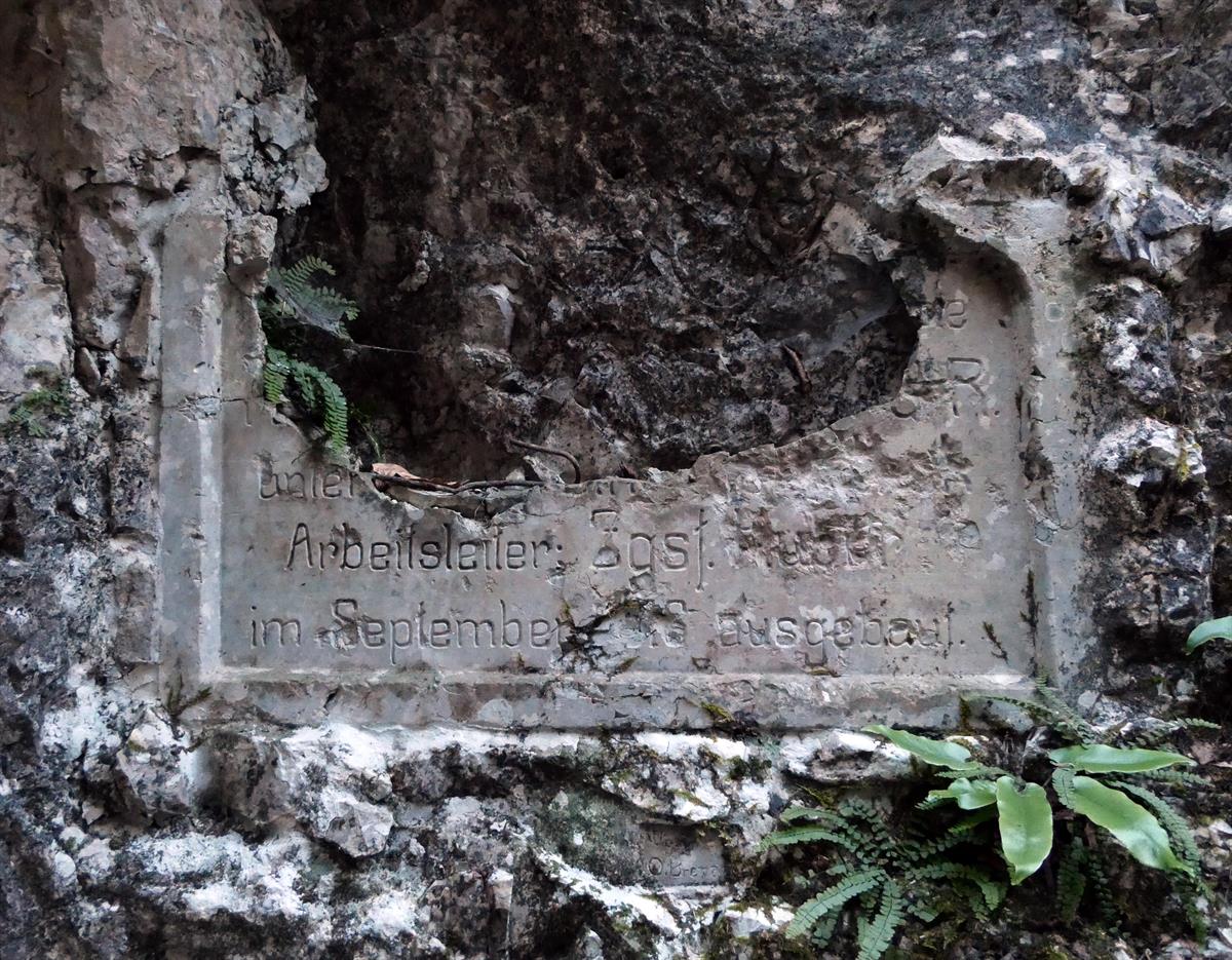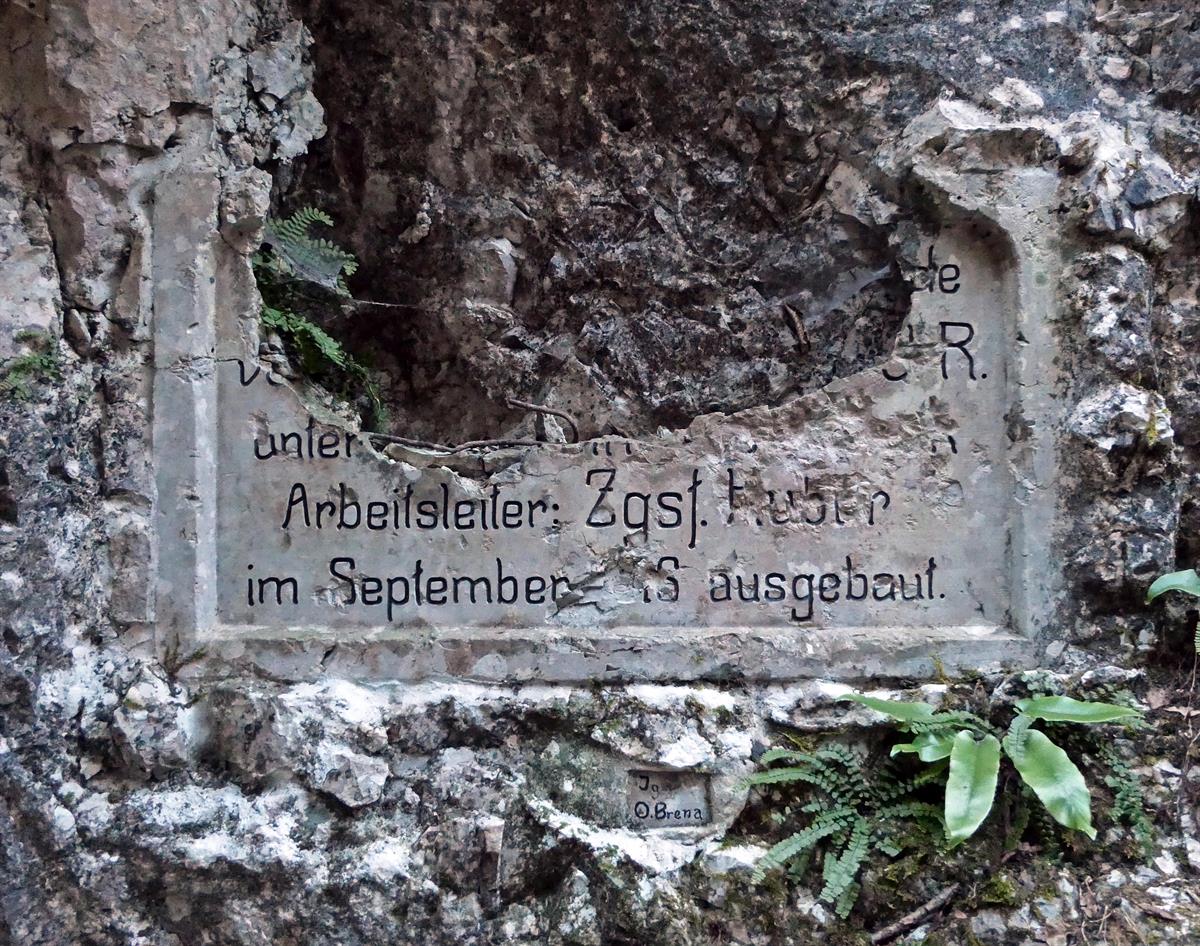 Targa austro-ungarica relativa ai lavori diretti dal Zugsführer Huber - Val del Laghetto