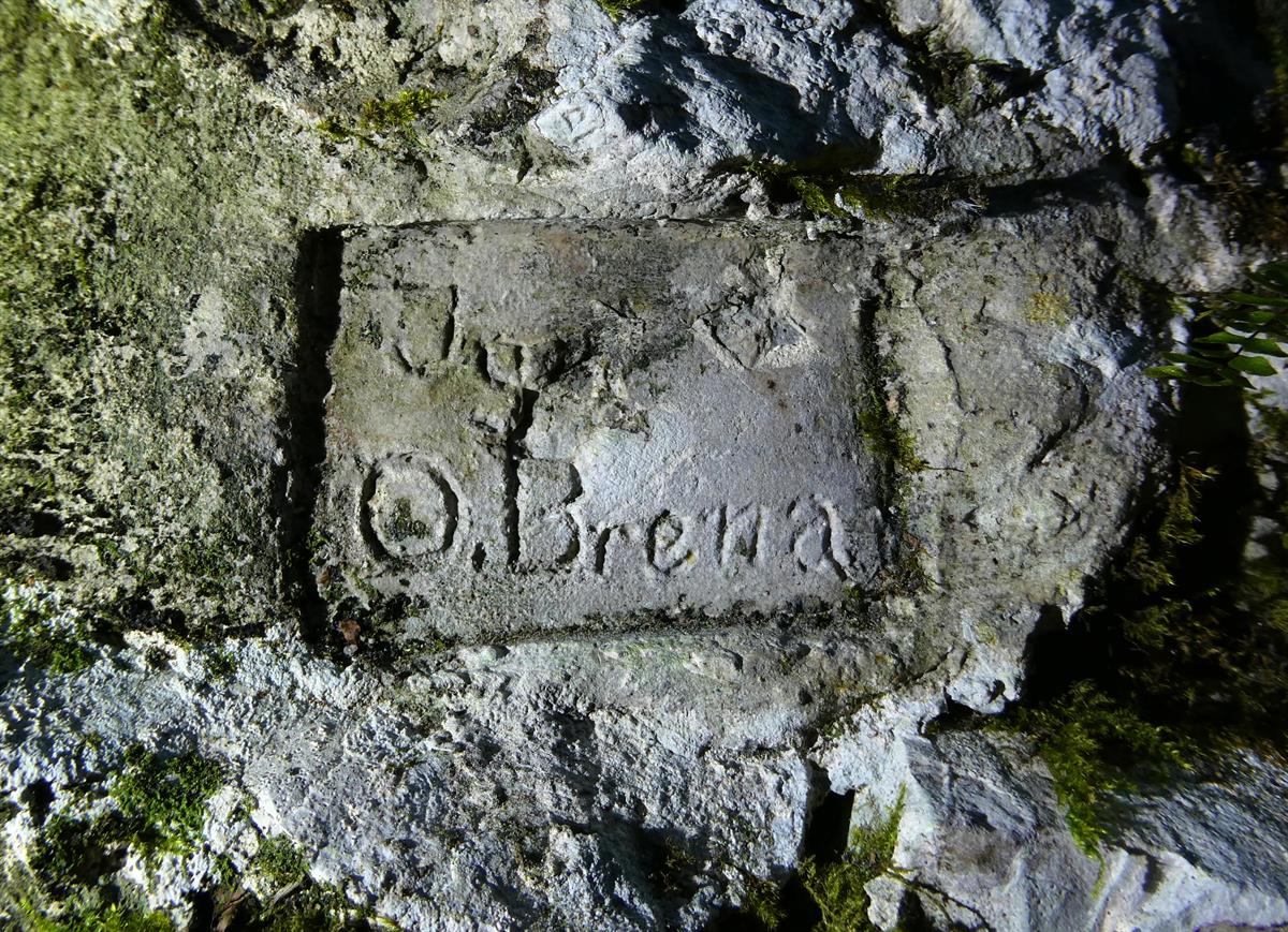 b. Particolare della targhetta riportante il nominativo "O. Brena"