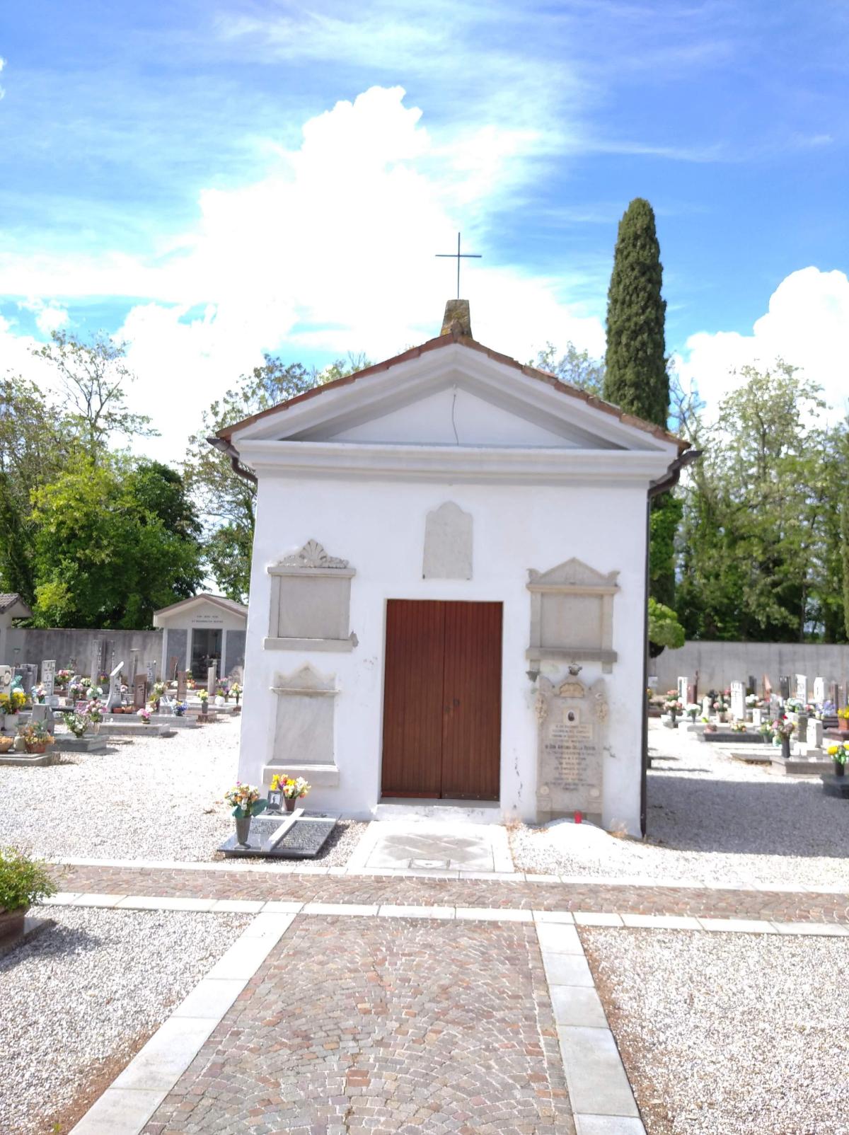 La chiesetta del cimitero civile di Tissano, sul cui muro esterno è affissa la targa.