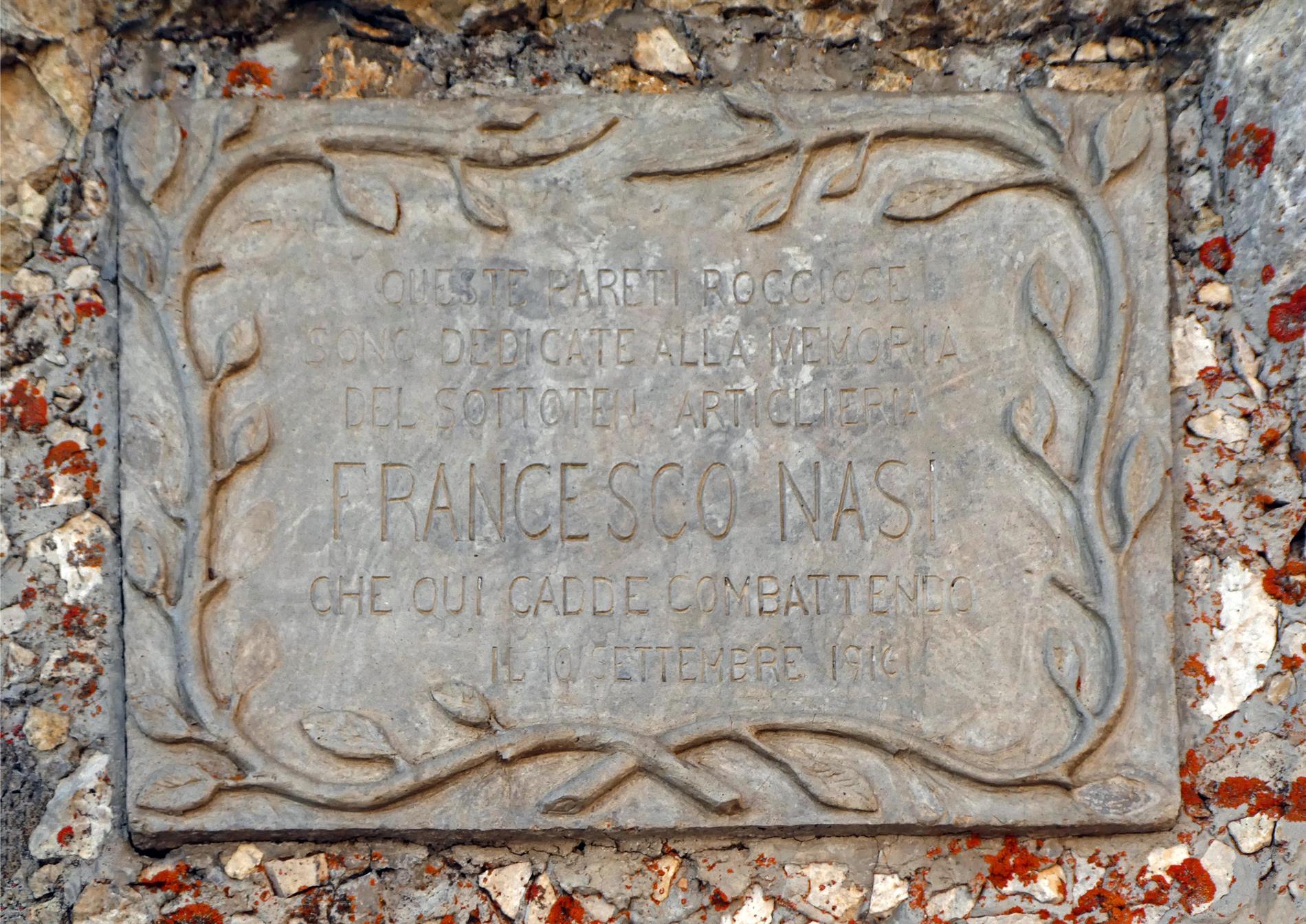 Targa commemorativa del Sottotenente d'Artiglieria Francesco Nasi - Cogolo Alto