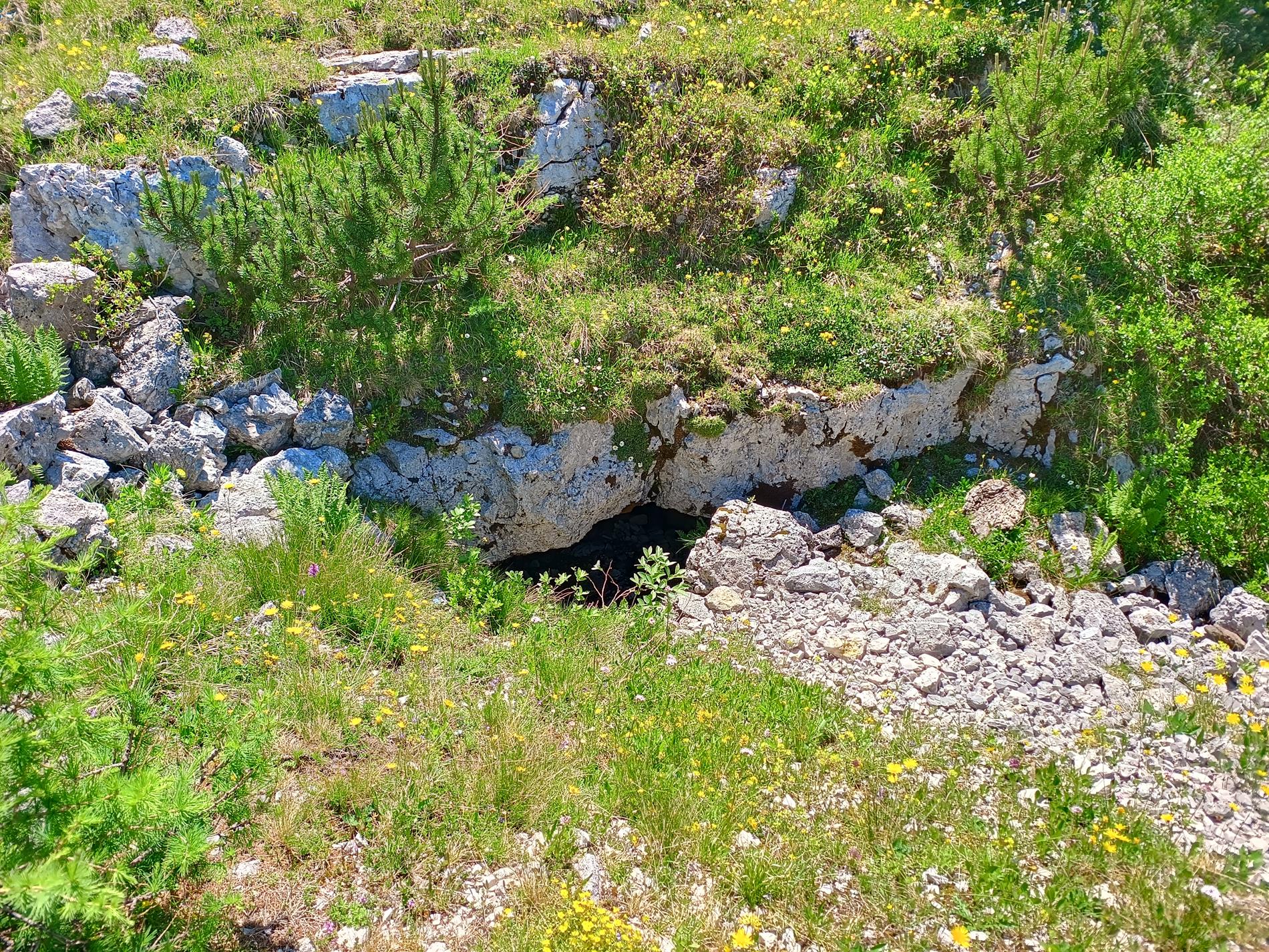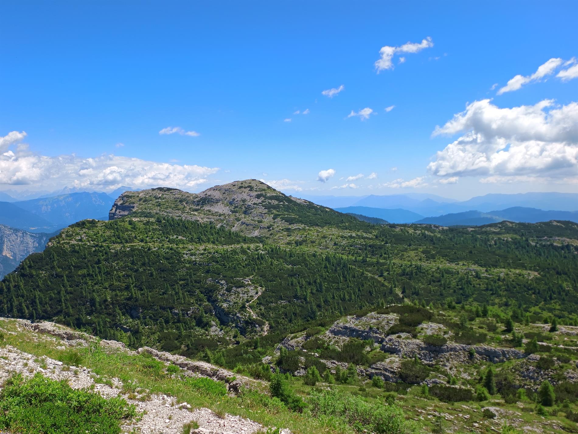 e. La vista dal Monte Ortigara verso Cima della Caldiera e, più vicino, il Monte Campanaro: il Pozzo della Scala si trova fra i due monti
