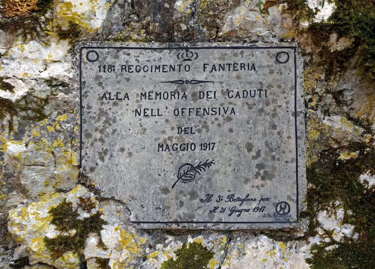 a. La targa del 118° Reggimento Fanteria nella Dolina Steinbruch
