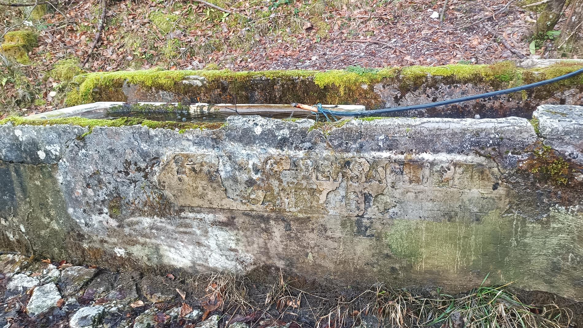 La targa si trova su di una vasca in fondo ad un pianoro prativo adiacente al curvone della strada Kobarid Bovec, poco prima della fabbrica TKK d.o.o.
